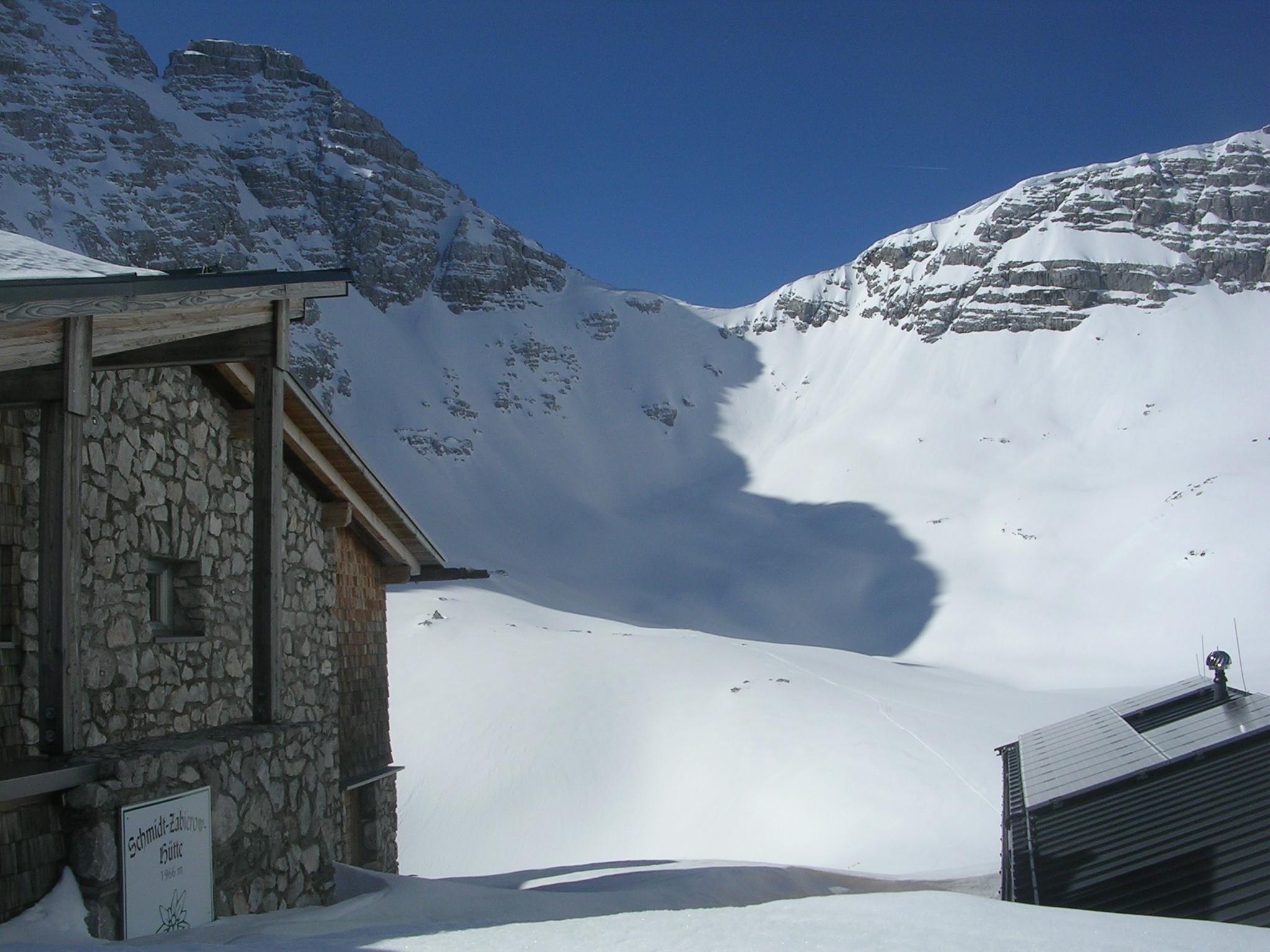 Danach gab es aber nichts mehr zu meckern. Wunderschöner Aufstieg zur Hütte, dann weiter durch die Wehrgrube auf's Joch durch gesetzten Pulver - mit angemessener Vorsicht oberhalb der Felsen (Steilheit geschätzt ca. 50°).