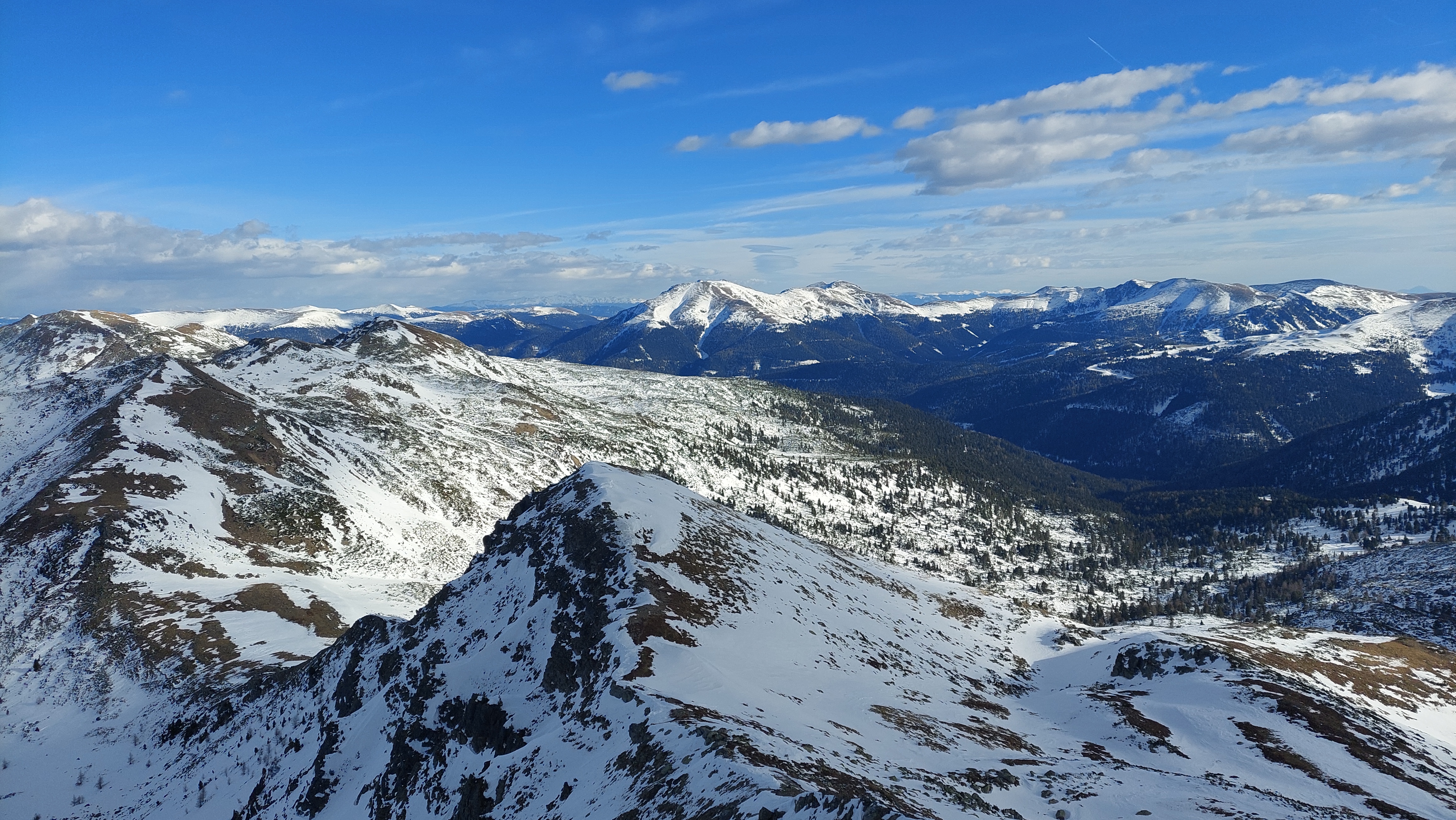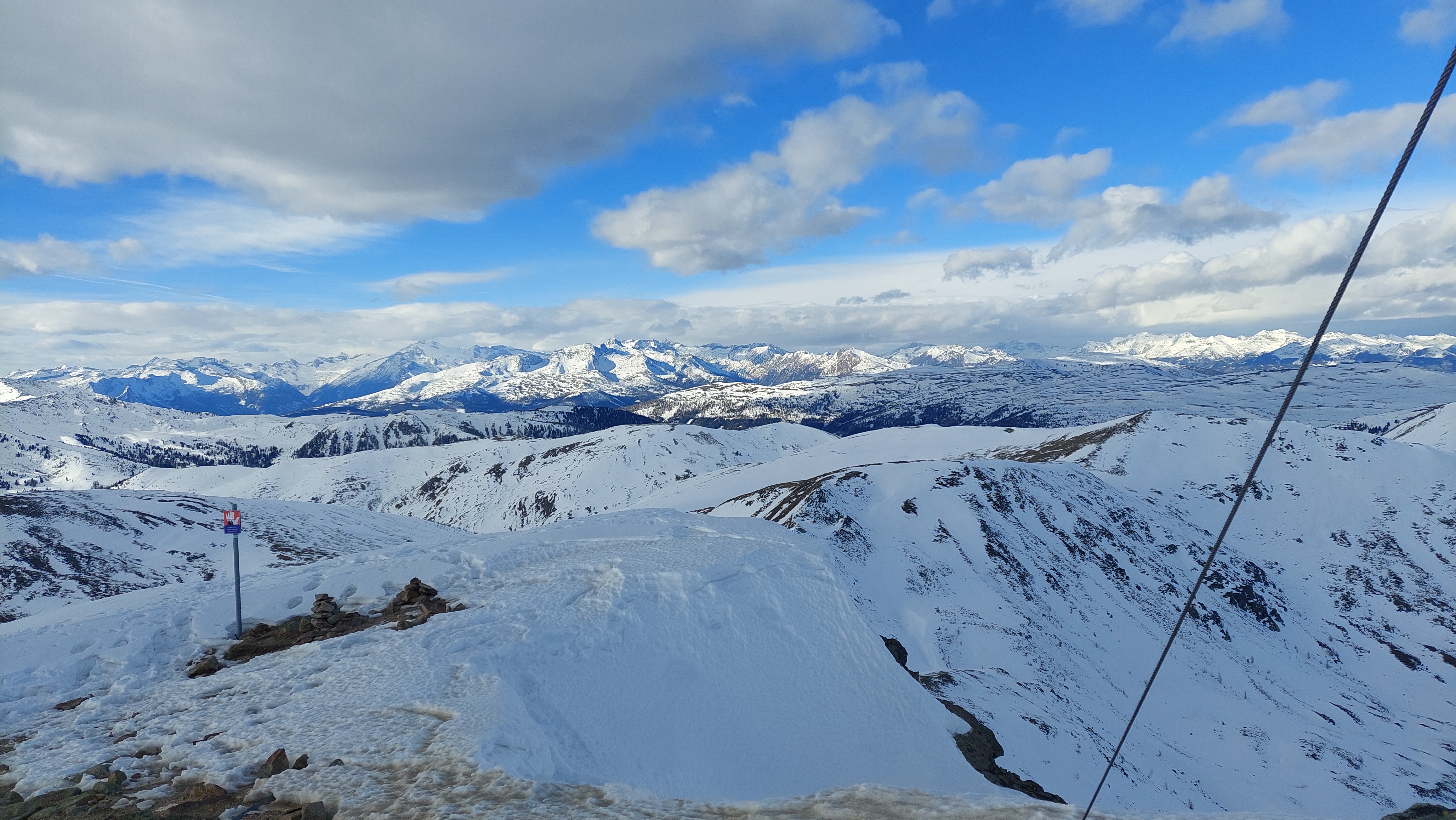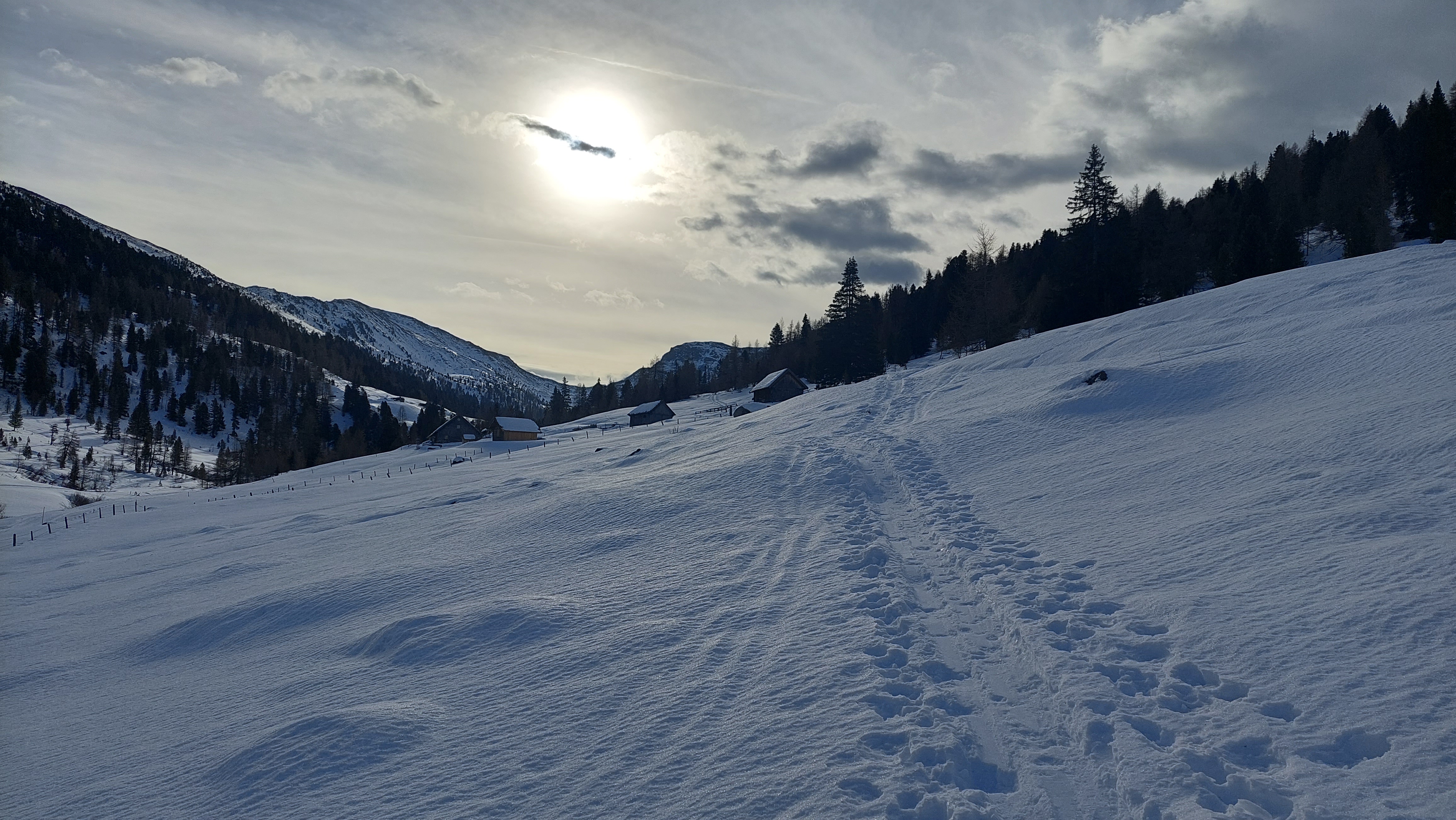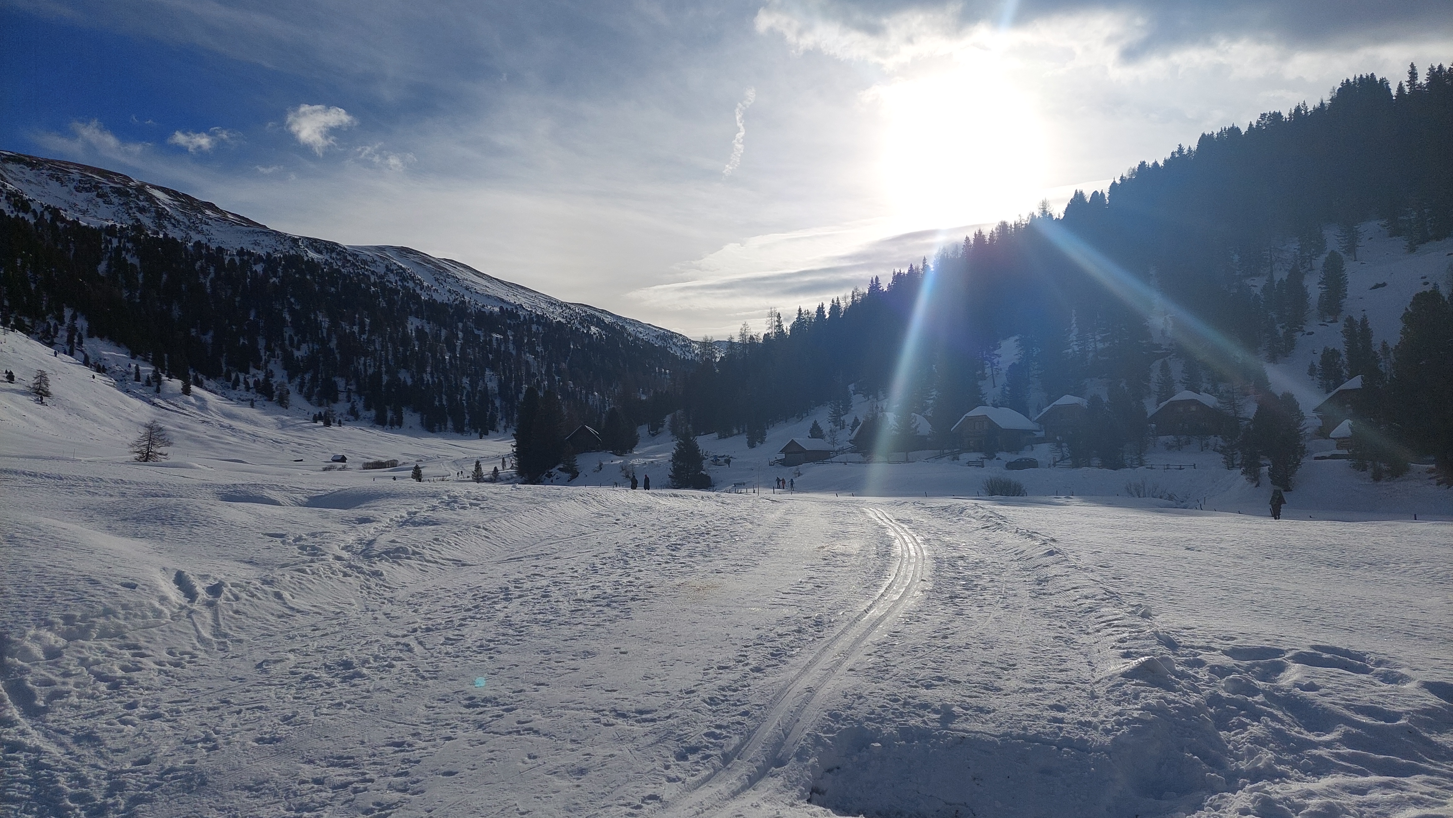 Für den südlichsten Punkt von Salzburg muss man zugegebenermaßen eine längere Wegstrecke in Kauf nehmen. Nach dem Bundschuh bzw. Schönfeld öffnet sich dann aber die ruhig gelegene Rosaninalm mit der Dr. Josef Mehrl Hütte als Ausgangspunkt. Für einen Wochenendaufenthalt weit weg von jeglichem Skitrubel eigentlich ideal inkl. (sehr) gemütlicher Skitouren, ca. 10 km Langlaufstrecke und 1 Schlepplift. Schneelage dürftig und knusprig. Königstuhl aber noch machbar. Ostseitig abgeblasen bzw. aper. Es bräuchte wie überall wieder Schnee!
