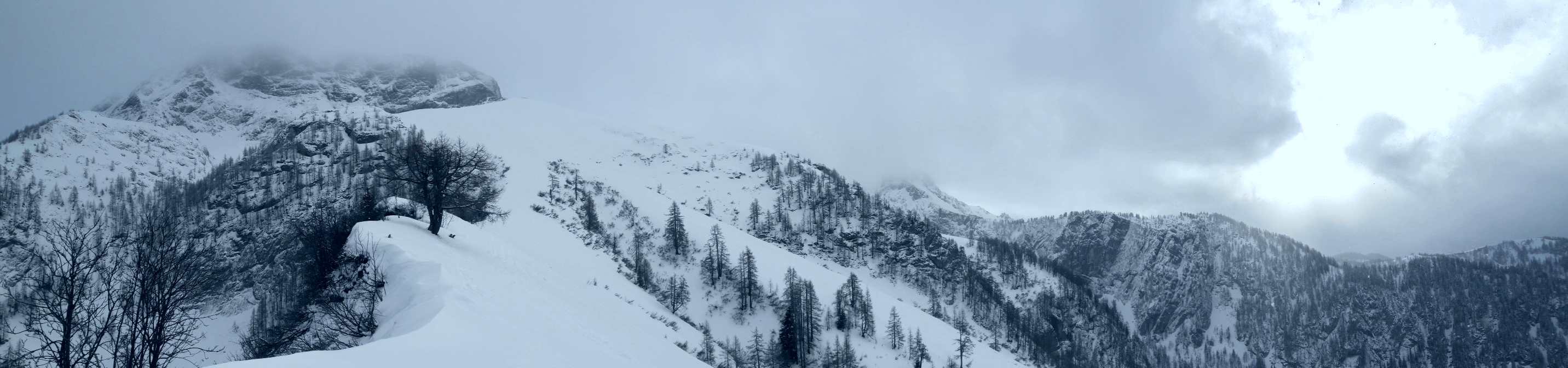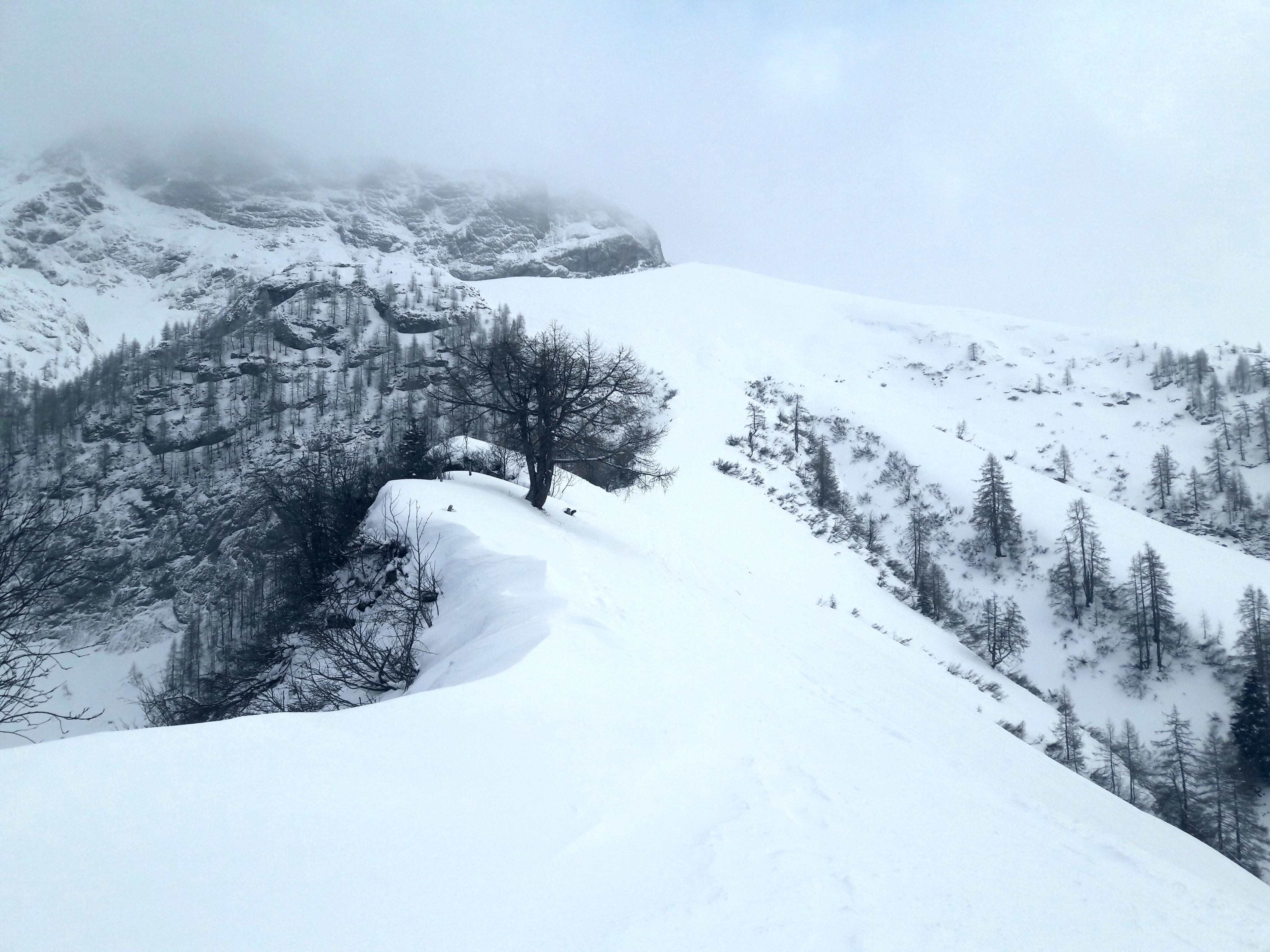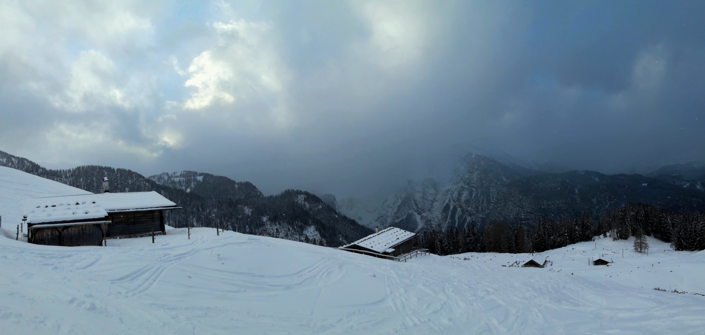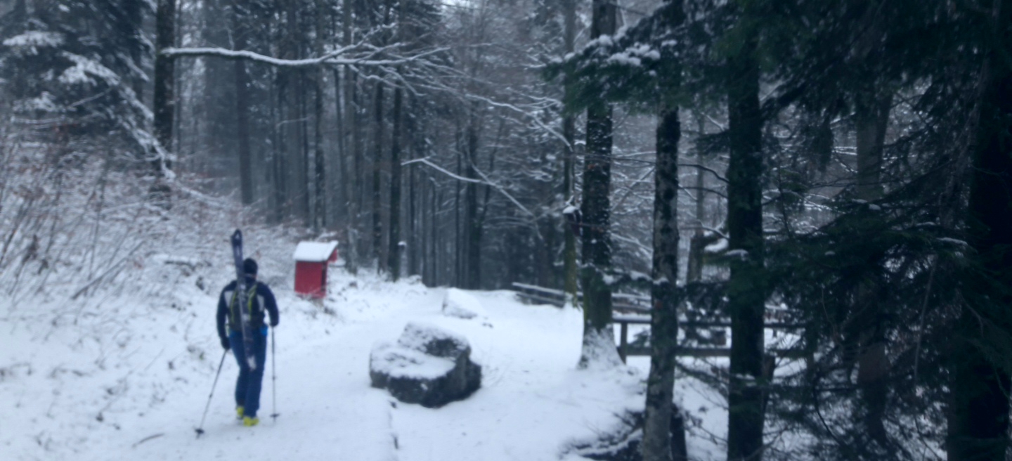So richtig wild-schön war es heute. Ein Ankämpfen gegen schneidigen Wind und Schneegestöber, als ob die Percht mit ihrem wuidn Gjoad nochmal zum Abschied der Rauhnächte eine Sondereinlage tanzt. Der Hochbahnweg von Königssee war nur fein angezuckert, da heisst es Ski tragen oder Steinski einsetzen. Whiteout auf den Rossfeldern. Später hat es doch noch lichte Momente gegeben und der Schneefall hörte auf. Der obere Hang ziemlich hart und vom Wind misshandelt, der untere Hang bis hinunter ins Priesbergmoos liess dann lustvolle Pulverschwünge zu. Manchmal wurde man aber auch ganz unbarmherzig von der Eisplatte unter den 20cm Pulver aus dem Flow gerissen. Von der Brennhütte nochmal Aufstieg zum Jennersattel und Abfahrt über die Piste bis hinuter nach Königssee.