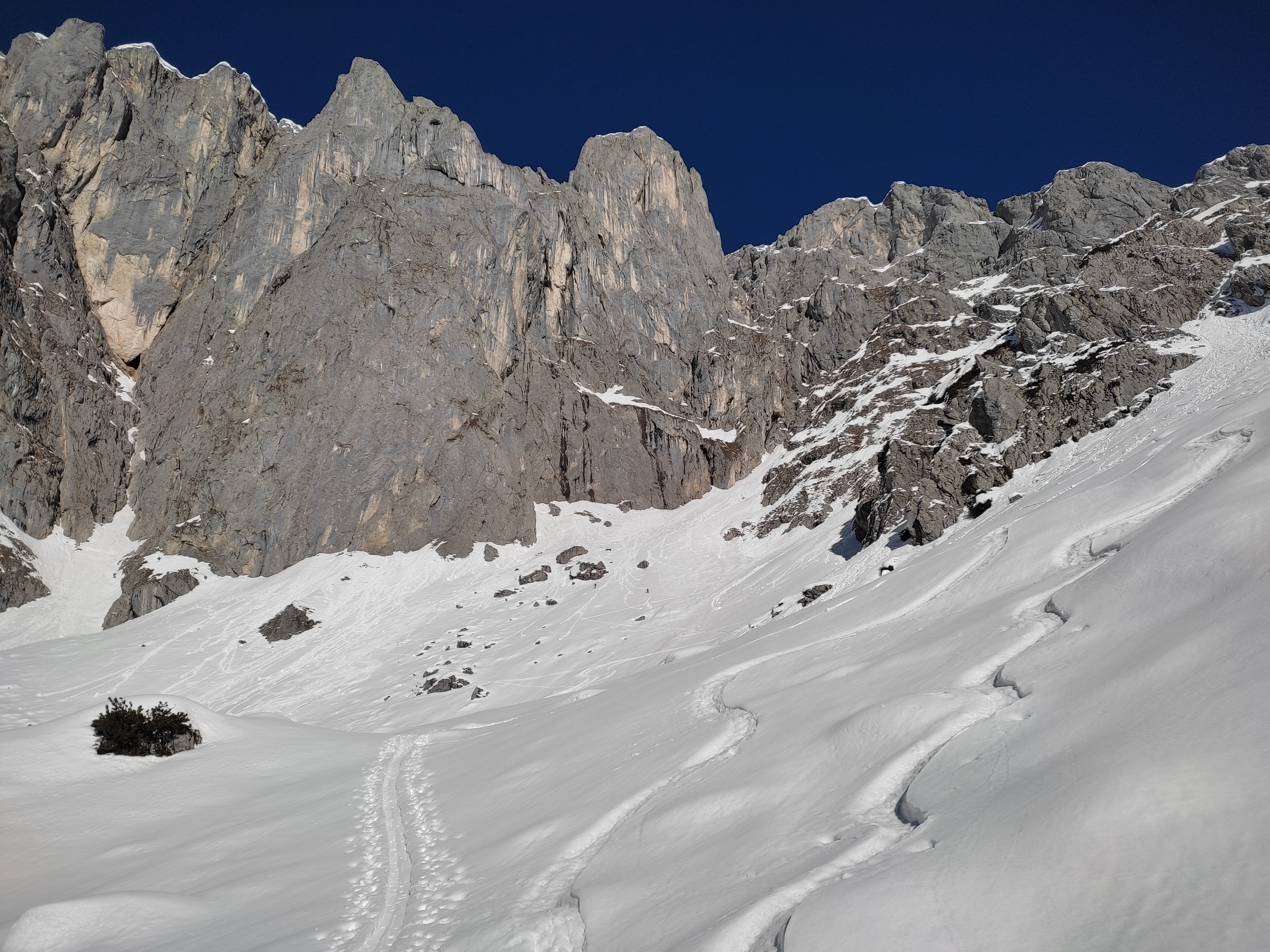 Erstmals vielen herzlichen Dank an alle Aktiven im Tourenportal für die super Tourenbeschreibungen! Nun wollen wir erstmals unsere Erfahrungen mit euch teilen 🙂Heute waren Traumbedingungen in Lungötz. Start um 10:30 beim Hofhaus am Ende der Straße ins Lammertal. Super Raschelpulver erschwert die Tourenwahl... schattige Brandelbergköpfe oder sonniges Gamsmutterkar. Wir entscheiden uns für Sonne 🌞 und finden am Gamsmutterkar stark sonnenbehandelten gesetzten Pulver vor. War super zu gehen. Bei der Abfahrt etwas tief aber gut zu fahre. Bei anhaltendem Schönwetter wär's in den nächsten Tagen perfekter Firn. Schnee ist ausreichend vorhanden. Auch Brandelbergköpfe sind in den nächsten Tagen sicher sehr lohnend. Dort im Schatten ist alles noch pulvrig. Super Einkehrtipp: Salettl, direkt bei der Ausfahrt auf die Lammertalstr. 😋