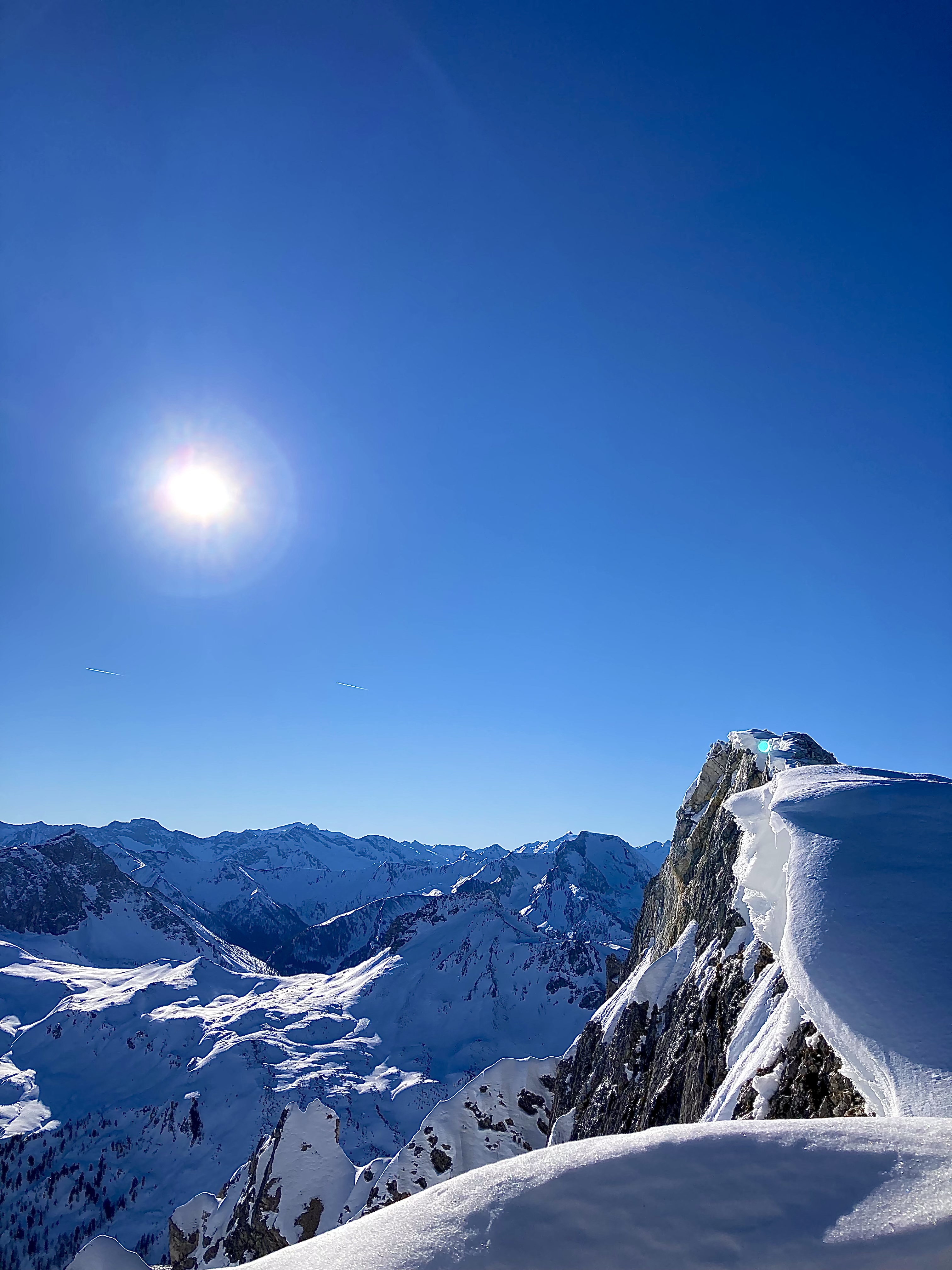 kleiner Pleißlingkeil, in den Radstädter Tauern🤩 dieser Klassiker war unser heutiges Touren Ziel… Start am Gnadenalm Parkplatz, um 09:00 Uhr war der schon fast voll, viele Langläufer aber auch Tourengeher Kollegen… Aufstieg zur Südwiener Hütte, Schnee Qualität vom feinsten… viele biegen hier schon rechts Richtung Spirzinger rauf… Weiter geht’s zu unserem Ziel… angenehm warm, sogar eine halbe Stunde Aufstieg im T-Shirt ging sich aus😃 am Hochplateau und der Gipfel in Sicht wurde es windiger… Am Gipfel angekommen kauern einige Tourengeher hinter dem Gipfel im Lee und Fellen hastig ab… die meisten die wir heute da oben gesehen haben, hatten nur dünne Daunenjacken an, wir waren dann froh über die dicken Expeditions Daunen die wir mit hatten, mit denen lies es sich am Gipfel die unglaubliche Fernsicht doch gut eine Stunde genießen… der Wind war teilweise extrem… Abfahrtsfreuden anschließend mit perfektem kalten Pulver😀 Eine mehr als lohnende Tour, ein perfekter Tag…