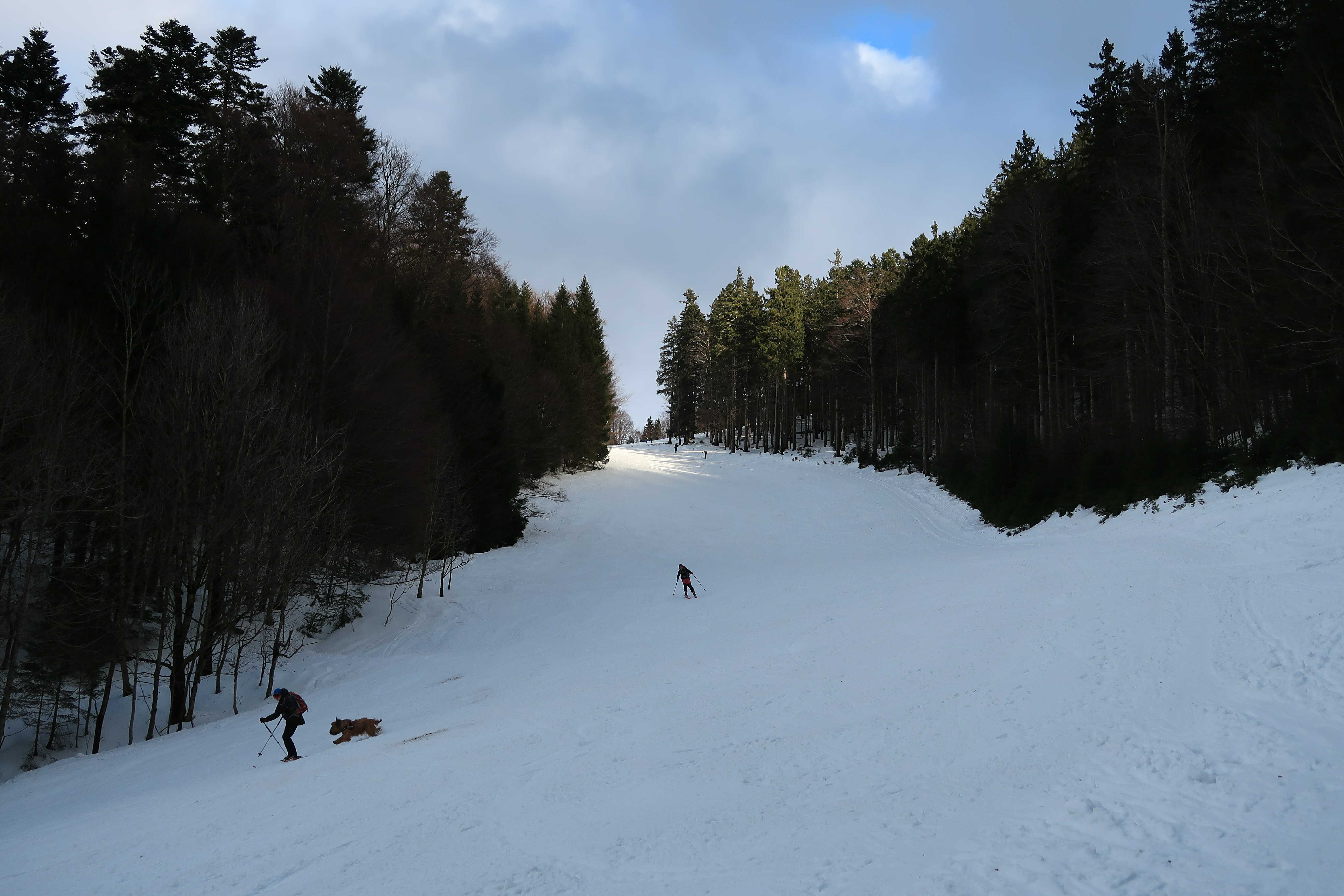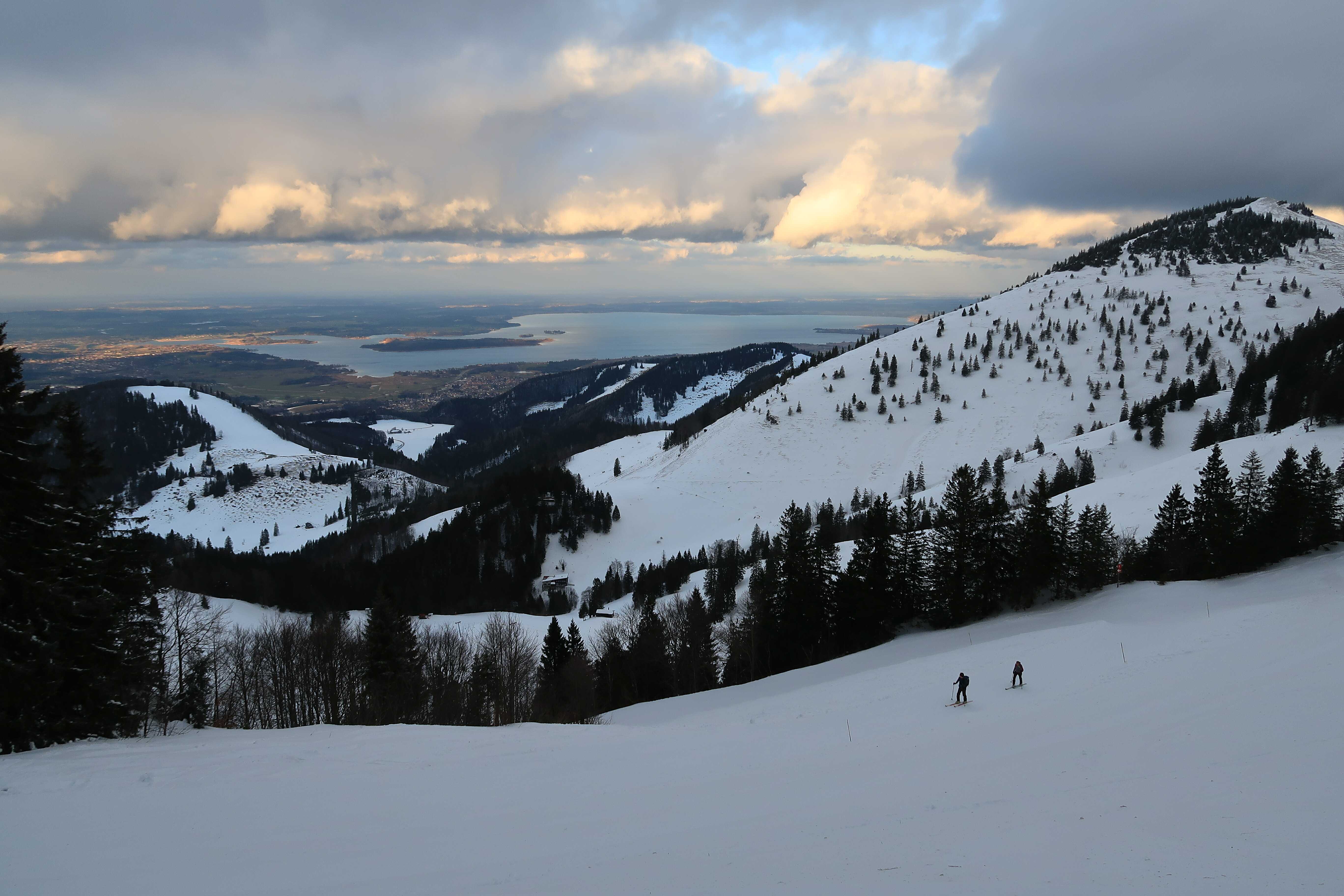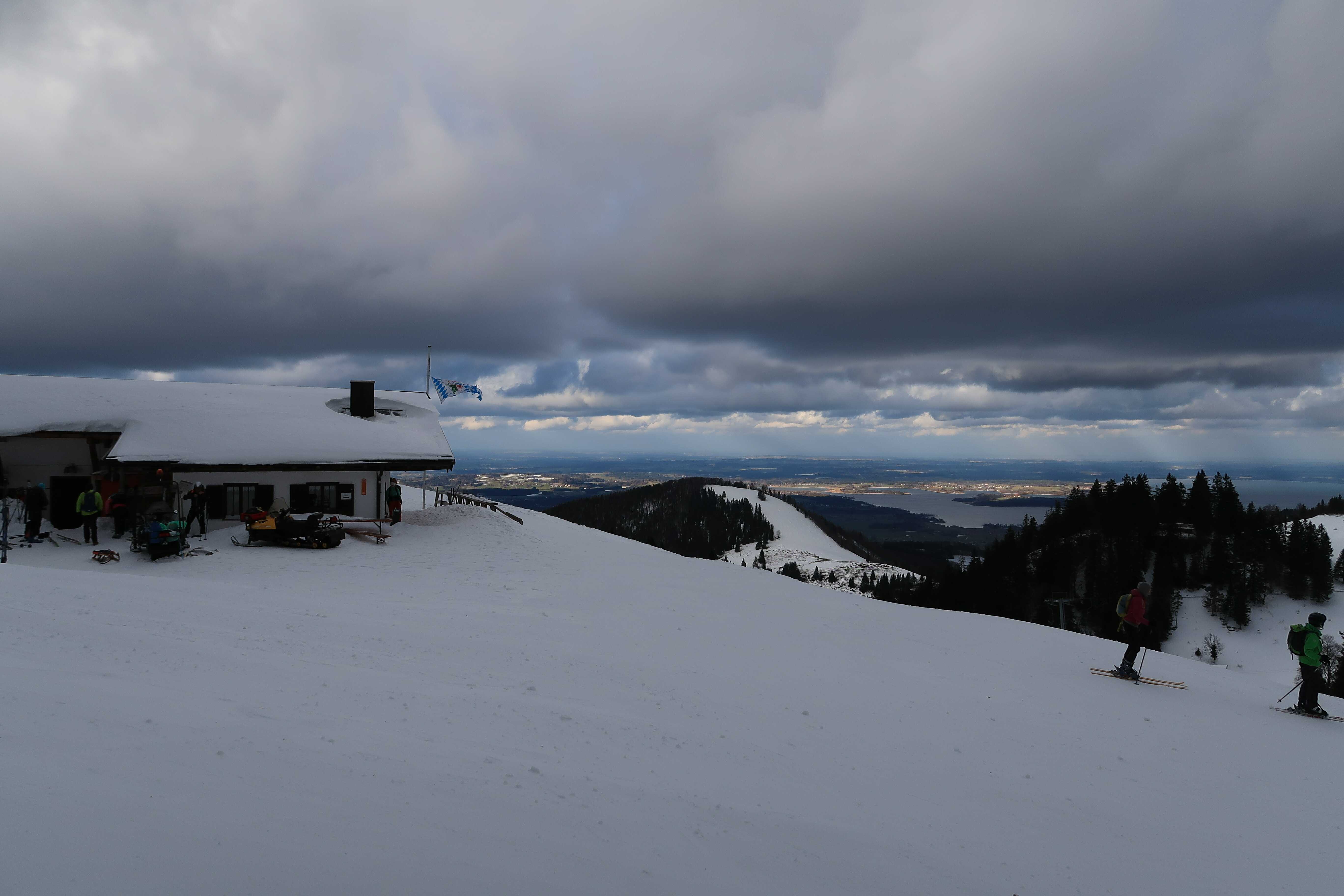 Vom Seilbahn-PP (heute kostenlos) auf der Skiabfahrt zur Steinlingalm (war geöffnet) und anschließend noch zur Kampenwandhütte. Die Abfahrt (alles gewalzt) hat noch genug Schnee bis zum PP, im unteren Teil gibts einige apere Stellen, vor allem am untersten Steil-Hang, aber noch mit Ski möglich. Unterhalb ca. 1000m firniger Schnee, darüber härter, stellenweise auch etwas hart-gefroren. Insgesamt alles gut fahrbar. Der Wind war am Nachmittag stellenweise lästig, über lange Strecken aber kaum windig.