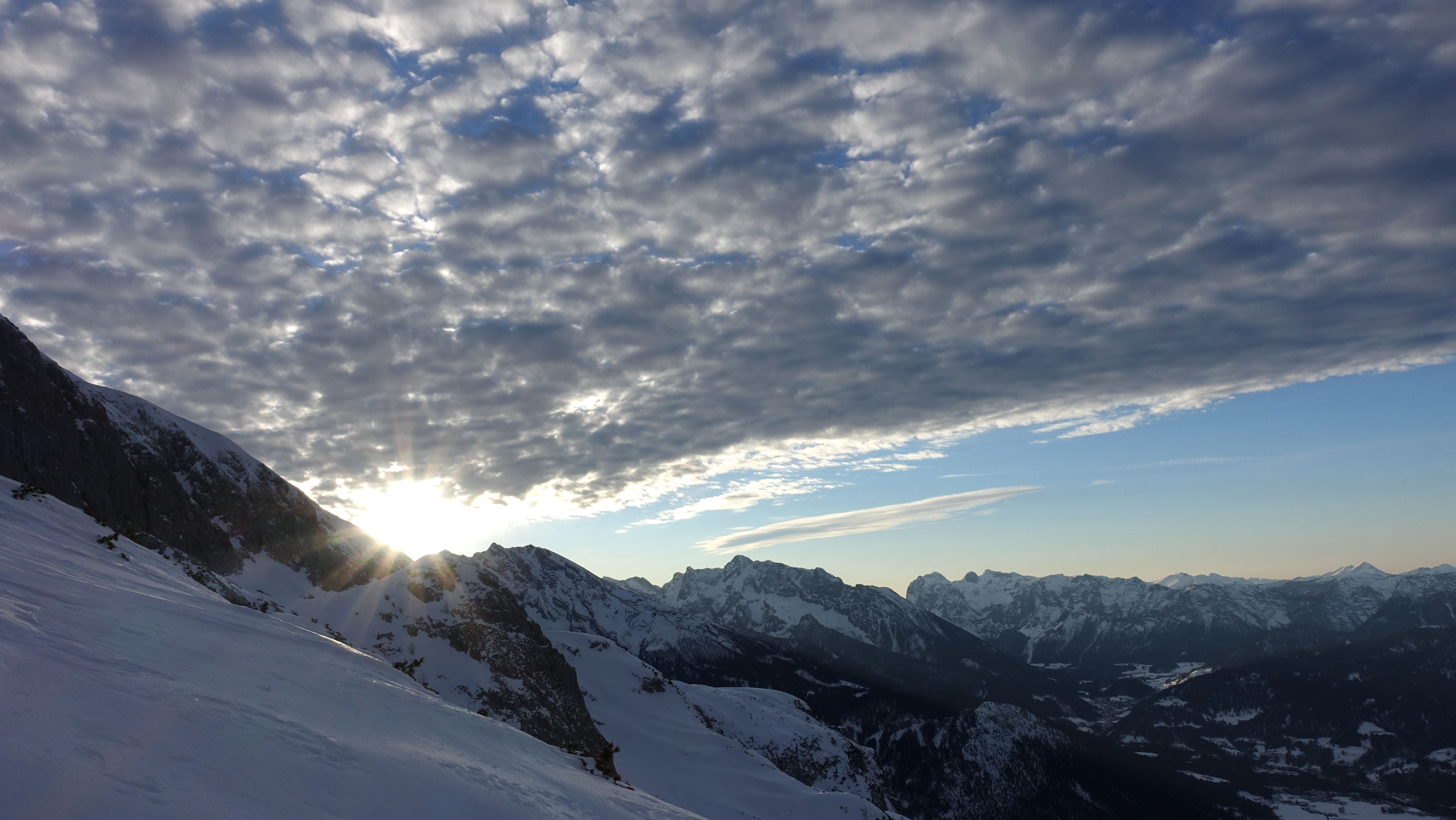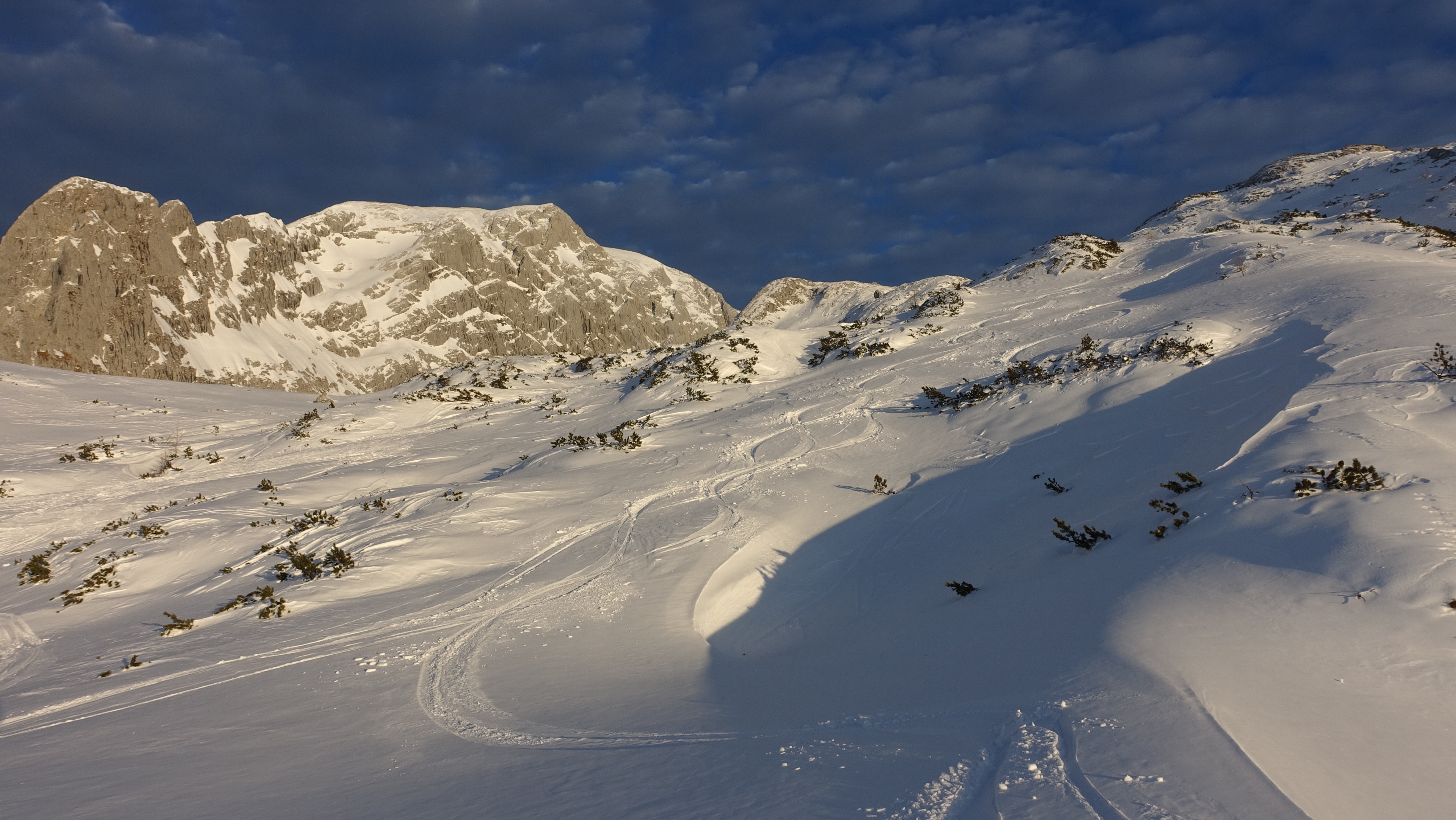 Gute Bedingungen am Hohen Göll. Wenig los und durchgehend gepresster Pulver. Sogar in der Südflanke hat es noch gestaubt. Mit den Schneefällen von heute wird alles neu angerichtet fürs Wochenende. Der Parkplatz war am Do nicht geräumt, parken war aber am Strassenrand möglich.