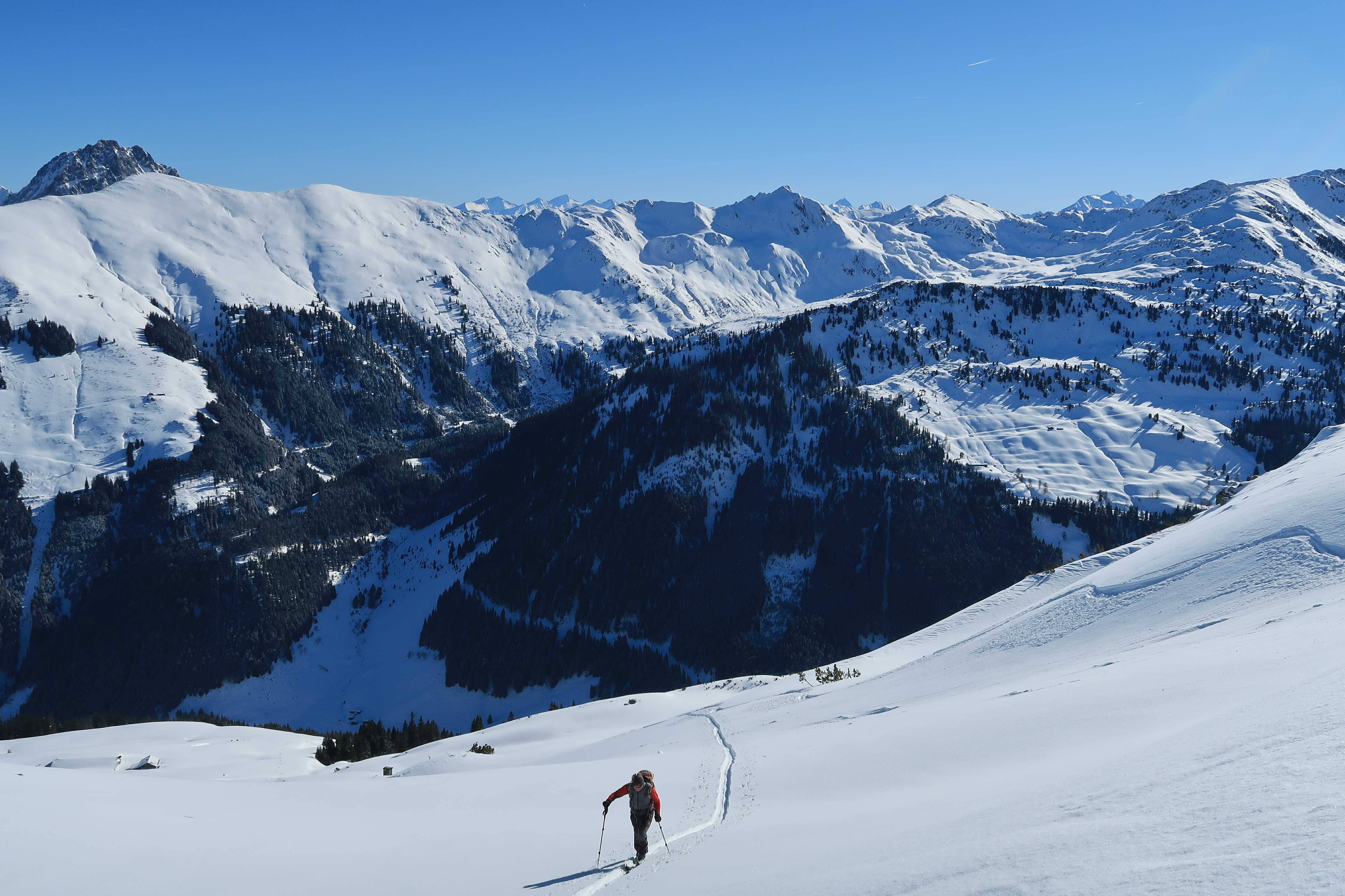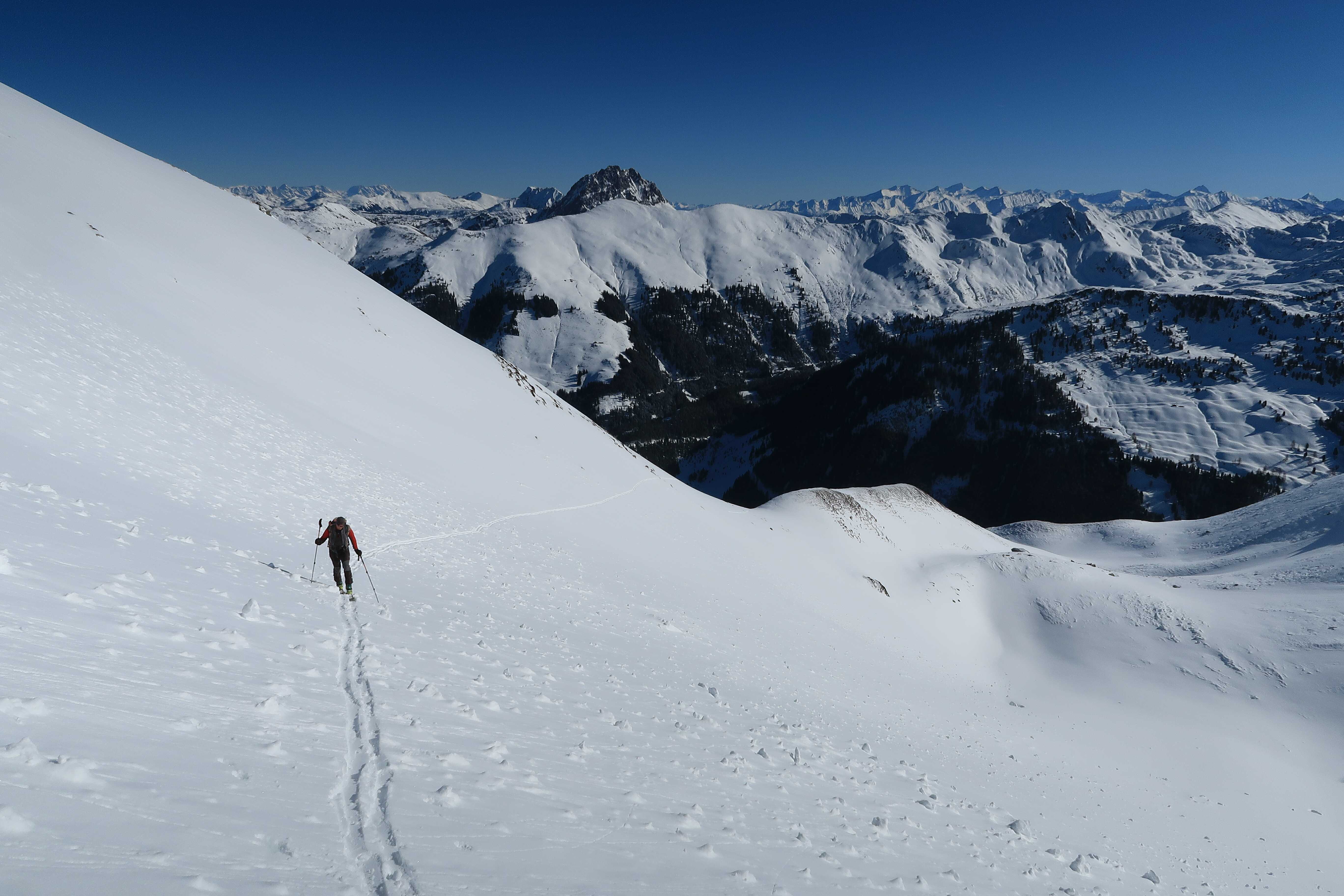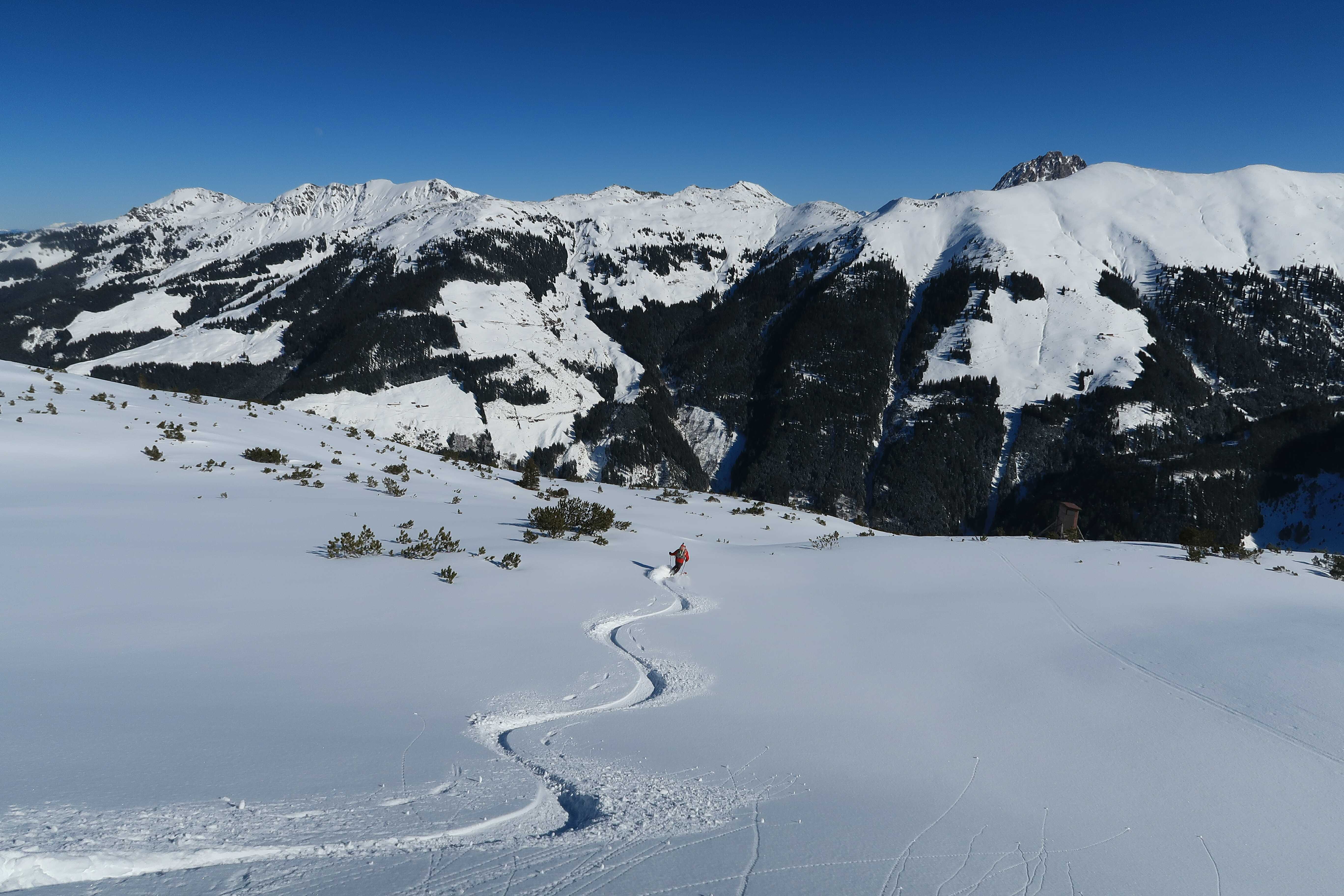 Vom Windautal/Ghs. Steinberg (872) über die Lagfeldenalm (1668) auf den Steinbergstein (2215). Hänge vom Steinberg schon ziemlich verspurt und leicht harschig. Hänge vom Steinbergstein wurden heute auch ordentlich eingespurt, aber noch viel Platz. Schneequalität meist Pulver bis leicht harschig. Am Gipfel reger Betrieb von allen Seiten. Keine Lawinenbeobachtungen.