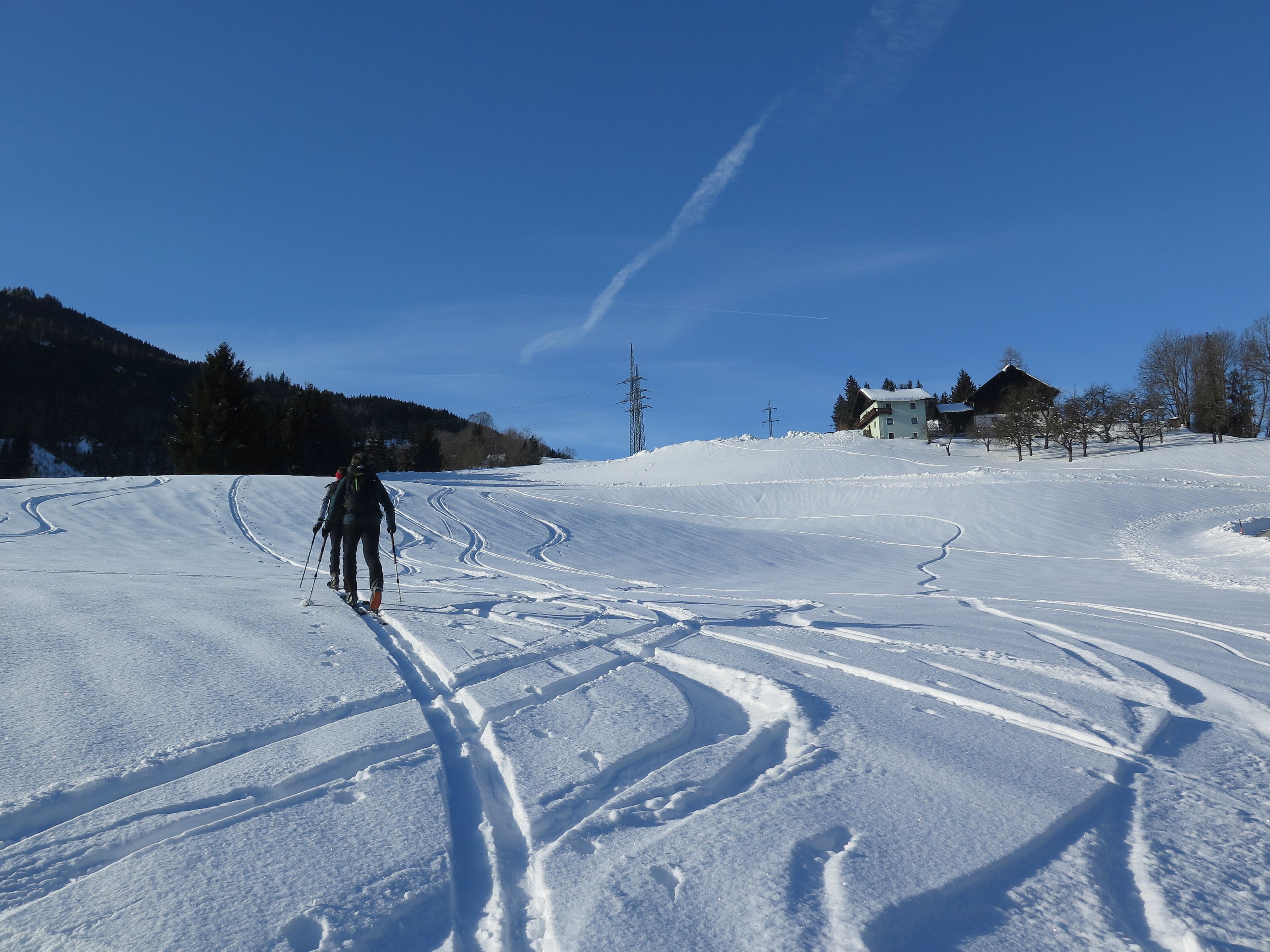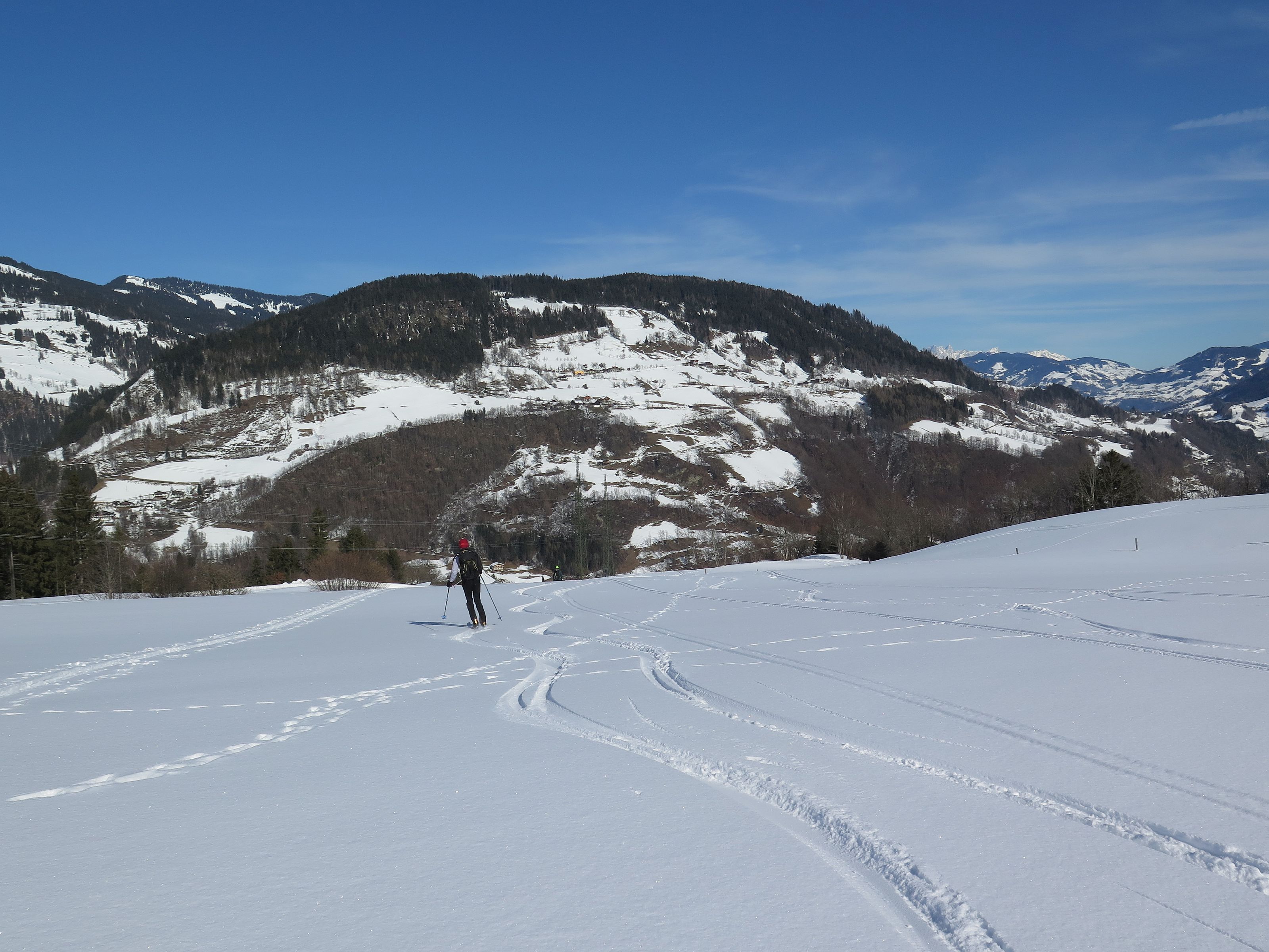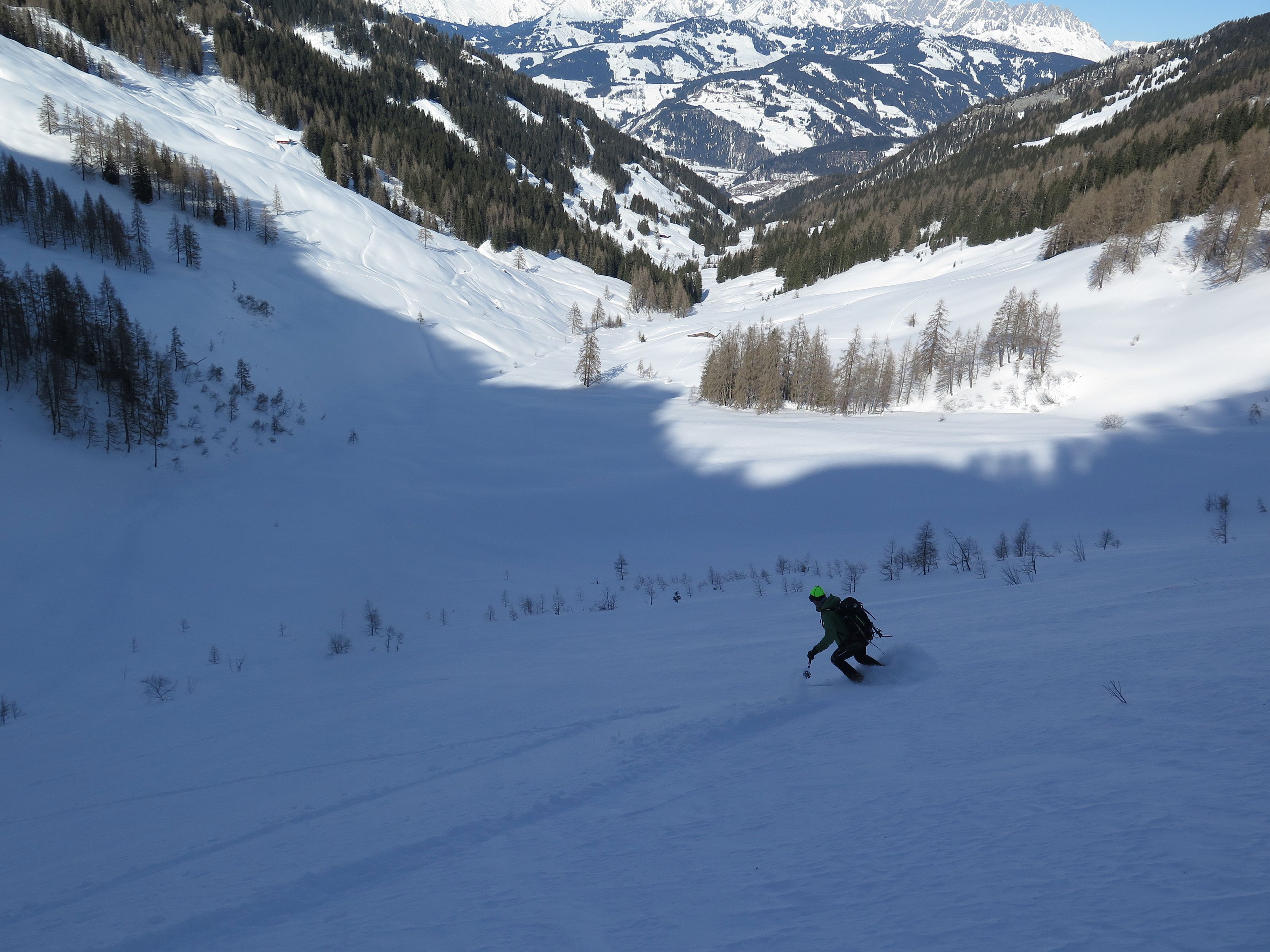 Bauernwiesen, eine längere Forstraße und steile Nordhänge sind der Charakter der Tour, die nur bei stabilen Schneeverhältnissen möglich ist. Ein selten besuchter Gipfel, der letzte Eintrag im Gipfelbuch war Anfang November. Wetter : Sonnig, zeitweise leichter Wind. Hatten eine schöne Pulverschneeabfahrt bis zum Auto. Heute keine weiteren Tourengeher gesichtet, selbst am Anthaupten war es ruhig.