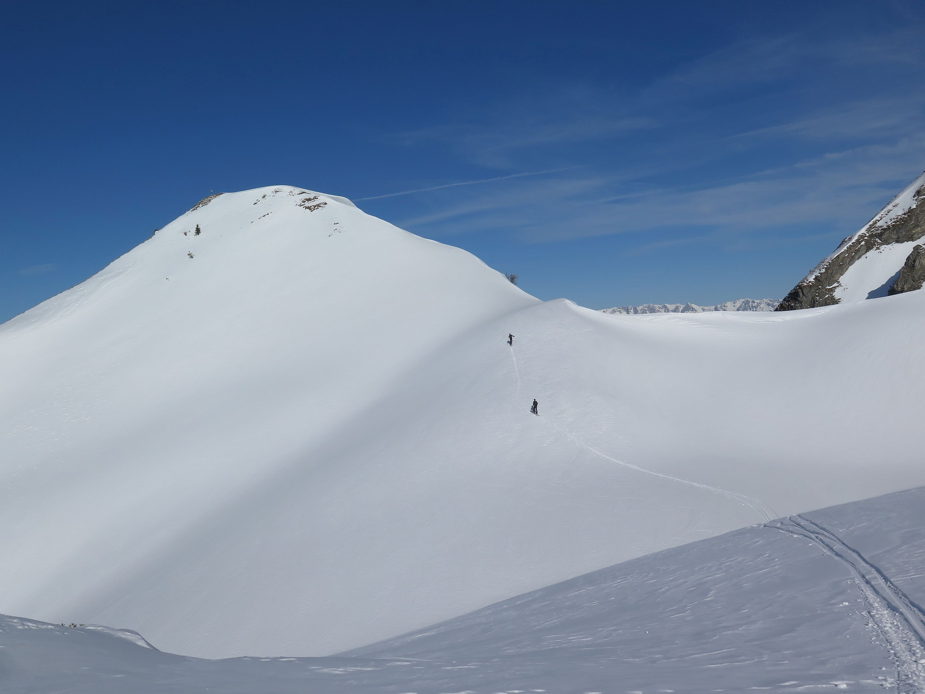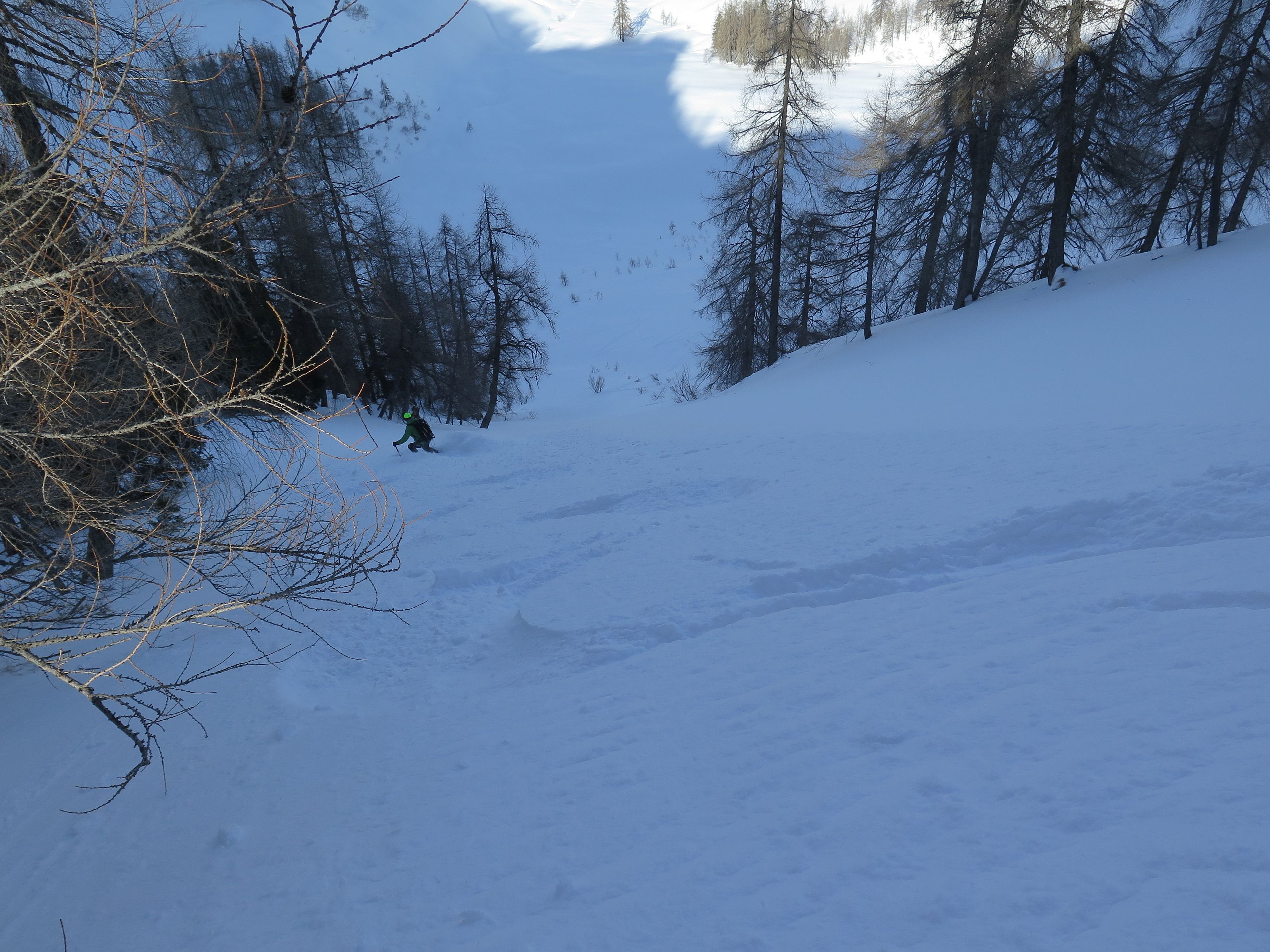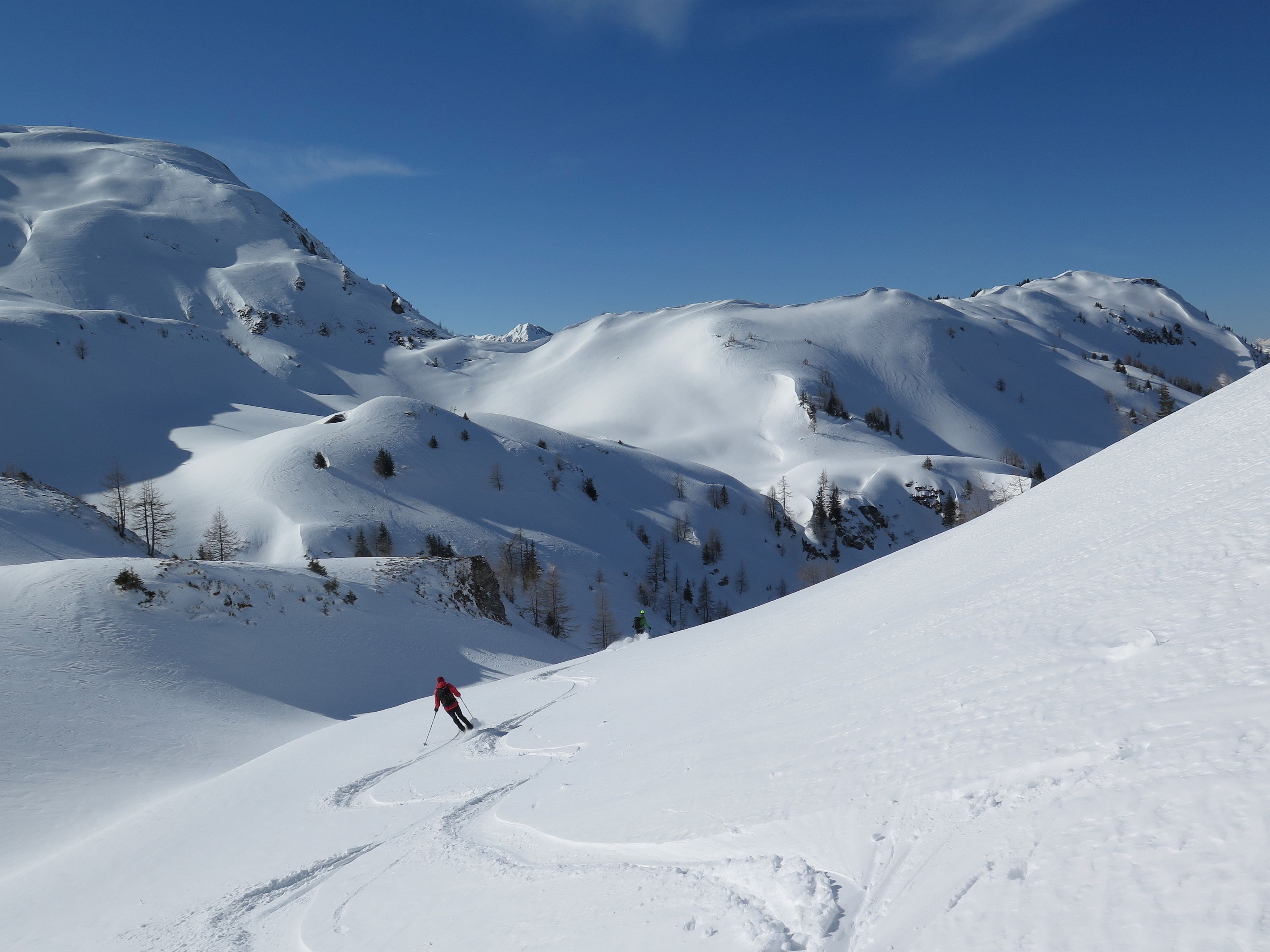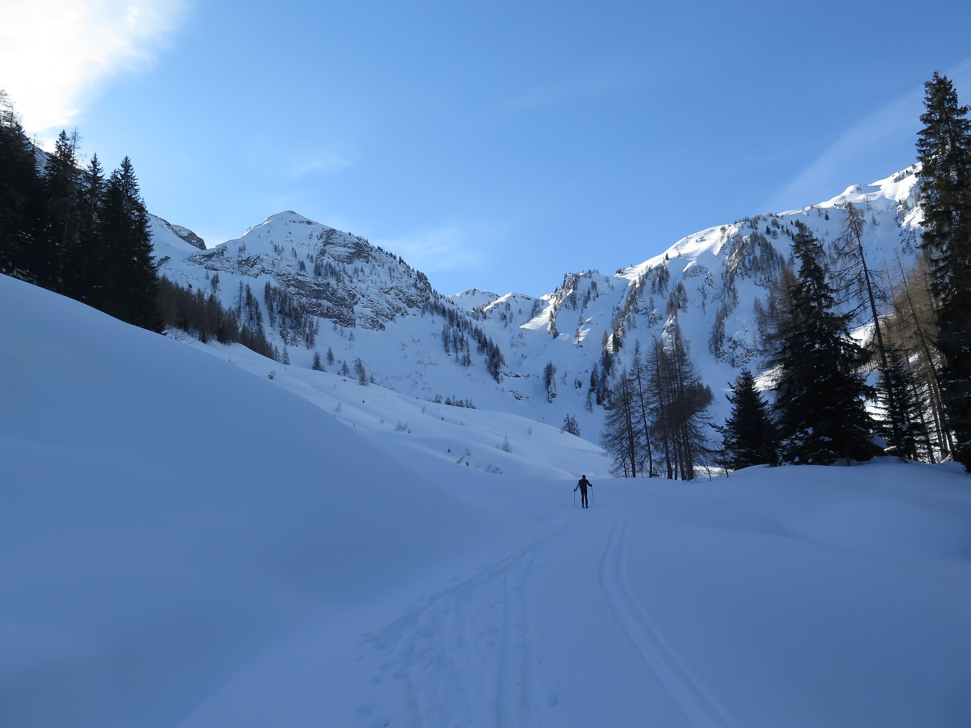 Bauernwiesen, eine längere Forstraße und steile Nordhänge sind der Charakter der Tour, die nur bei stabilen Schneeverhältnissen möglich ist. Ein selten besuchter Gipfel, der letzte Eintrag im Gipfelbuch war Anfang November. Wetter : Sonnig, zeitweise leichter Wind. Hatten eine schöne Pulverschneeabfahrt bis zum Auto. Heute keine weiteren Tourengeher gesichtet, selbst am Anthaupten war es ruhig.