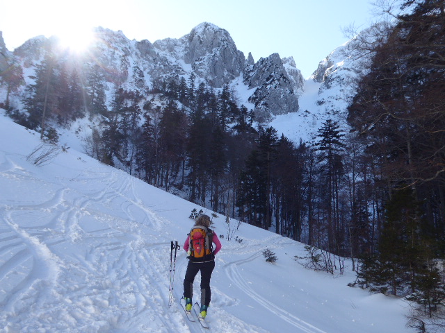 Im Murkar am Montag beste Verhältnisse bei gut gesetzter Neuschneeauflage u. teils dünnen Harschdeckel. Der Südhang zum Gipfel sehr abgefahren, aber ohne Steinkontakt befahrbar