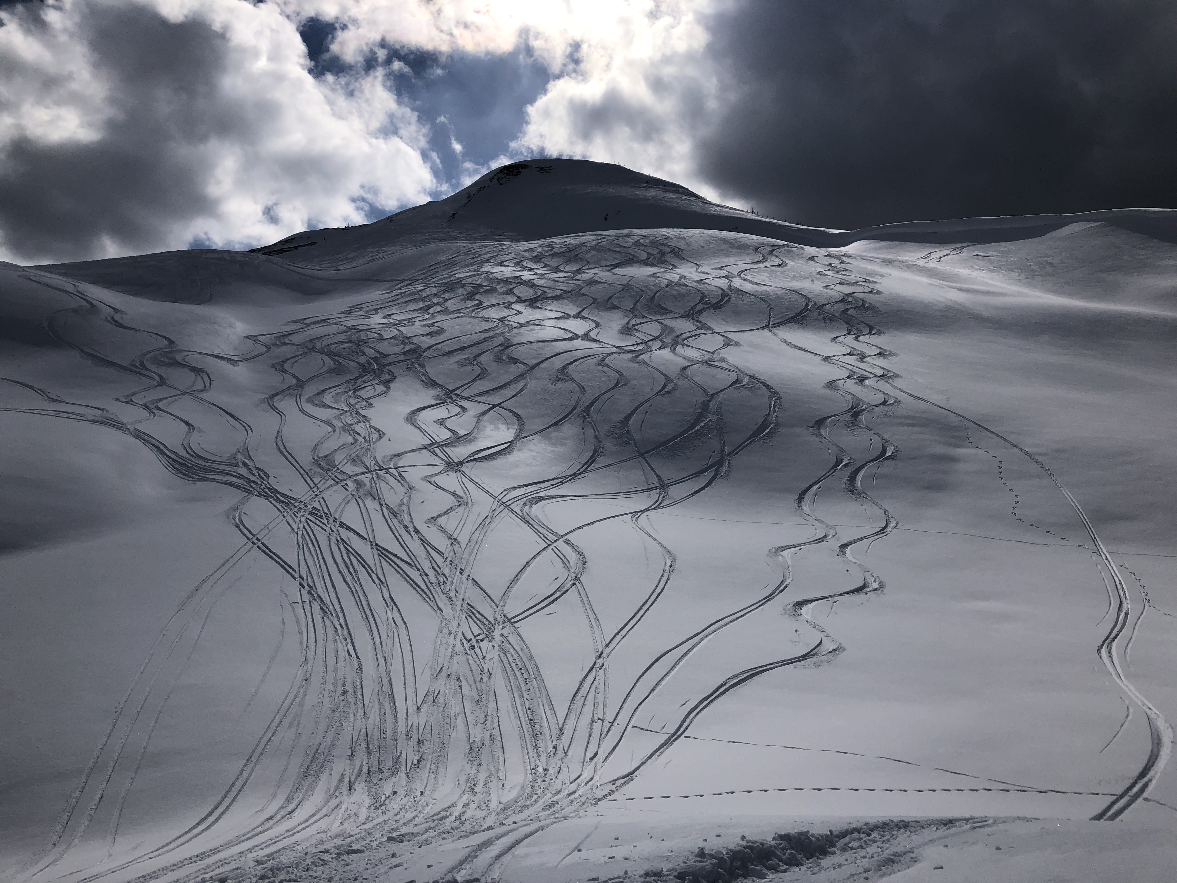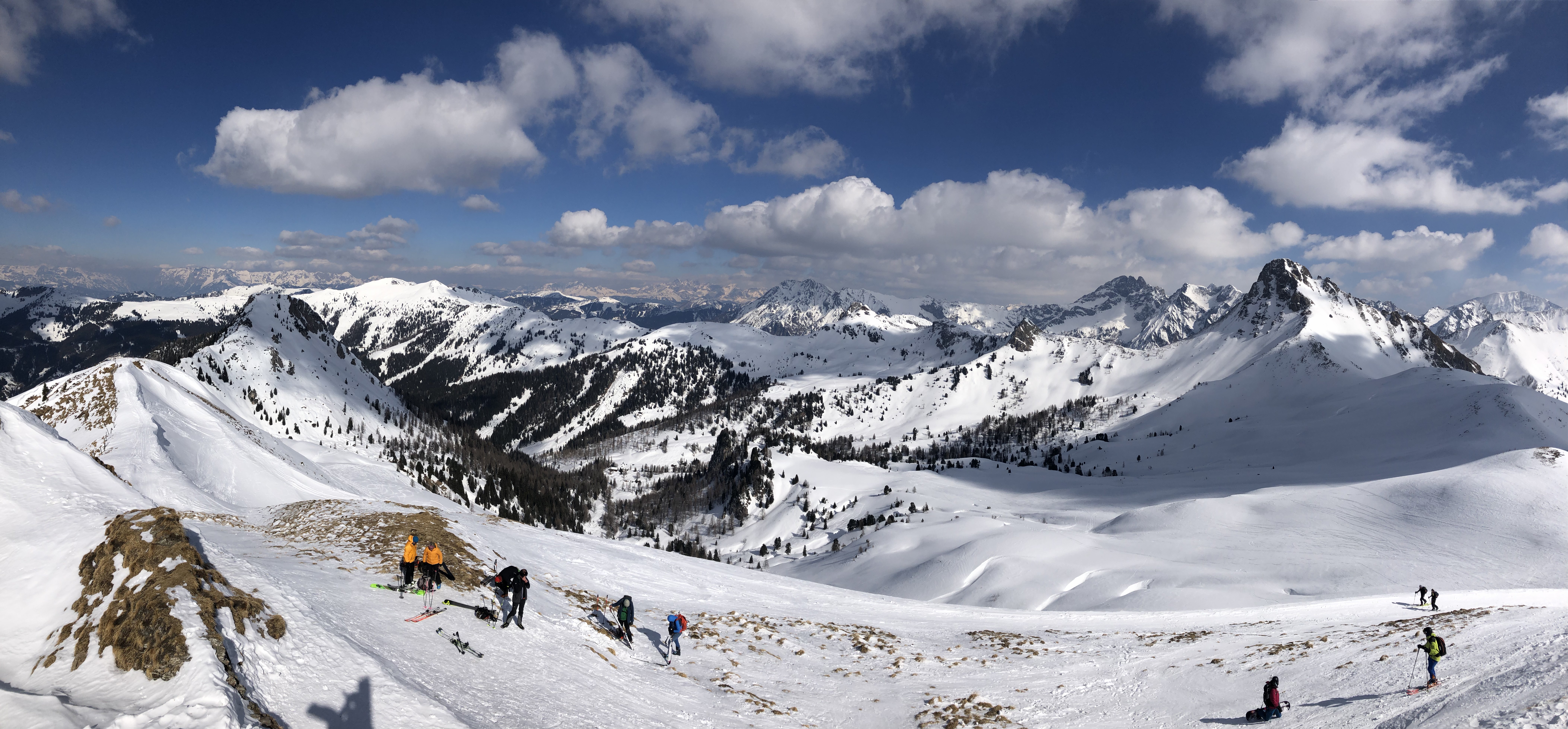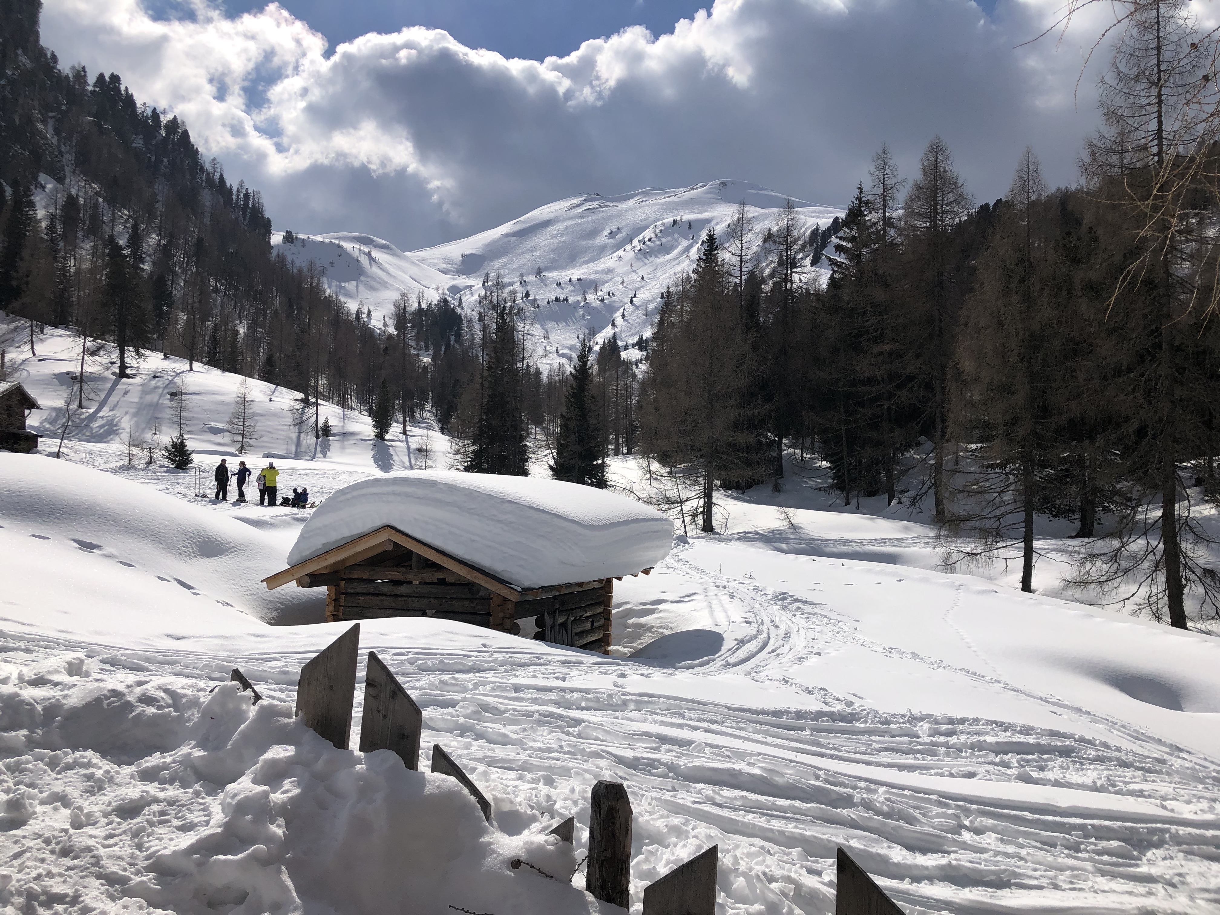 Beim Weggehen ca. -3C - halb so wild. Gute Schneelage vom Parkplatz weg. Ab der Filzmoosalm zunehmend Wind und sehr kalt. Sonnig mit wolkigen Phasen. Die großen Gipfel im Panorama waren häufig in Wolken. Gut gesetzter Pulver im oberen Bereich - ab dem Loosbichel schon stark zerfahren aber gut zu fahren.