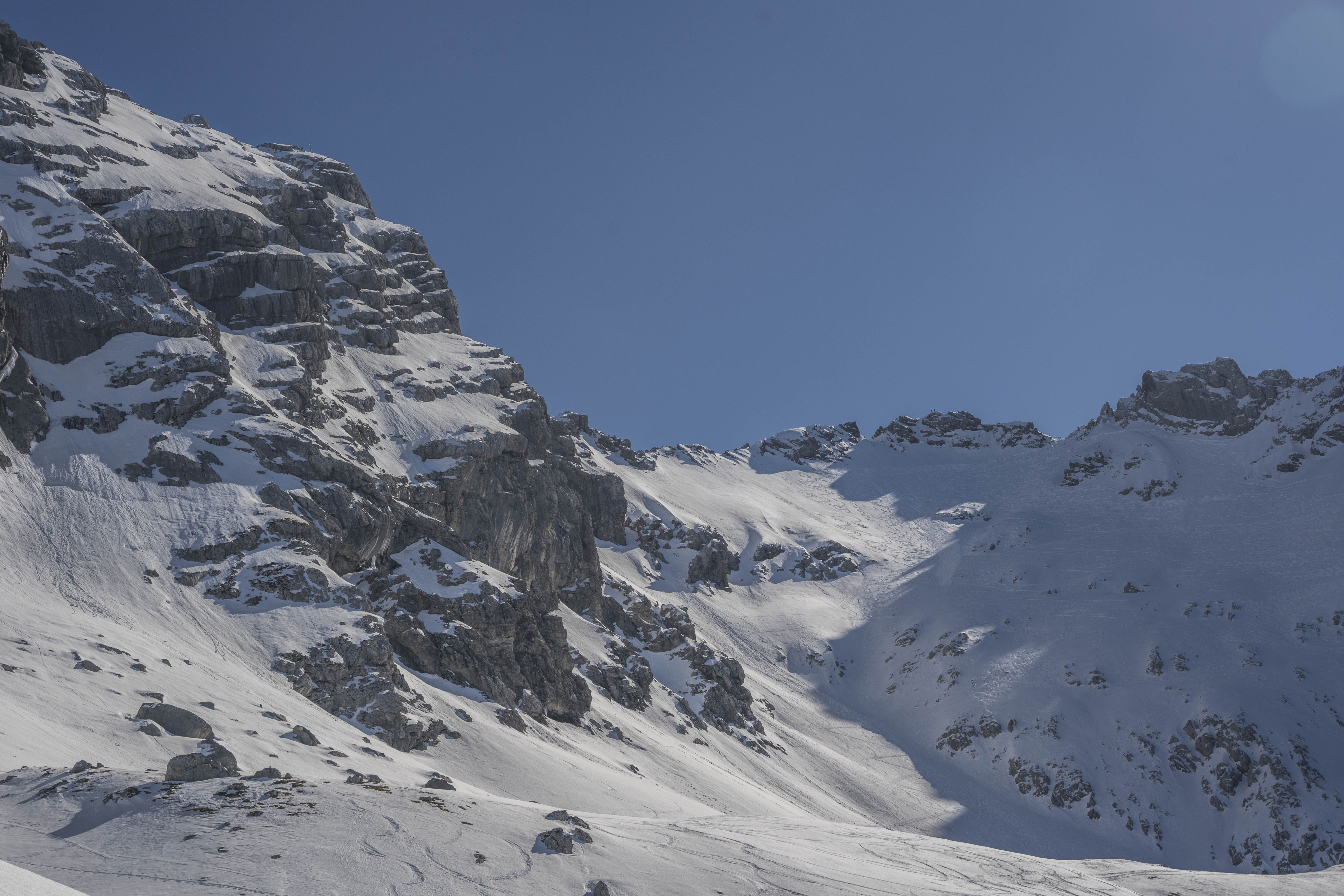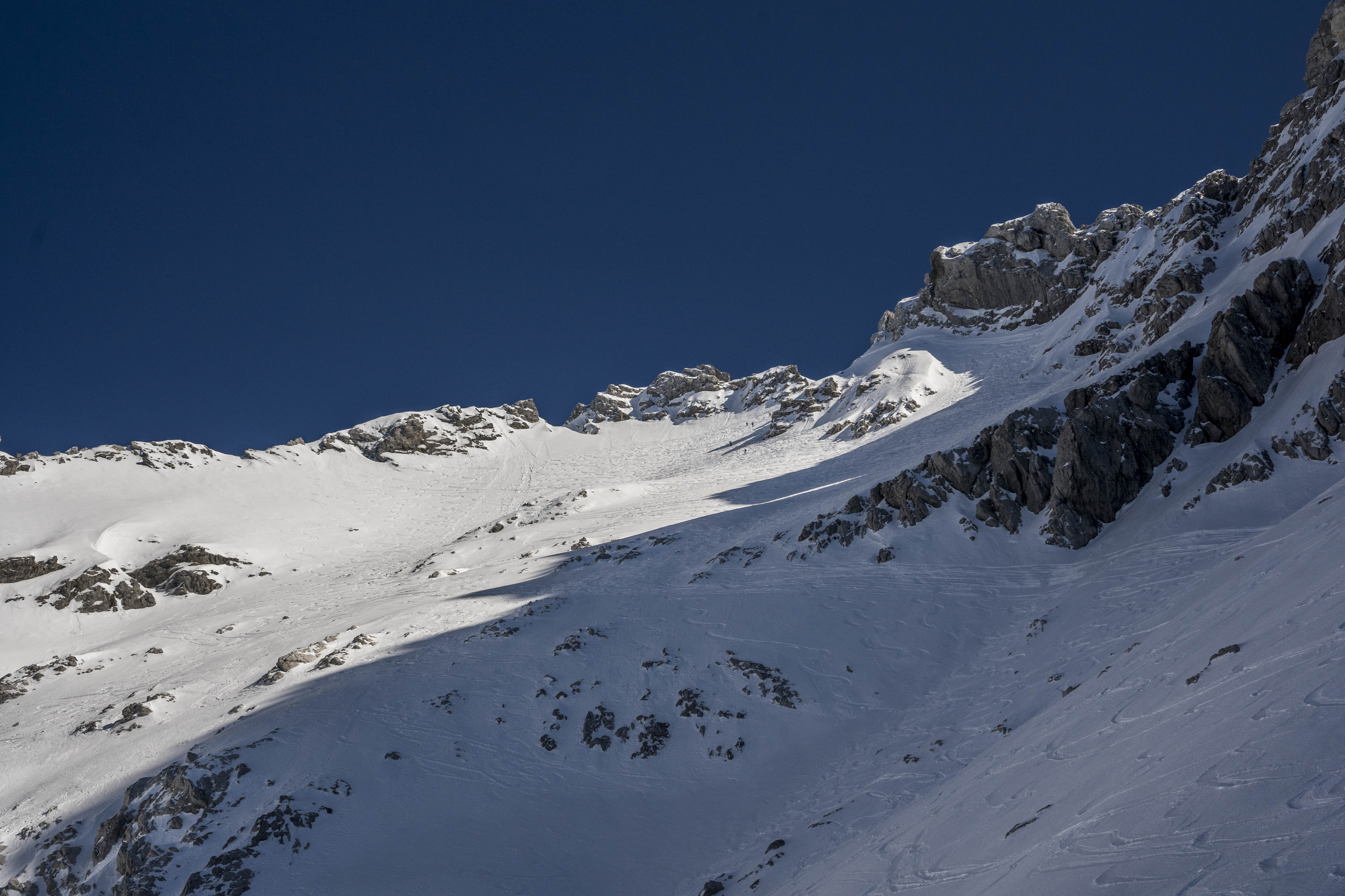 In der Steilstufe die ins Hocheiskar rein geht gab es einige reste an alten Lawinenknollen. Oben hat man nur kleine ältere Schneerutsche gesehen.