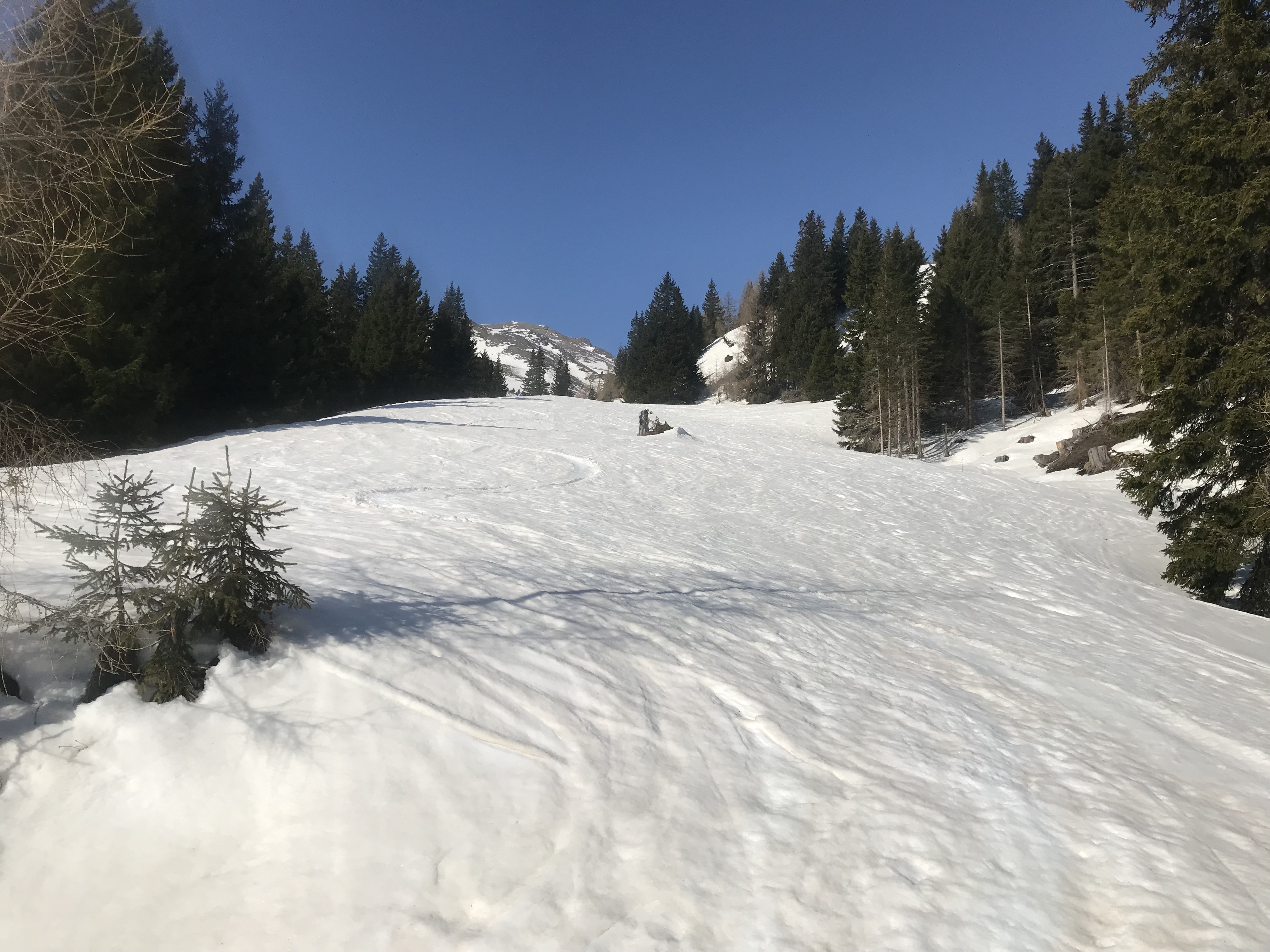 noch gute Schneebedingungen in Pusterwald im Scharnitzgraben.