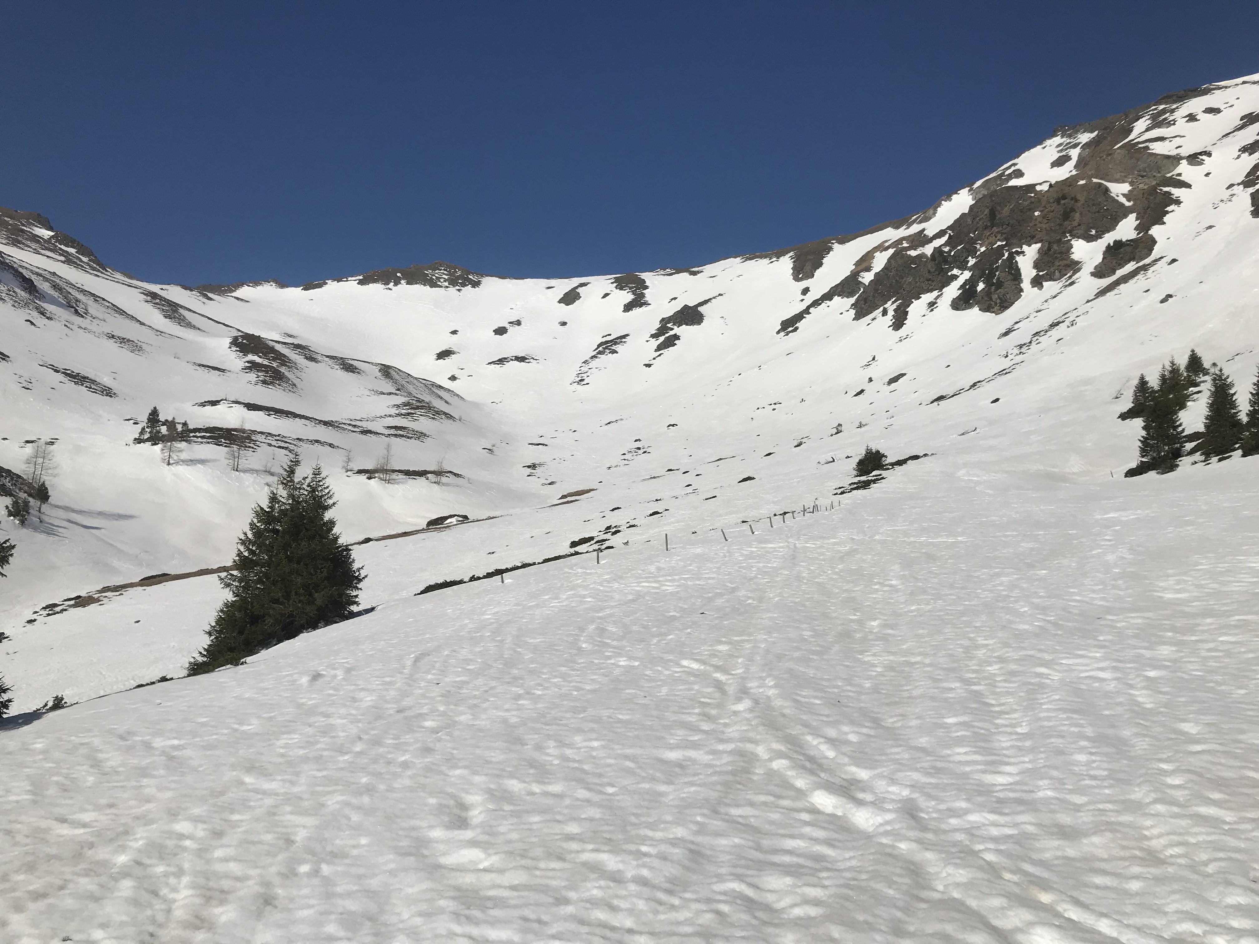perfekte Firnabfahrt in den Osthängen des Scharnitzfeldes. Am besten und sichersten schon um 10.00 Uhr abfahren