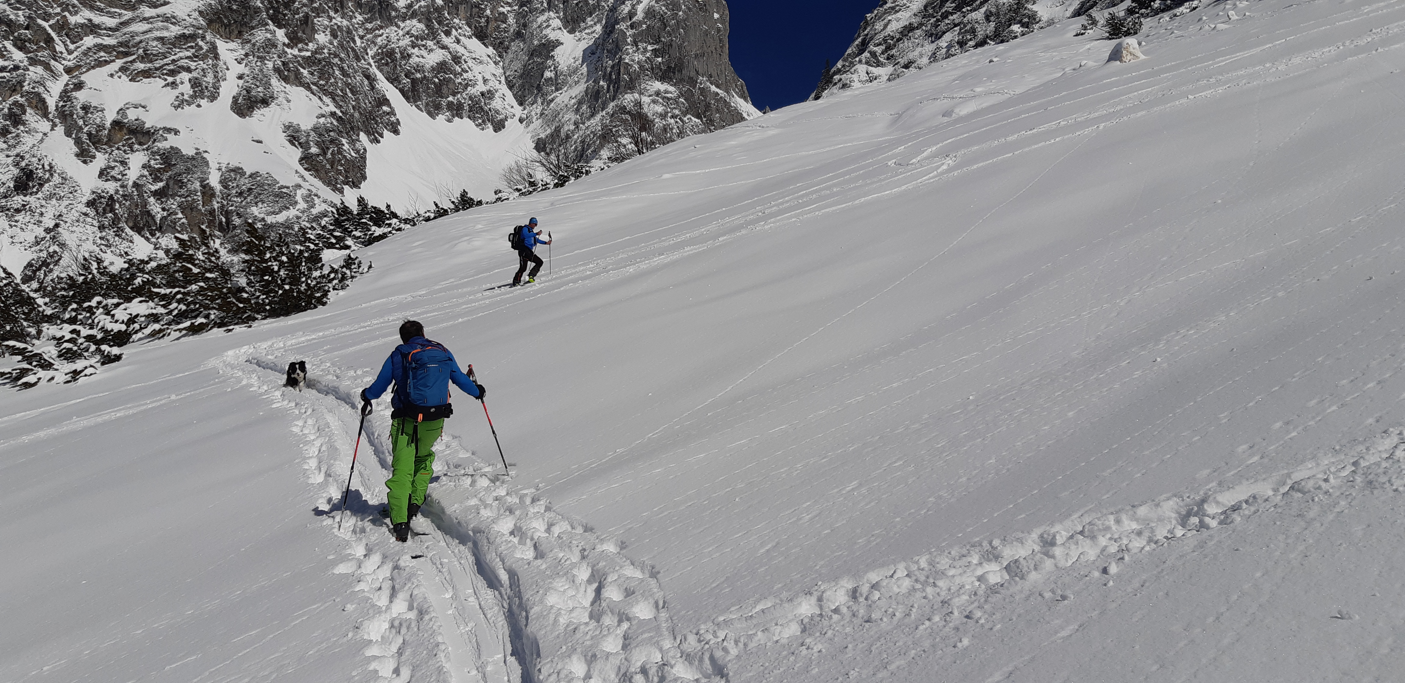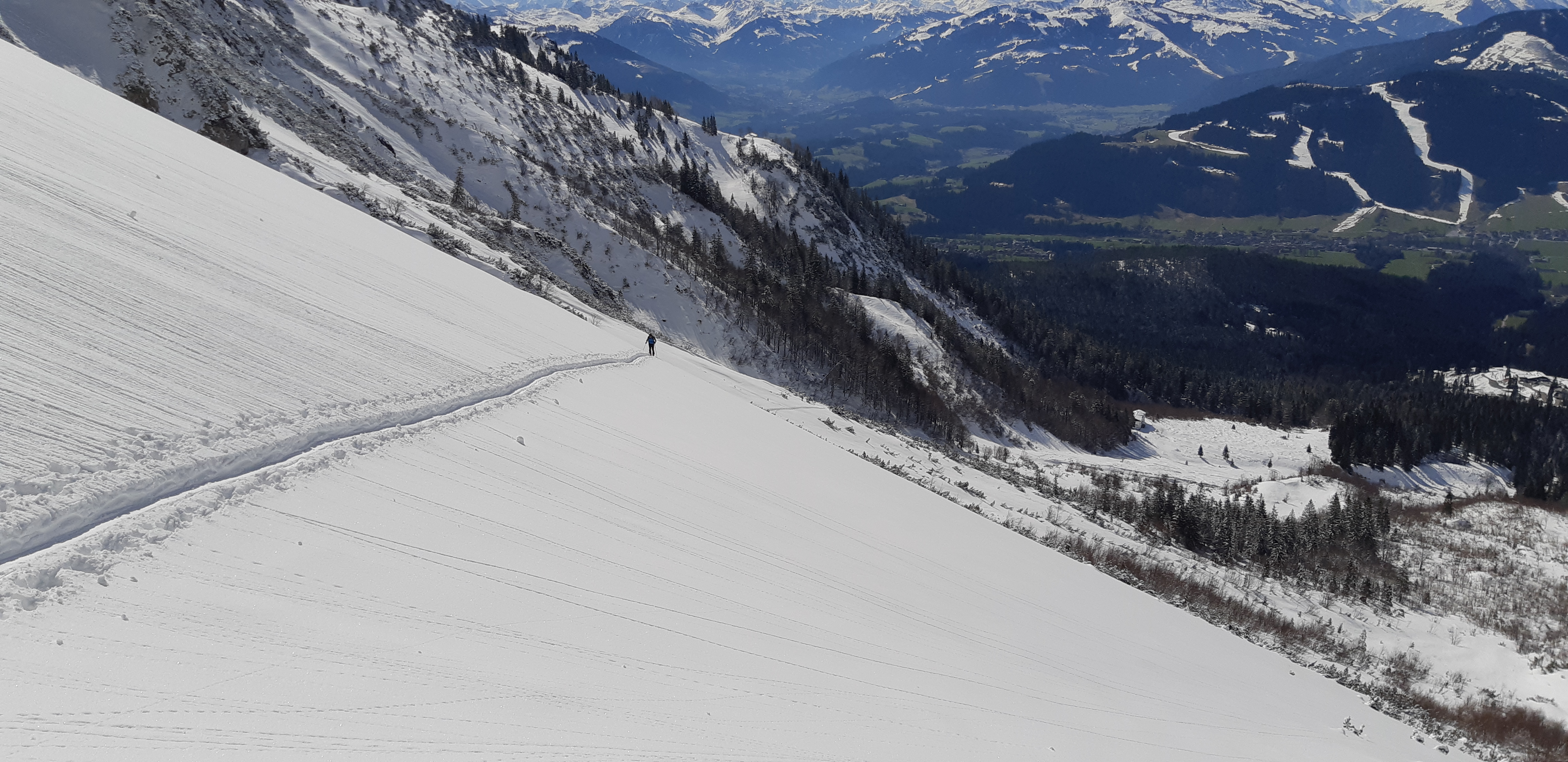 Leider etwas zu spät, um den herrlichen Pulverschnee vom Sonntag zu Genießen, aber dennoch landschaftlich eine herrliche Tour.
