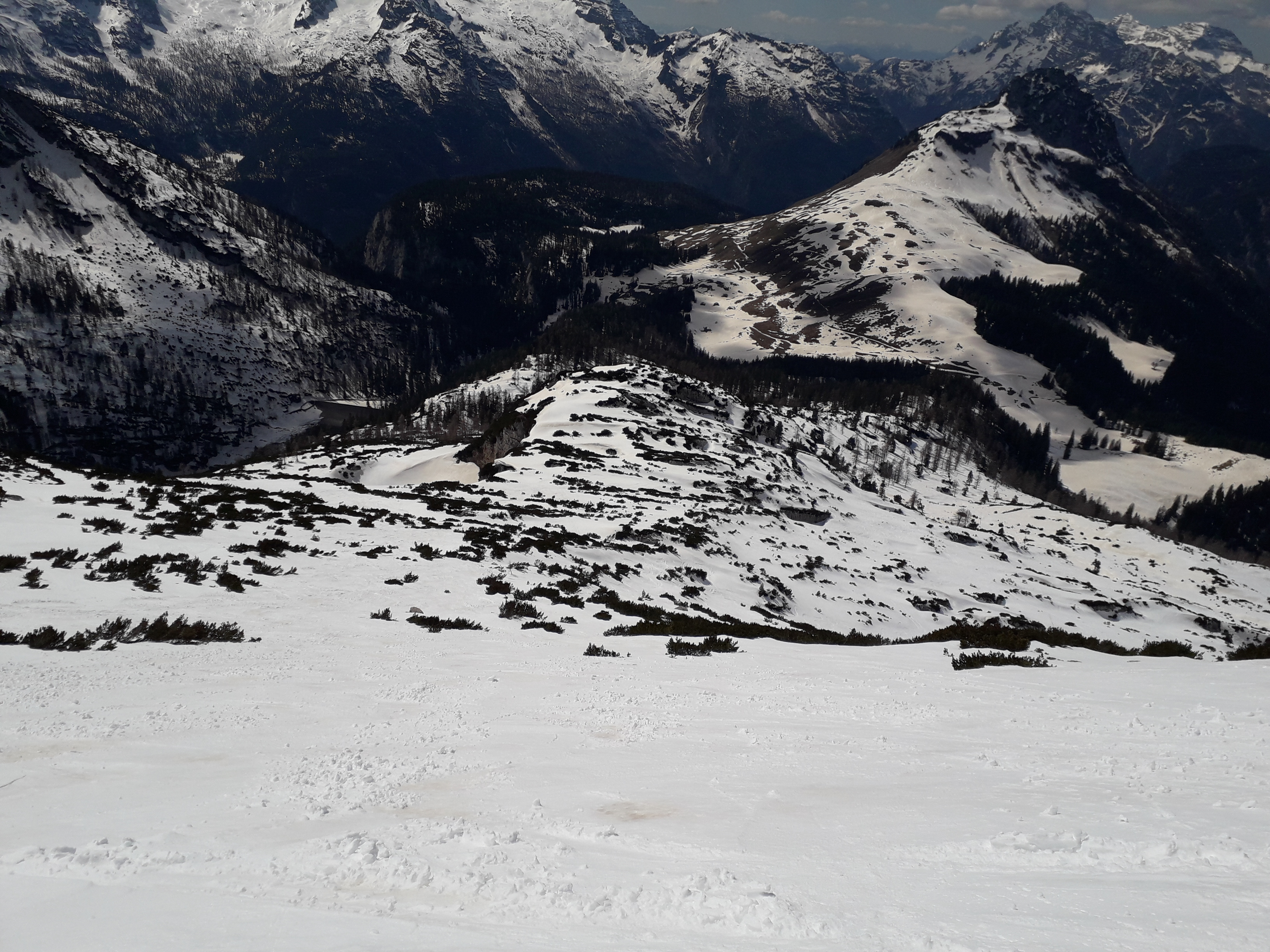 Wie von Annamirl schon beschrieben waren auch heute die Schneeverhältnisse am Seehorn noch sehr gut. Vom Parkplatz Hintertal weg mit Ski aber nicht lange wegen vielen aperen Stellen Ski ca. 45min getragen danach durchgehen gute Schneelage. Wetter: sonnig, gute Fernsicht heute wars wärmer als gestern. Bei der Abfahrt um 14 Uhr am Gipfelhang noch Pulverschnee danach butterweicher Firn 3-5cm bis zu den Kallbrunnalmen. Forststraße bis auf die kurze Tragepassage auch noch gut fahrbar.