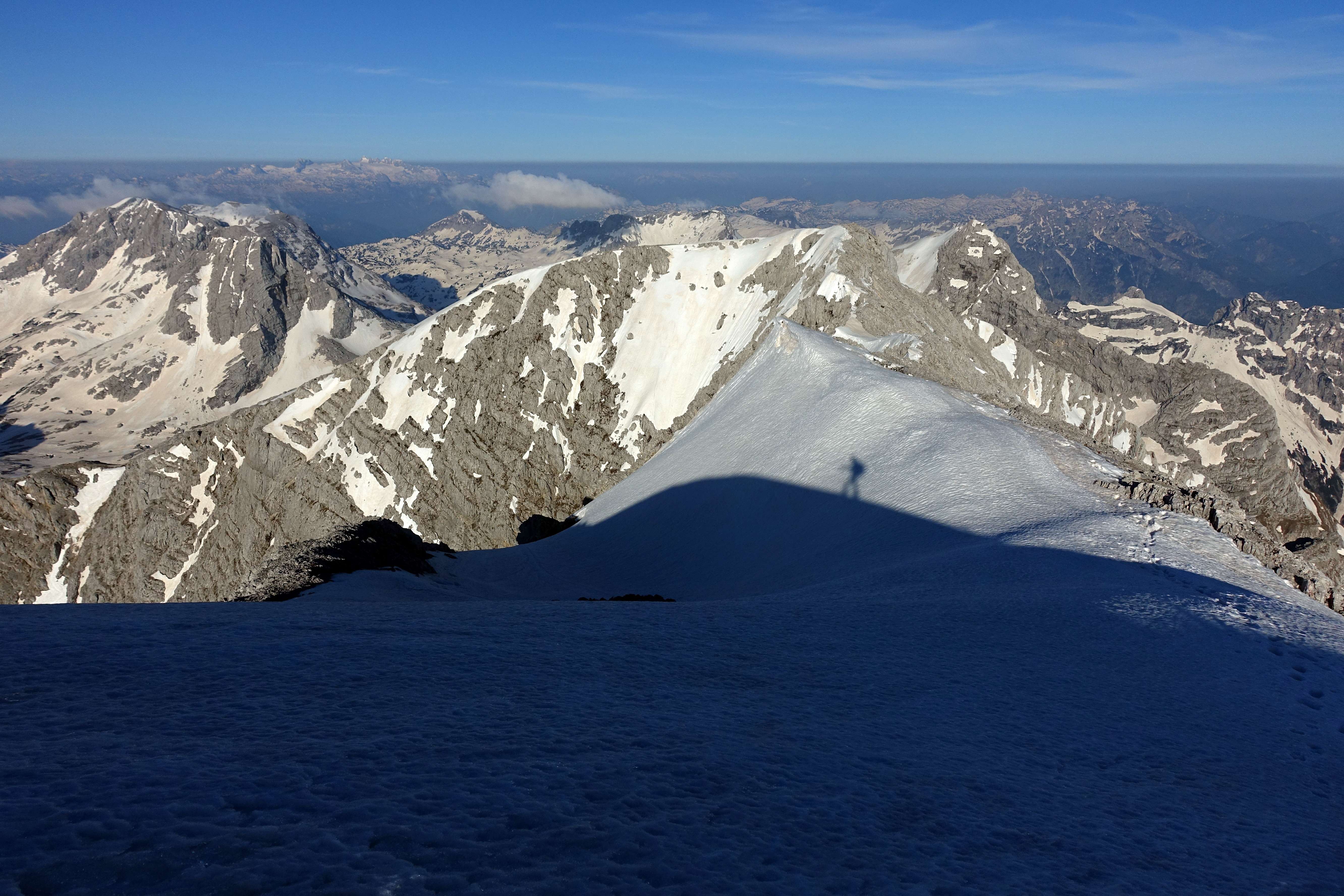 Schnee derzeit 10min nach Prielschutzhaus, Schneelage ab ca. 1.600m vergleichsweise sehr gut; (das erste Mal in dieser Saison !!) Harscheisen gebraucht, ab 100hm unter Brotfallscharte bis zum Gipfel dann gleich mit Steigeisen durchgegangen - stellenweise schon schneefrei, somit wechseln sich pickelharter Harsch, Fels und Eis ab; Wind ab Brotfallscharte dämpft die Frühlingsgefühle.