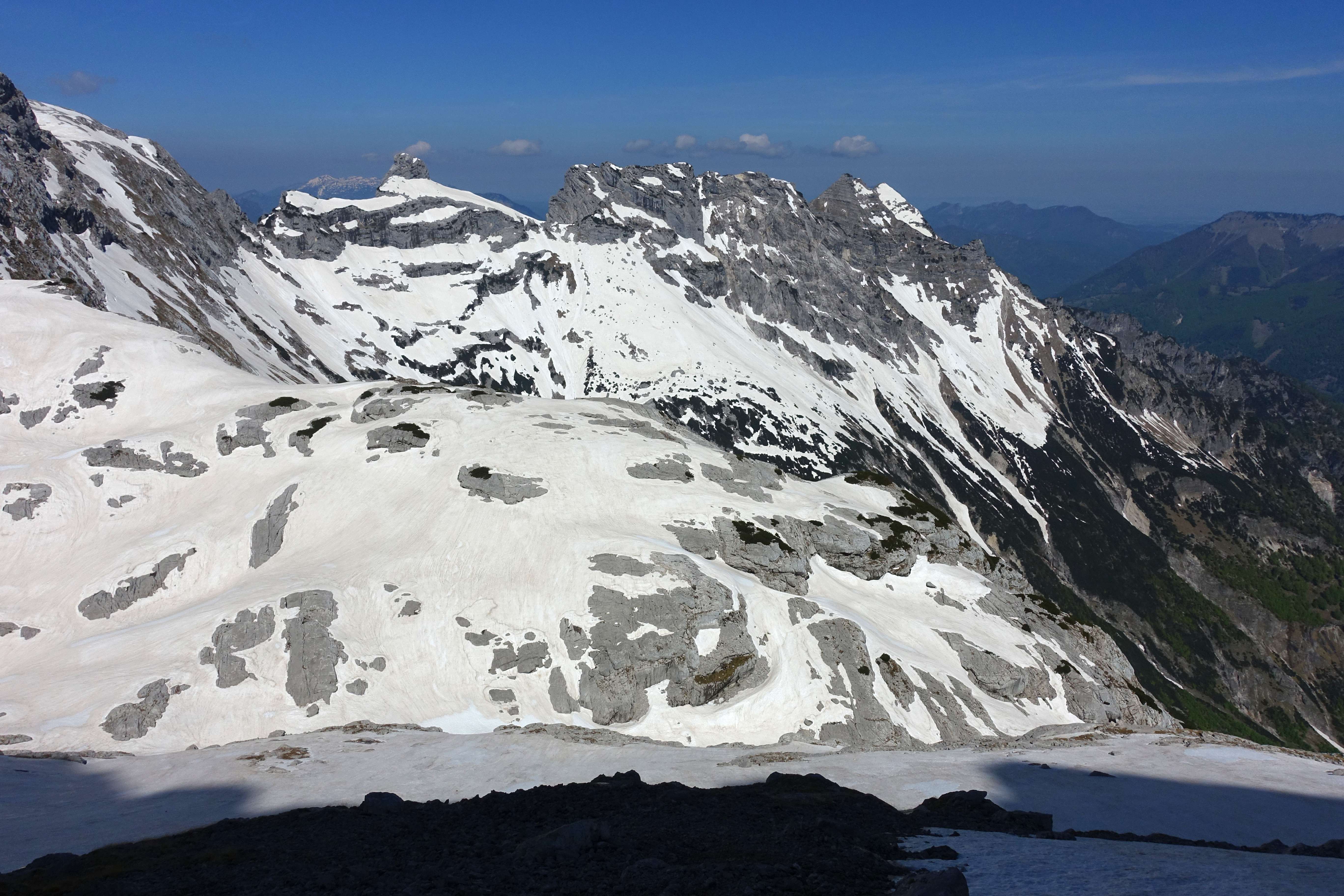 Abfahrt vom Priel (07:30) pickelhart bis in die Mulde südlich vom Fleischbanksattel; Abfahrt v. Schermberg (09:00) perfekter Firn, Schneetal trotz nordseitiger Expo griffig, Büchsenkar schmierig firnig