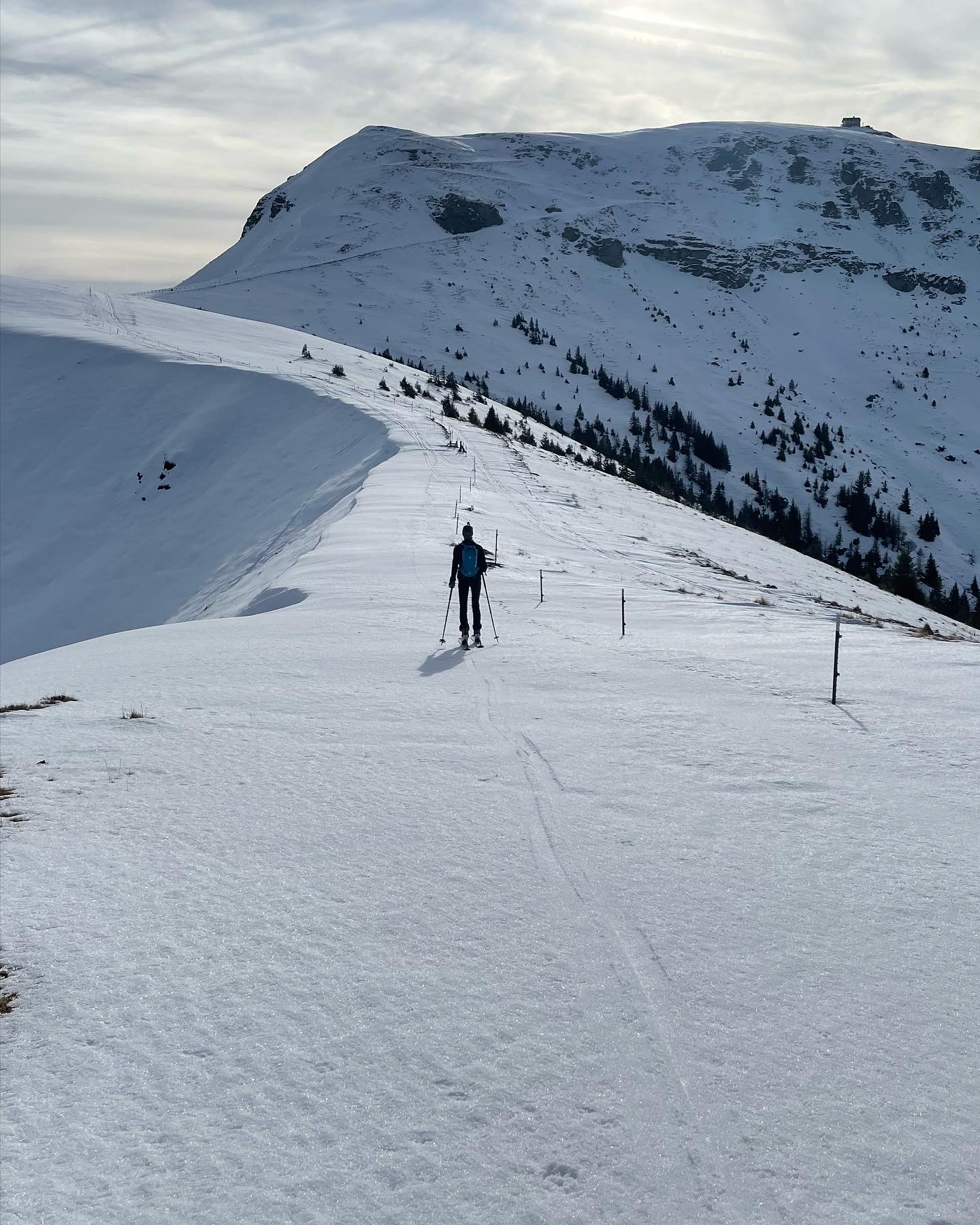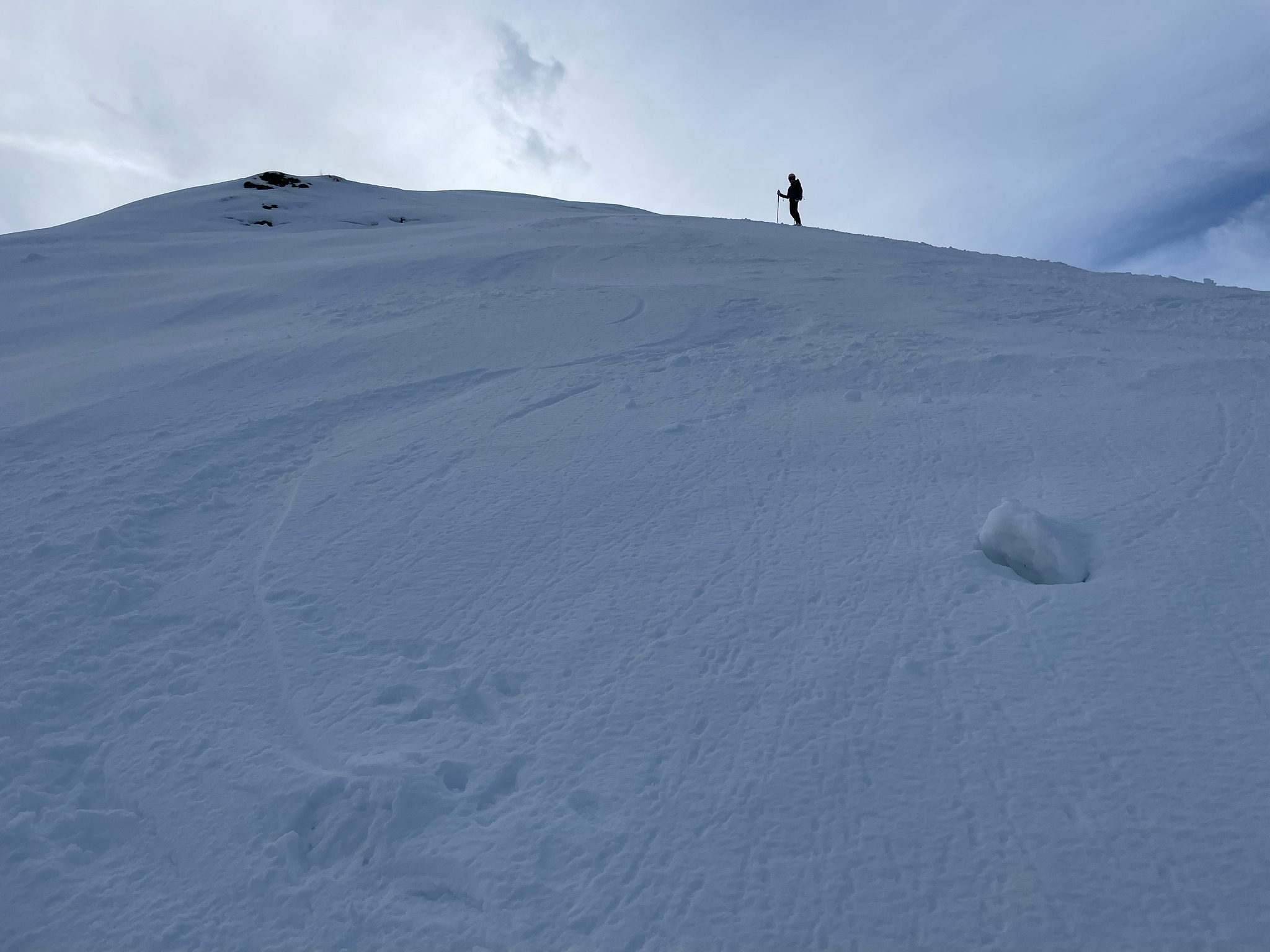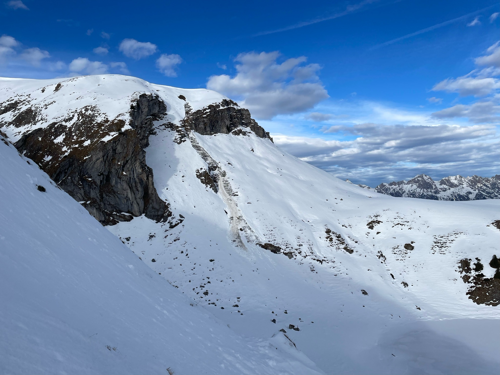 Stabile, tragfähige Schneedecke. Schmelzharsch und Windharsch. Gleitschnee auf sehr steilen bis extrem steilen Süd/Südostseiten Grashängen.