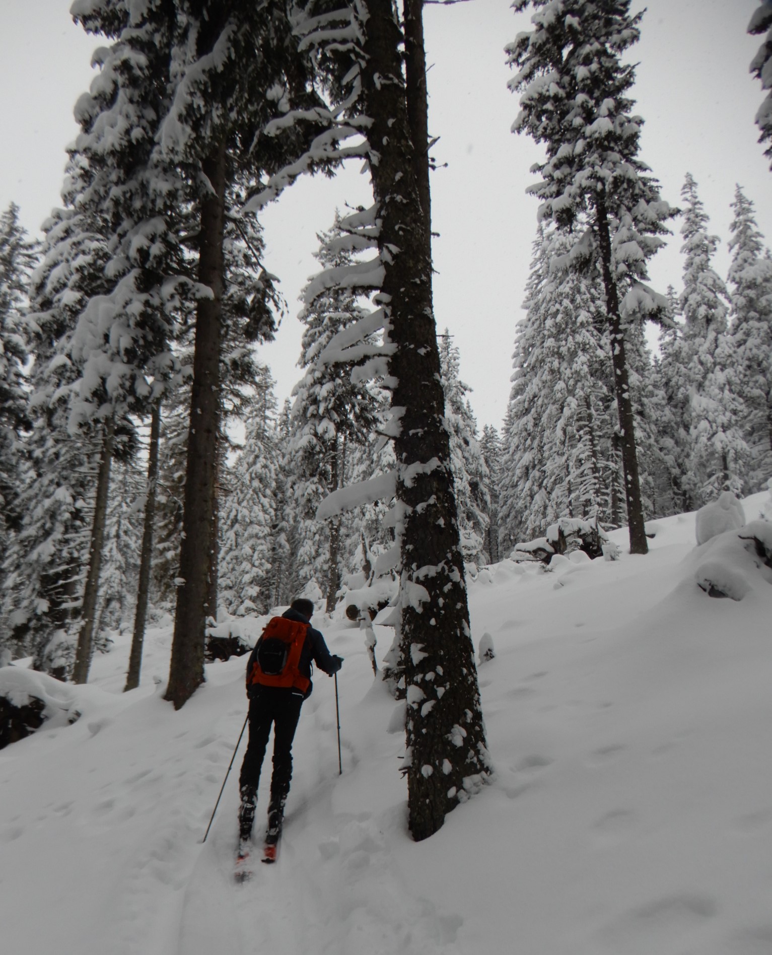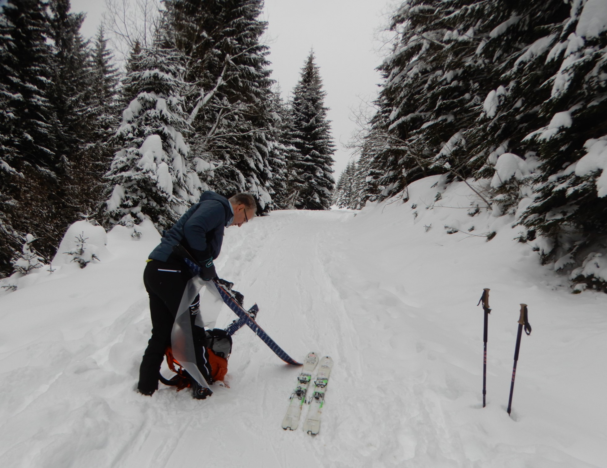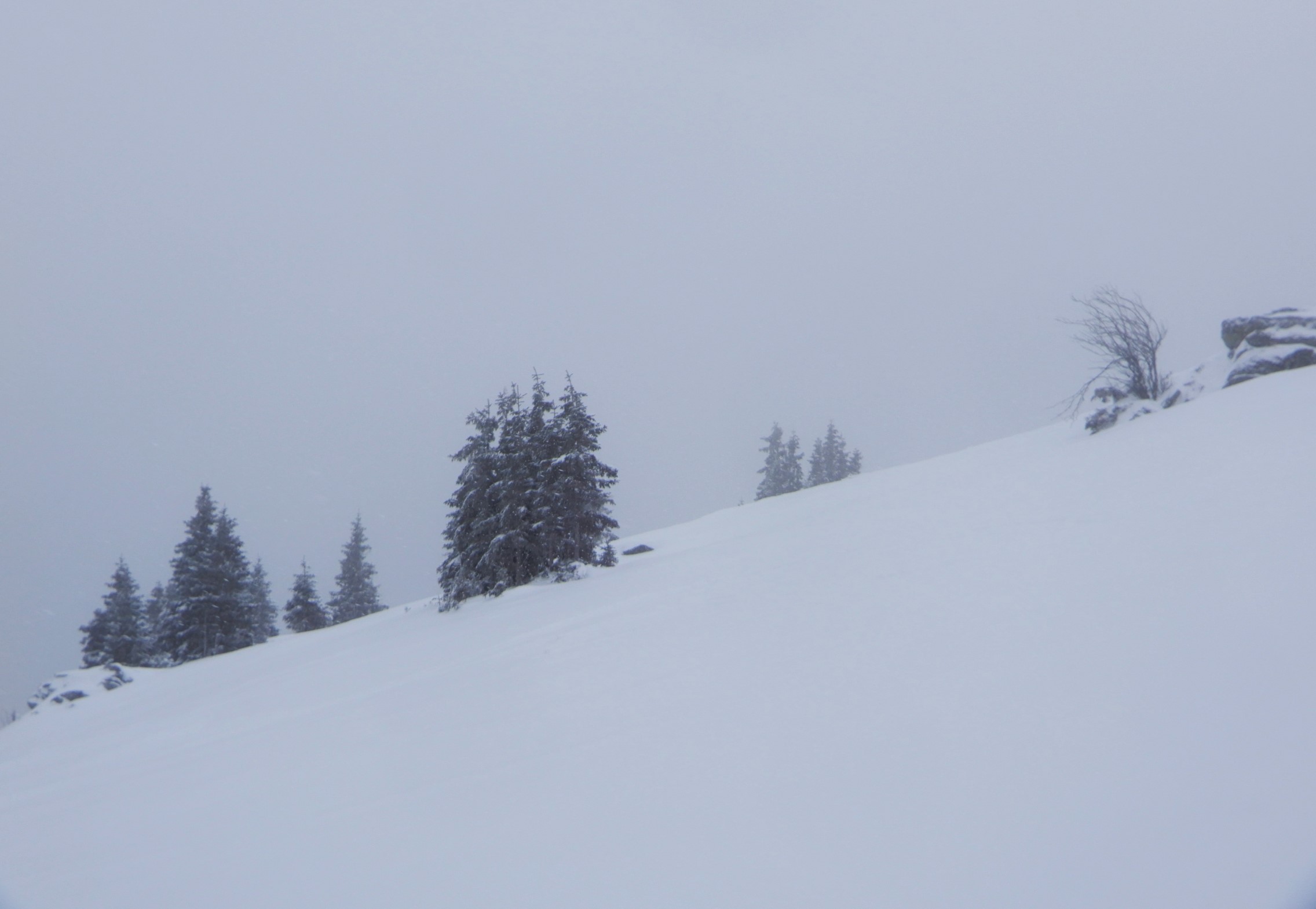 Aufstieg ähnlich wie am 21. Jänner 2023 und viel milder am Start und auch am Gipfel. Abfahrt zuerst über den Rücken und dann durch den Hochwald zur Bärentalhütte.