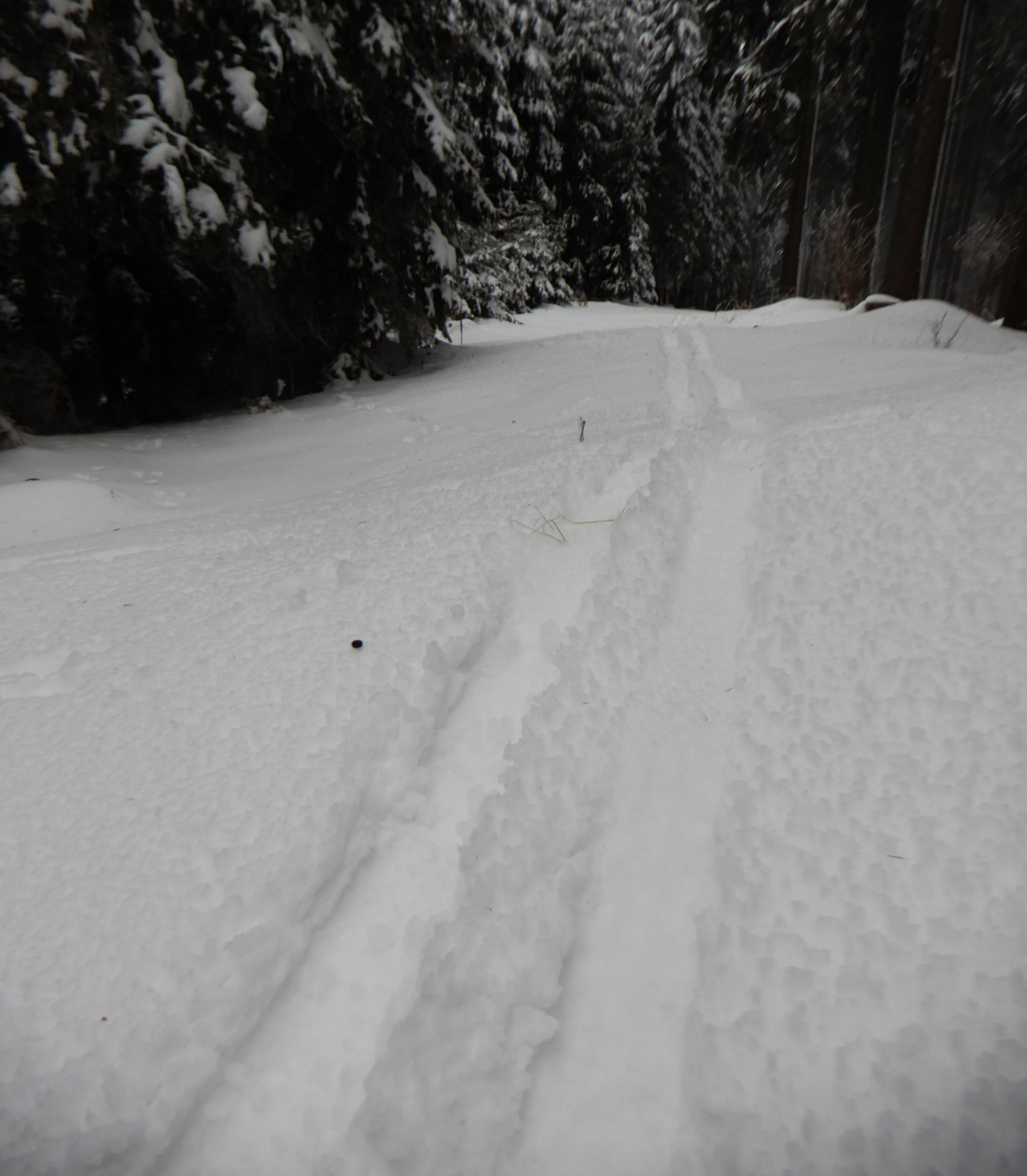 Am Waldrand Pulver, im oberen Bereich Bruchharsch aber großteils Kompakt Schnee.