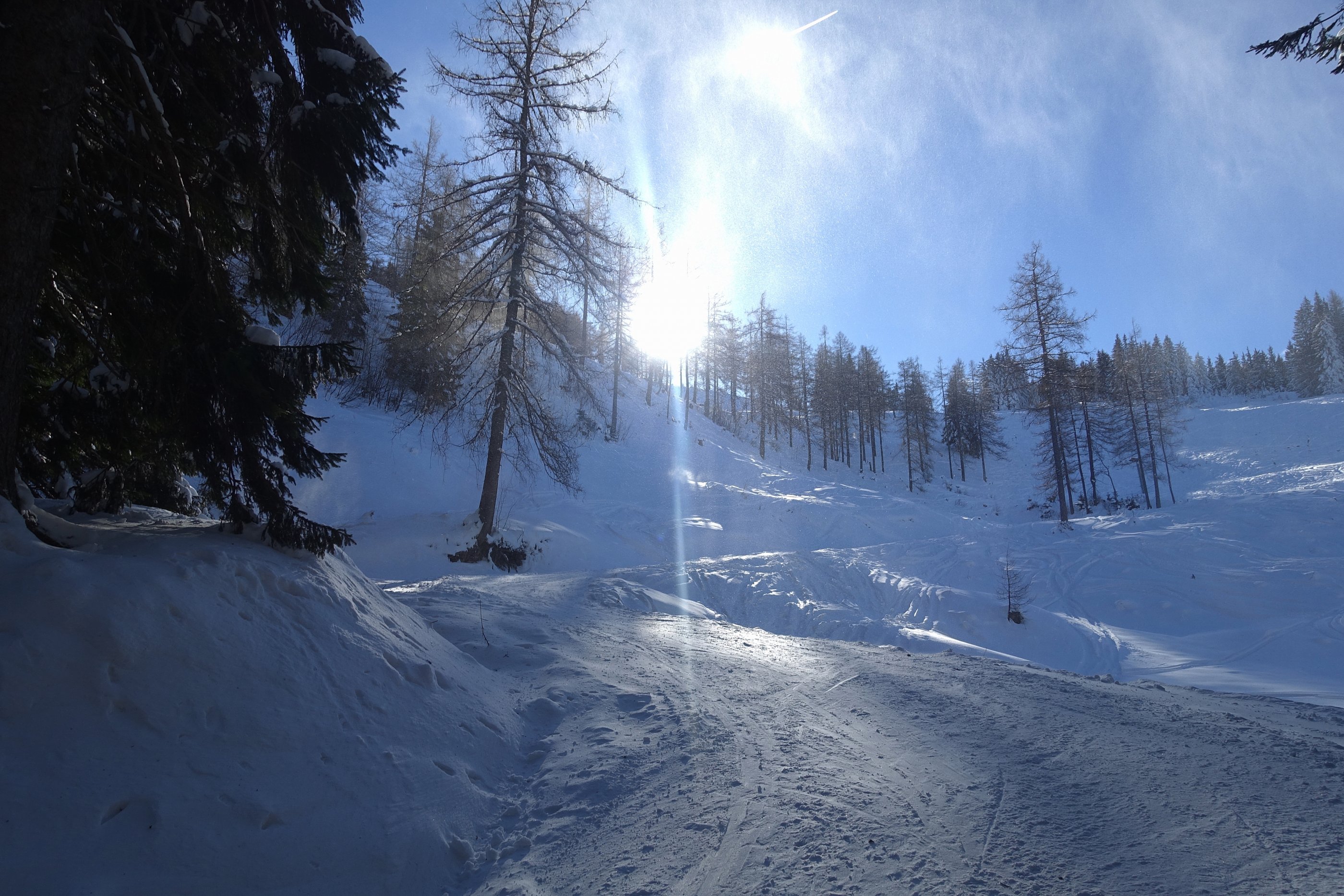 Es ist wieder Ruhe eingekehrt in der Osterhorngruppe, um 11.00 Uhr am Döllererparkplatz max. 10 Autos, keine Parkplatzprobleme wie am WE in Lämmerbach oder am Trattberg (Schrankeneinfahrt nicht mehr möglich) oder Menschenauflauf am Korein; dafür alles zerpflügt und umgeackert bzw. Pistenartig eingefahren. Es scheint noch die Sonne, aber der Wetterumschwung kündigt sich schon an, kurz vor den Lanzenalmen schon heftiger böiger Wind, der zum Gipfel hin immer stärker wird - schlechte Sicht duch Schneetreiben. Abfahrt am besten wo am WE schon alle runter sind bzw. ab den Almen in der Ratrackspur. Es liegt leider noch immer zu wenig Schnee für eine genussvolle und Feindkontaktfreie Abfahrt, auch auf der präparierten Forststraße an einigen Stellen schon Steinkontakte, aber der Nachschub soll ja in dieser Woche kommen.