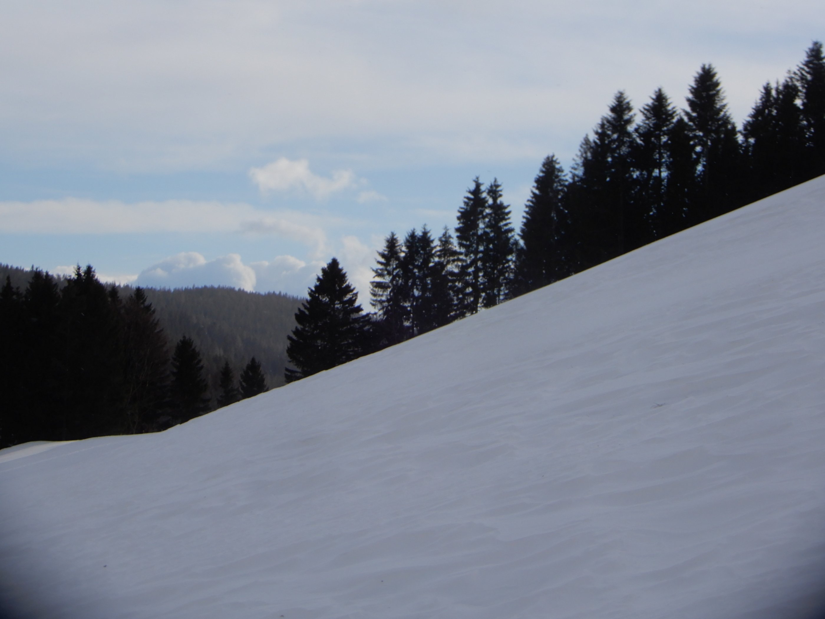Im Tal nass und in höheren Lagen Pulver und großteils aber windgepresst.