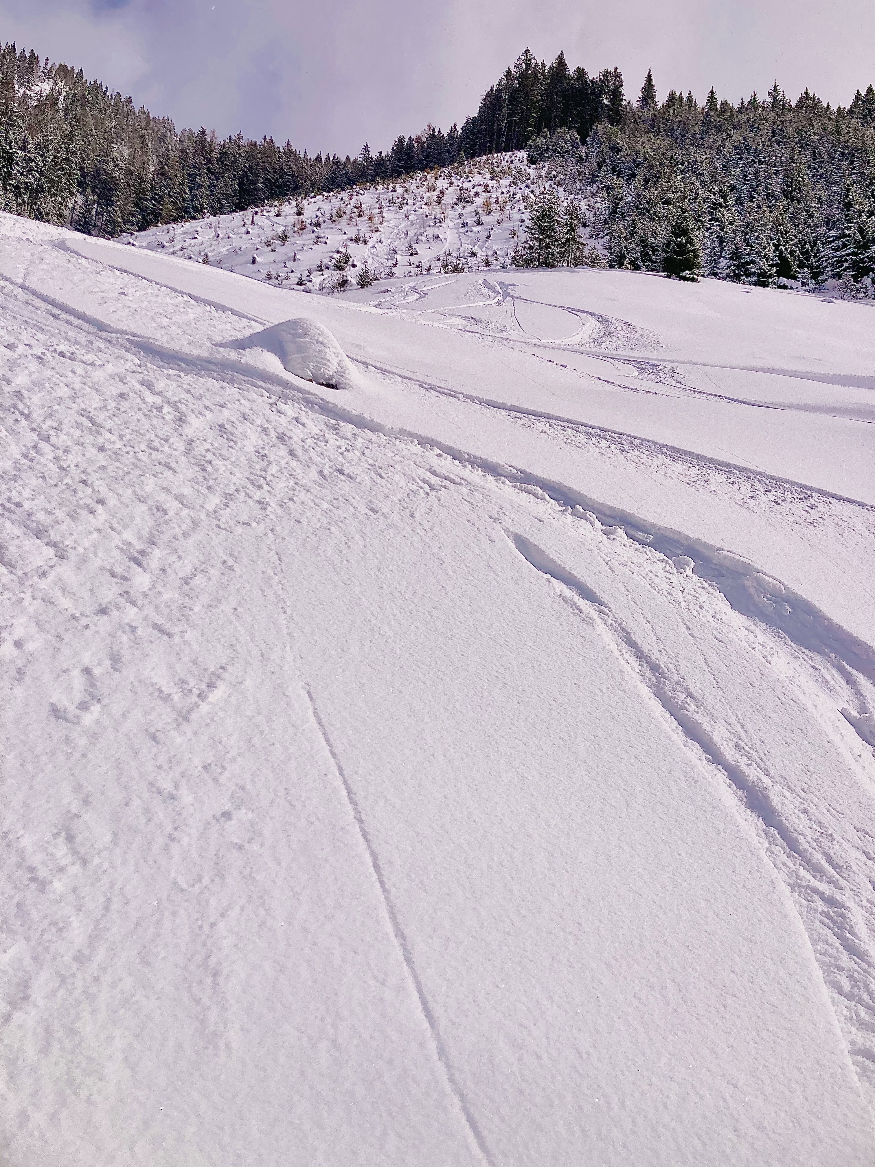 ca. 40cm noch recht lockerer nicht gesetzter Pulverschnee auf fester Altschneeschicht…