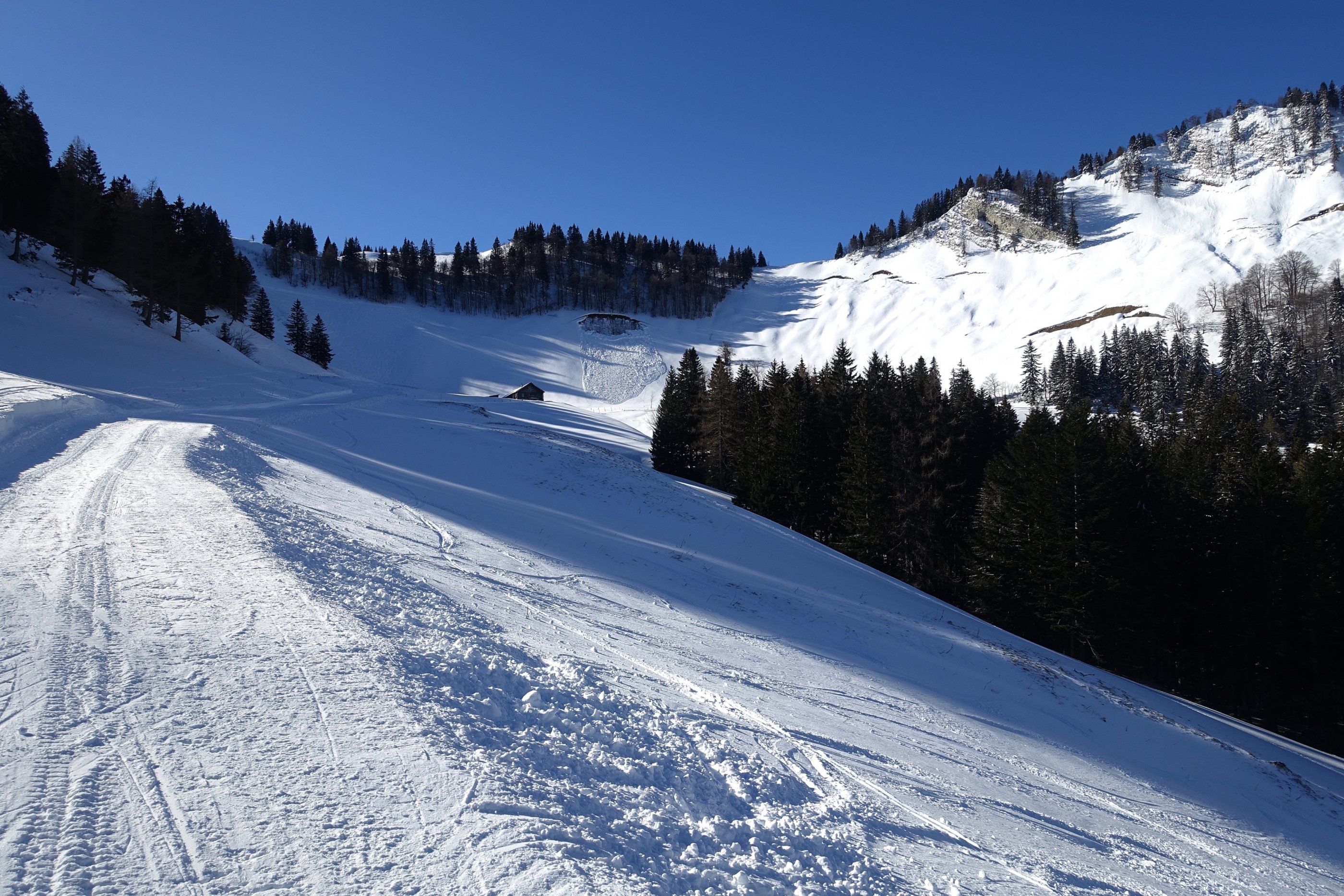 Die Osterhorngruppe hat von dem vielen Neuschnee der letzten Woche nicht soviel abbekommen (diese Ecke zumindest nicht - nur max. 15 - 20 cm). Aufstieg über die Gartenbergseite - wo aus den steilen Grashängen auch schon die Ausläufer einiger kleinerer Gleitschneerutsche bis zur Auftsiegsspur abgegangen sind. Abfahrt über Stubneralm, auch wir waren verwundert, dass die gesamte Forststraße bis zum Zwölferhorn mit einem Pistengerät präpariert wurde. Wenn die steilen Grashänge (z.B. neben des Gleitschneerutsches) gemieden werden sind die Verhältnisse ziemlich stabil - an manchen Stellen schauen aber noch immer kleinere Stauden heraus. Siehe auch die detailierte Beschreibung von Hans Altmann.