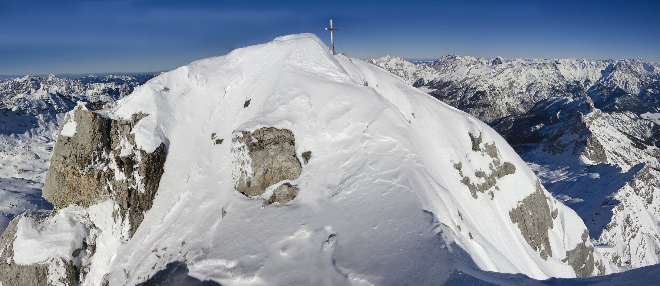 Weit geht die Sicht am Gipfel, die Luft ist kalt und klar, Dankbarkeit und Glück sind groß.