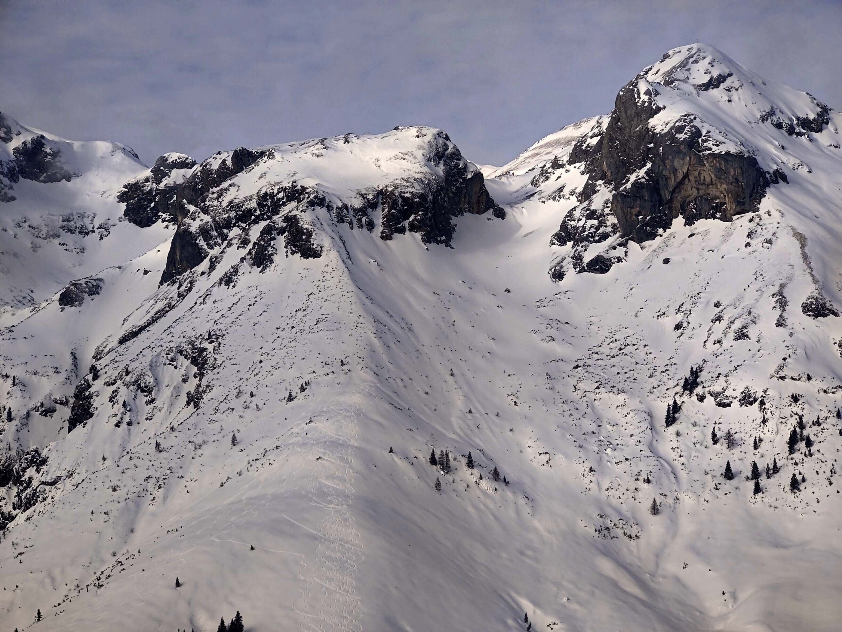 Die Tourengeher an diesem Tag waren brav und sind nur am "sicheren" Rücken ein Stück rauf gegangen. Die Scharte selber wurde bis mindestens 15 Uhr nicht befahren.