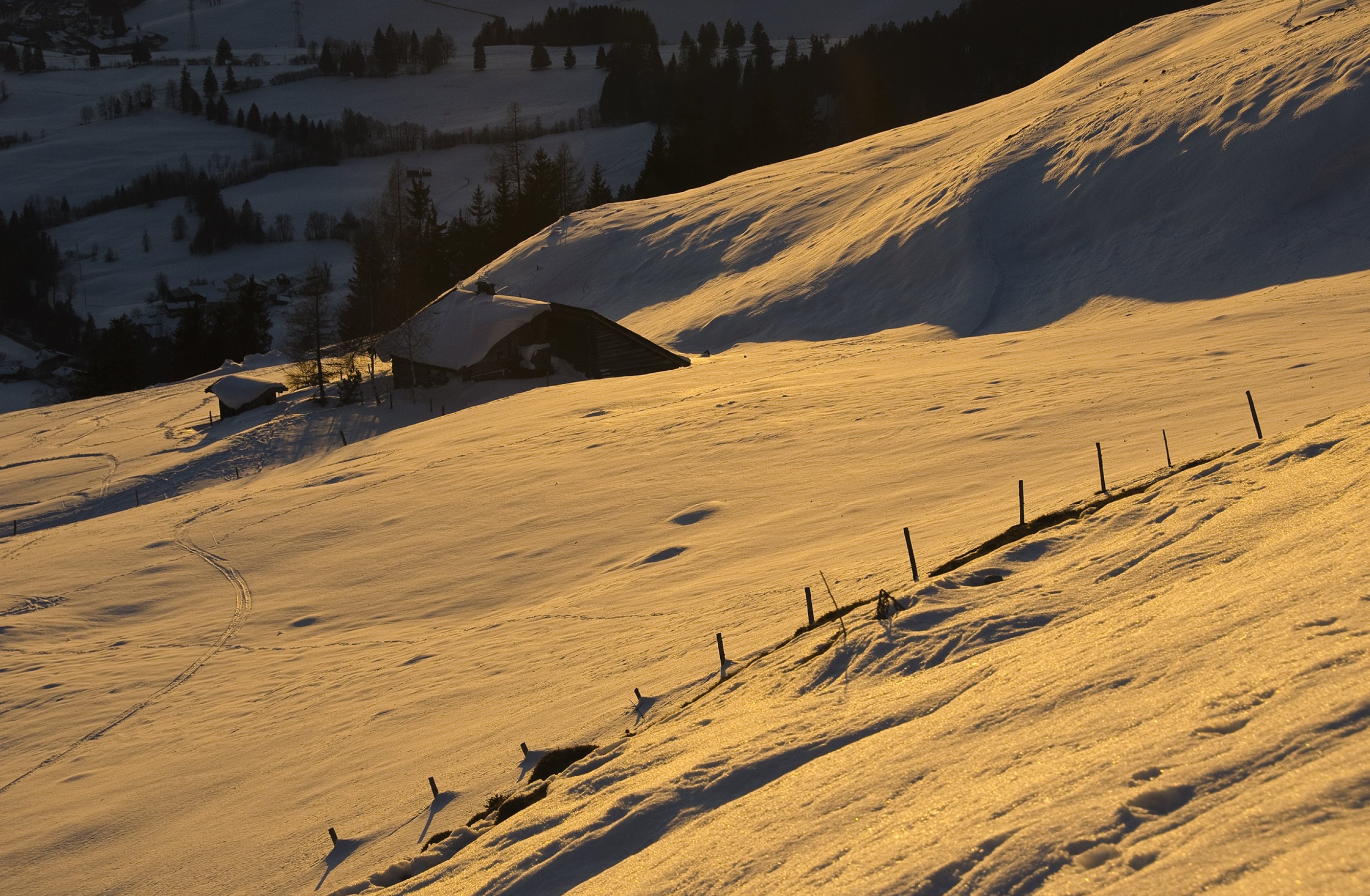 Im Aufstieg ist es frühlingshaft warm, doch die sinkende Sonne verliert ihre Kraft um diese Jahreszeit noch schnell.