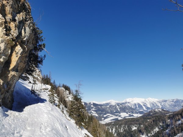 Mit REX 3901 nach Roßleithen u. mit Bus nach Vorderstoder. Aufstieg über den ehem. Hackl Lift. In der Querung durch den Wald noch genug Schnee. Eine breite, von Schneeschuhen zertrampelte Spur bis zum Gipfel. Abfahrt etwas westlichen der Wildalm bis zur Forststraße. Auf dieser dann ins Rottal u. Aufstieg zur Edtbauernalm. Auf der Piste zur Fröstl Alm u. weiter auf der Talabfahrt nach Hinterstoder. Mit dem Bus zum Bahnhof u. mit dem Zug zurück.