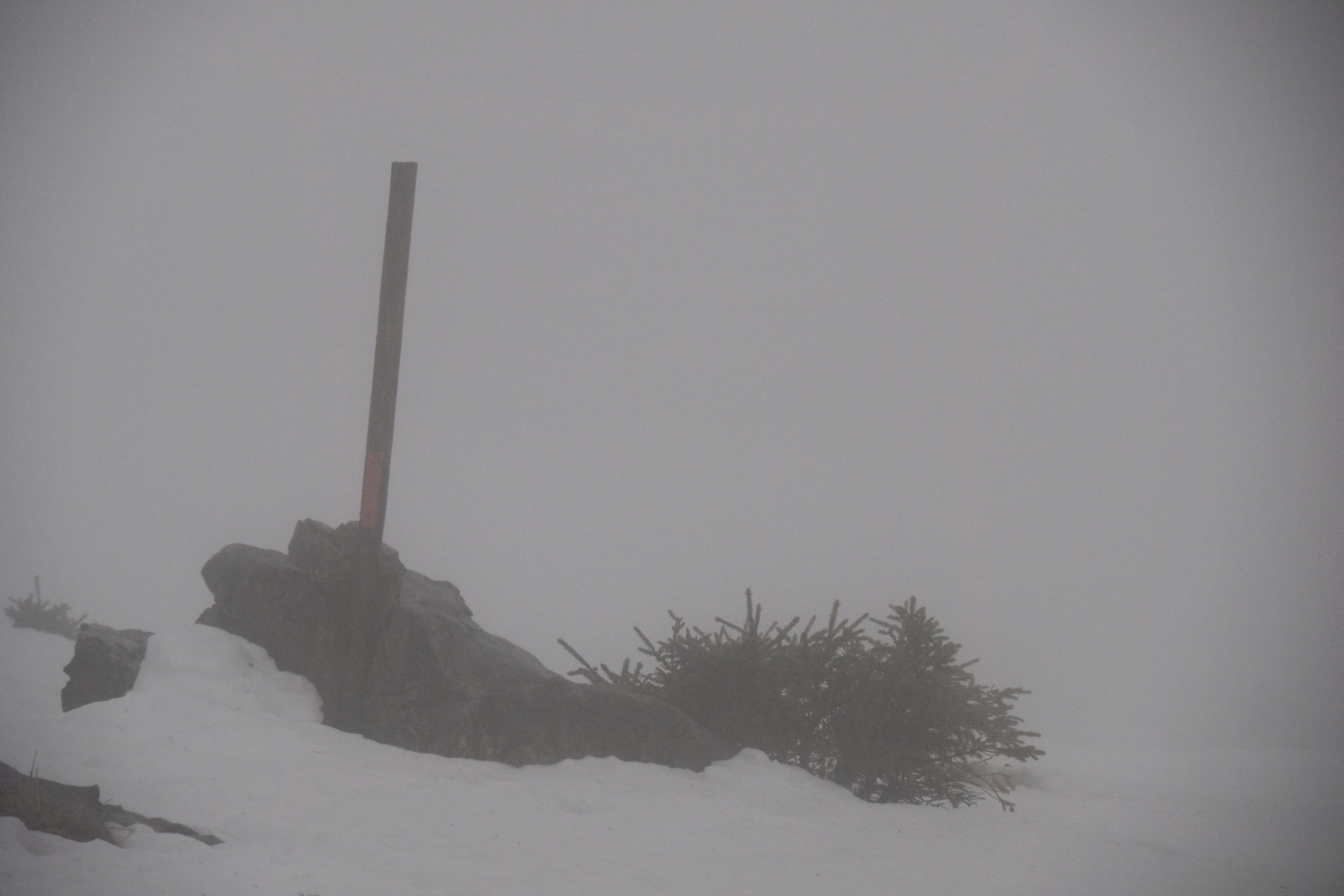 Stark durchfeuchtete Schneedecke. Anstrengende Spurarbeit, und bis auf die ersten 100 Hm mehr oder weniger "unfahrbarer" unterschiedlich tiefer Gatsch. In den abgeblasenen Bereichen dünnt sich die Schneedecke schon ordentlich aus. Nach unten hin grundlos tief. Sehr eingeschränkte Sicht. Insgesamt unlohnend bis grauslich...