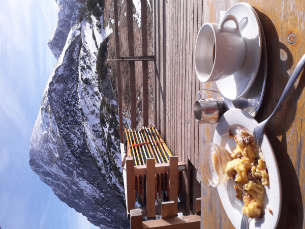 Vom Parkplatz Königsee stiegen wir am rechten Pistenrand bis ca 850hm an dann folgten wir den Hochbahnweg Richtung Königsbachalm. Ab der Piste mussten wir die Ski ca 200hm tragen bis ab 1050hm eine geschlossene Schneedecke das gehen mit Skiern wieder möglich machte. Vorbei an der Königbachalm erfolgte der Aufstieg zur Königstalalm und über Punkt 1650 am Gratrücken vorbei am Schneibsteinhaus zum Stahlhaus. Heute wählten wenig Tourengeher diesen Anstieg. Auf der Stahlhausterrasse war es etwas windig aber an der Hüttenwand angehm warm. Abfahrt erfogte auf der Jennerpiste bis ins Tal.