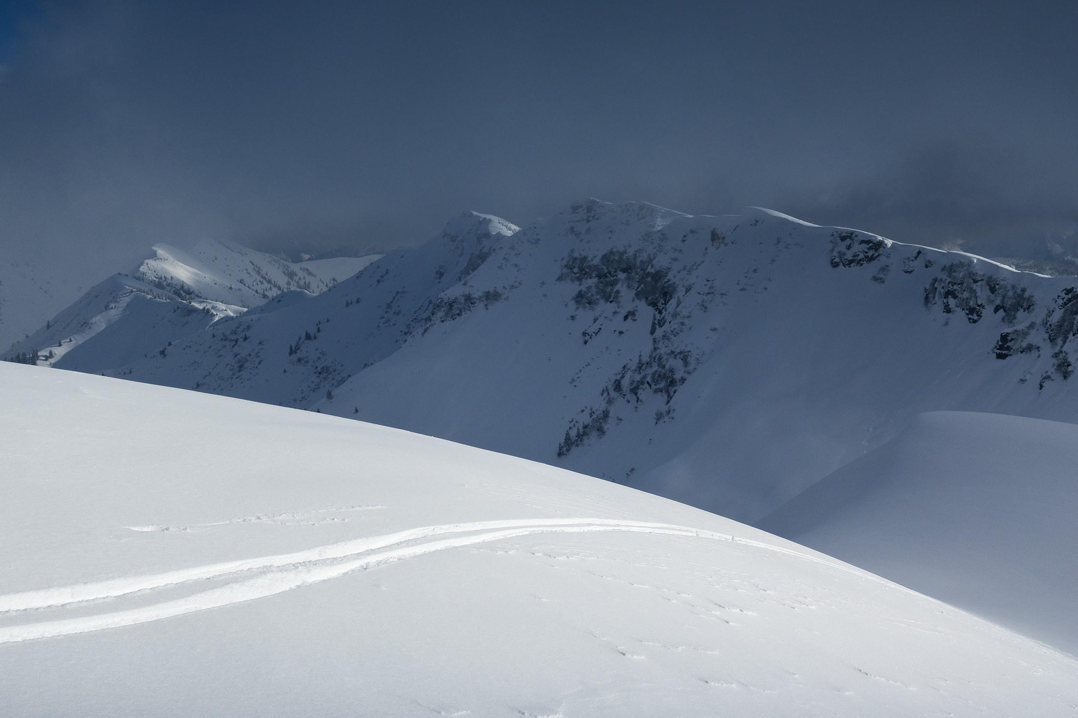 Doch der Lohn der Mühe war groß. Feinster Tiefschnee zur Gerlinger Hochalm und bis zum Gipfel.