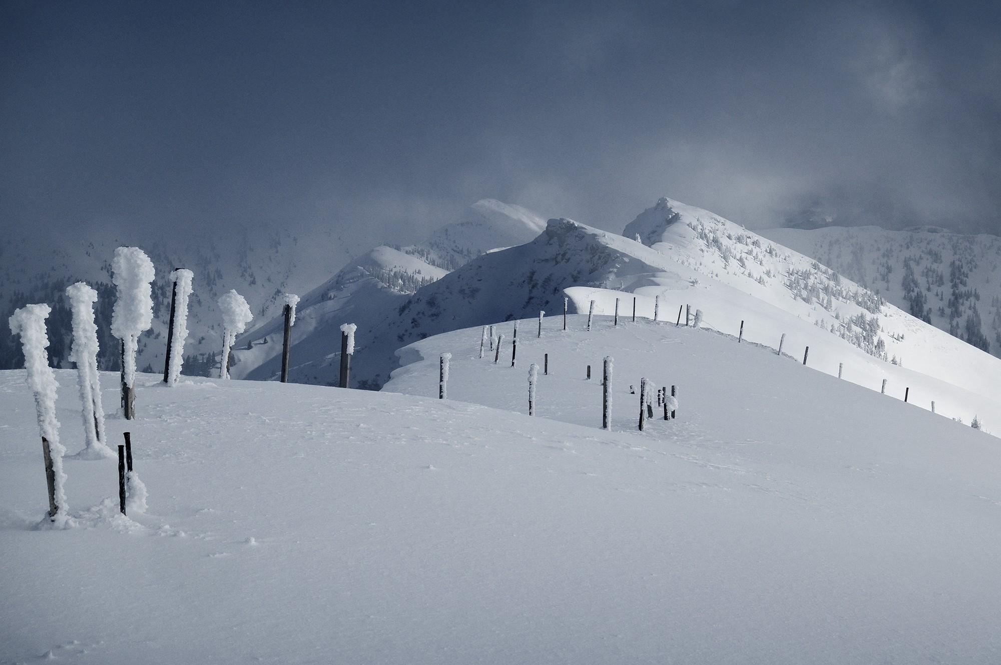 Der Schnee auf der Dickalm ist feucht und schwer, es hat ziemlich gestollt beim Spuren!
