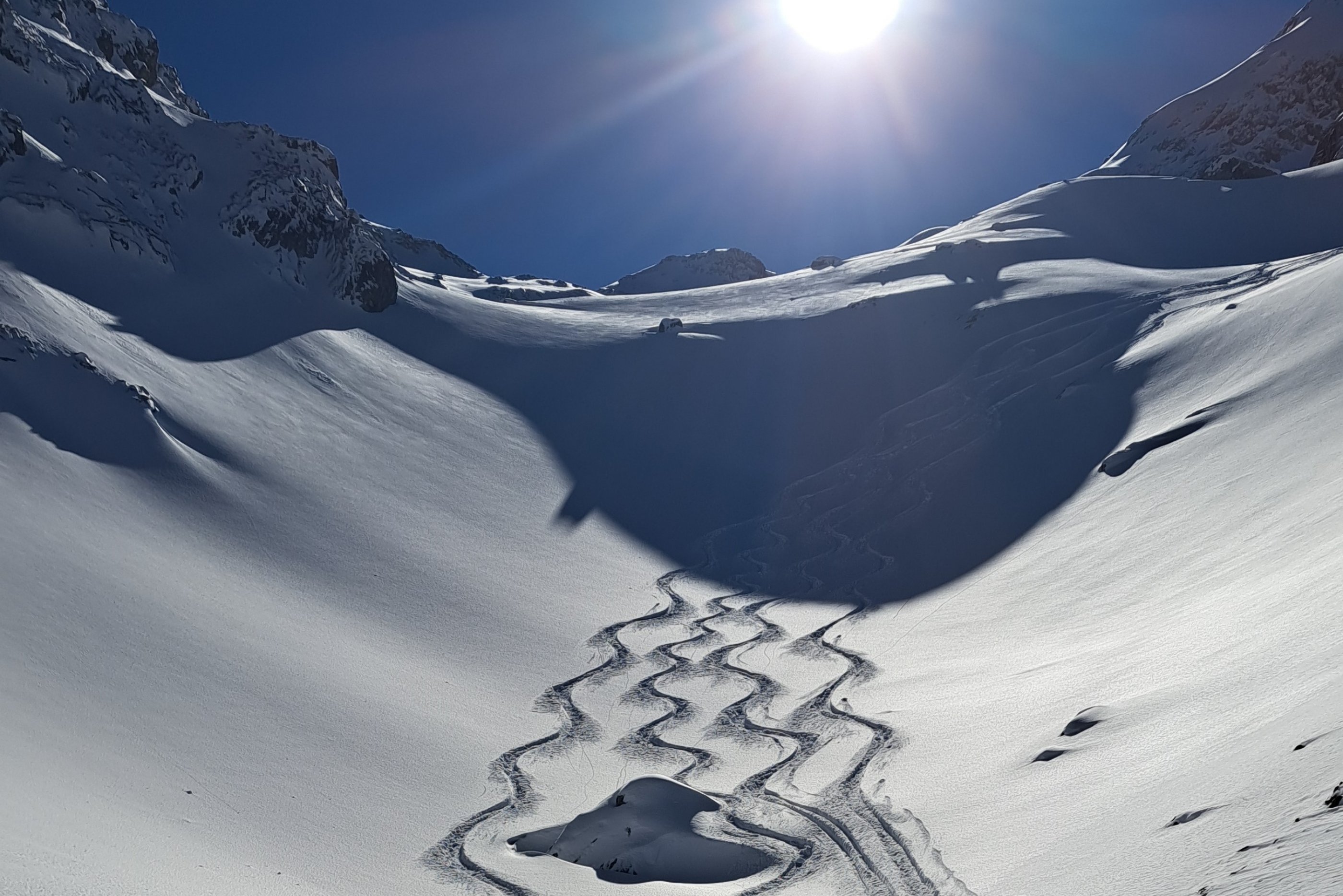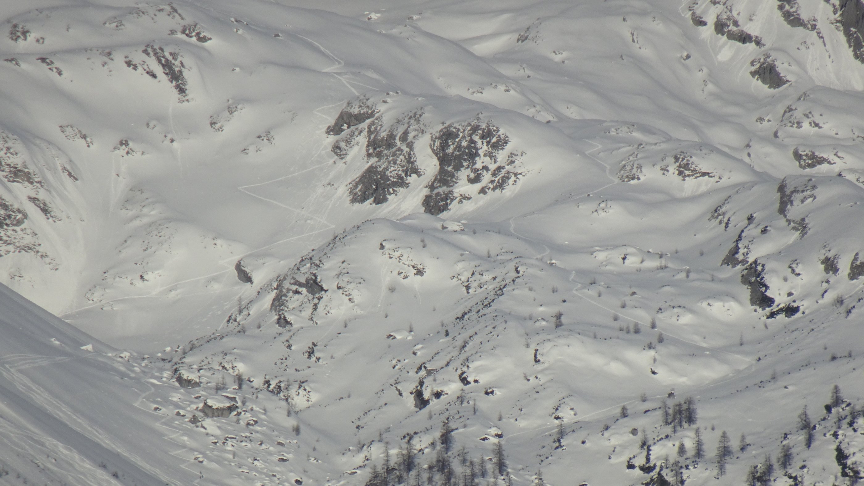 Pulferschnee von oben bis unten, das wird sich aber mit der Erwärmung rasch ändern. Der letzte Schnee muss mit wenig Wind gefallen sein.
