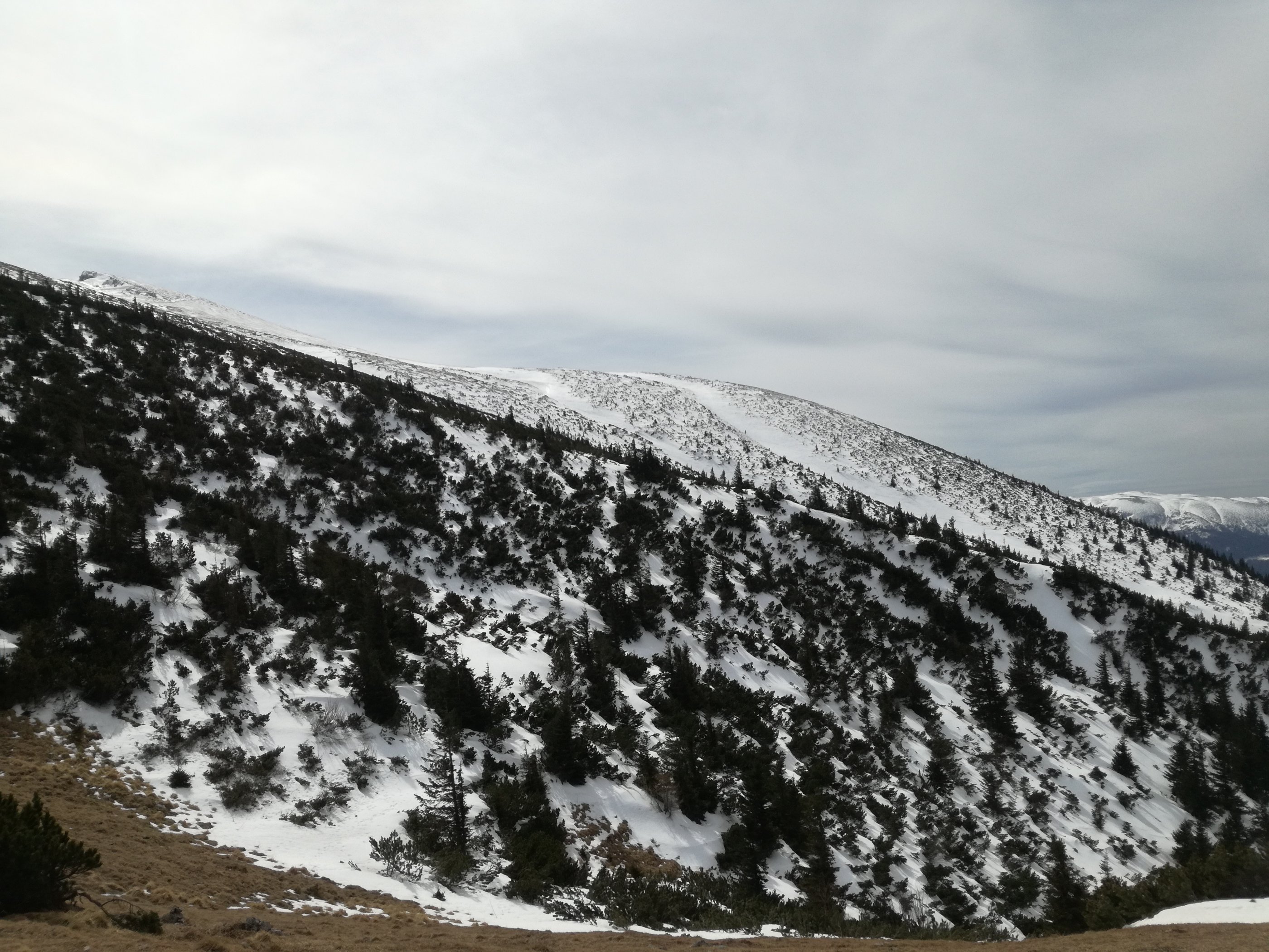 Ehem. Piste praktisch schneefrei, aber Sesselbahn zur Aufstiegsverkürzung wäre in Betrieb. Fadensteig ebenfalls schneefrei, außer bei den Querungen im oberen Bereich - Steigeisen hier sehr empfehlenswert. Am Plateau gleichfalls alles ziemlich ausgeapert, aber Hoyosgraben bis fast ganz oben schneebedeckt und dem Vernehmen nach auch der Wurzengraben (mit Unterbrechung) OK. Abfahrt durch Hoyosgraben erfordert zuerst ca. 200 hm Abstieg zu Fuß, dann aber gar nicht so schlecht. Fadenweg mit Ausnahme der üblichen aperen Stellen noch fahrbar. Edelweißhütte wie üblich offen und top bewirschaftet, Liftstüberl ebenfalls geöffnet.