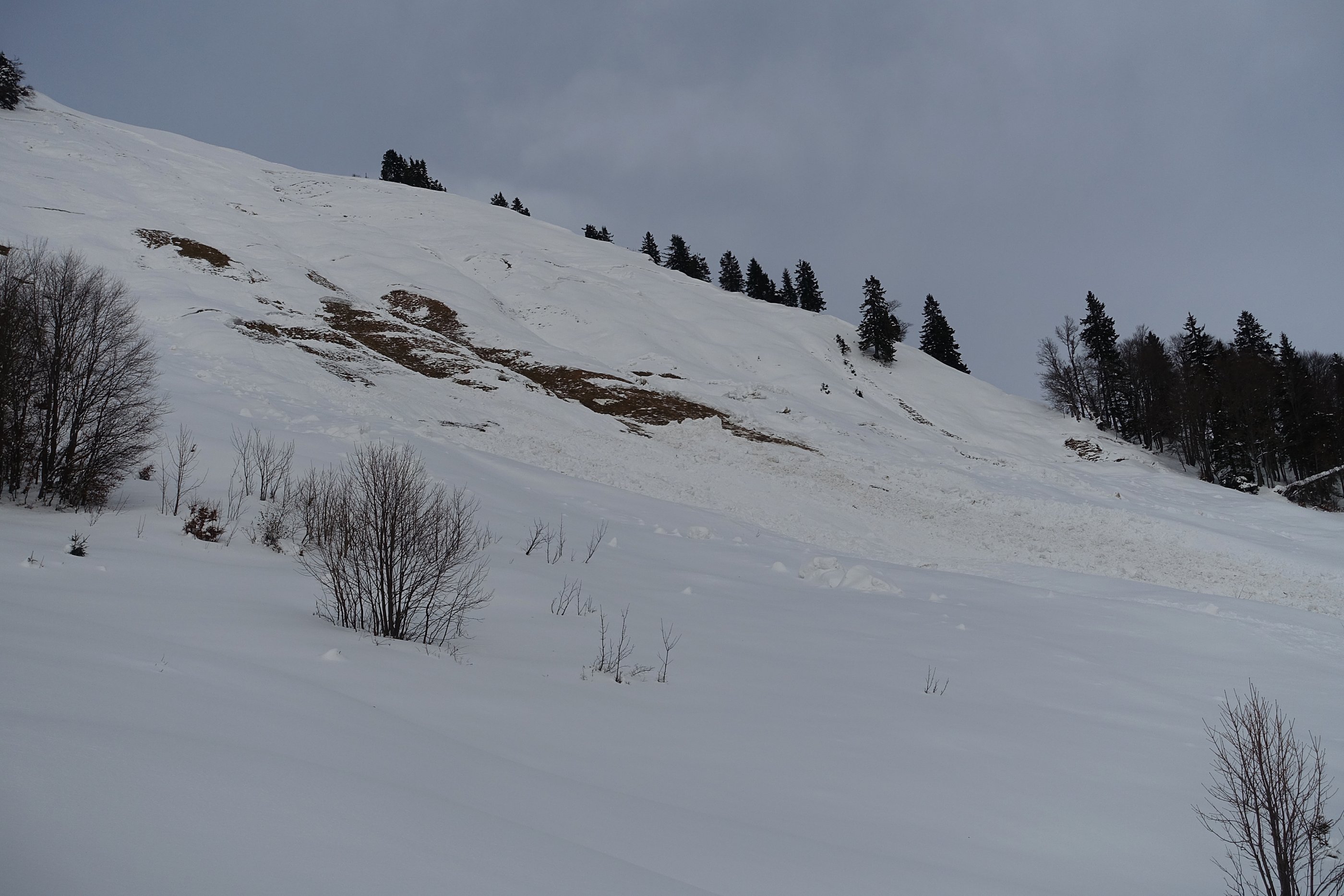 Die Schneedecke hat sich seit Samstag schon gut gesetzt - in diesem Gelände keine Anzeichen vin Lawinenaktivitäten (außer Schafberg -siehe Foto)