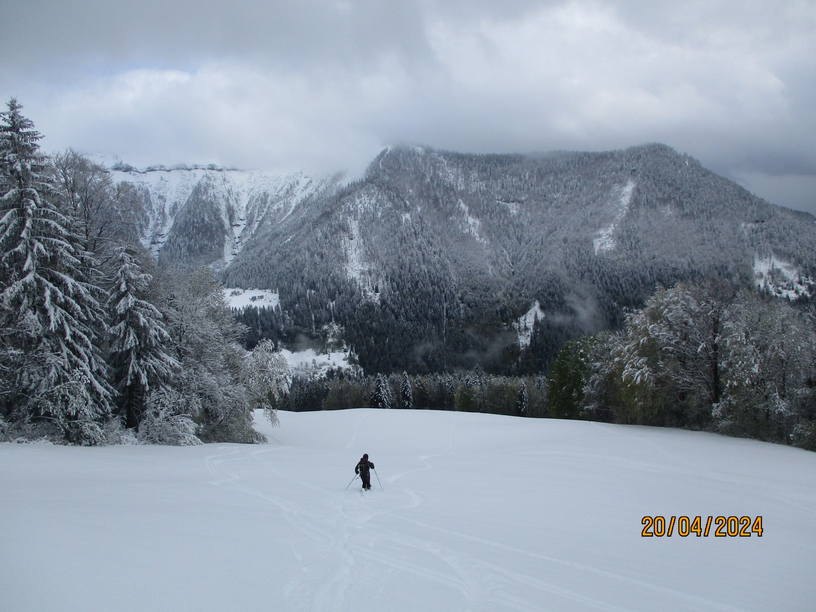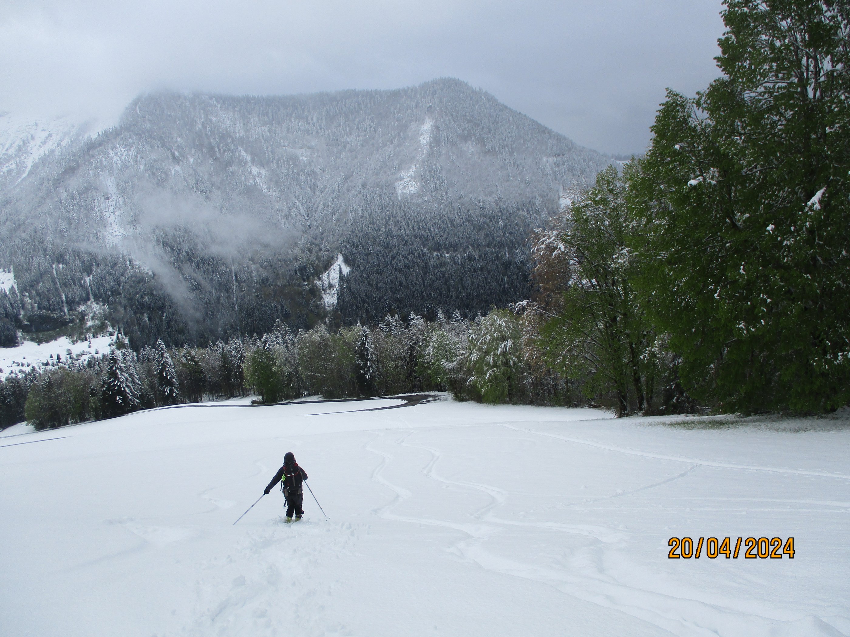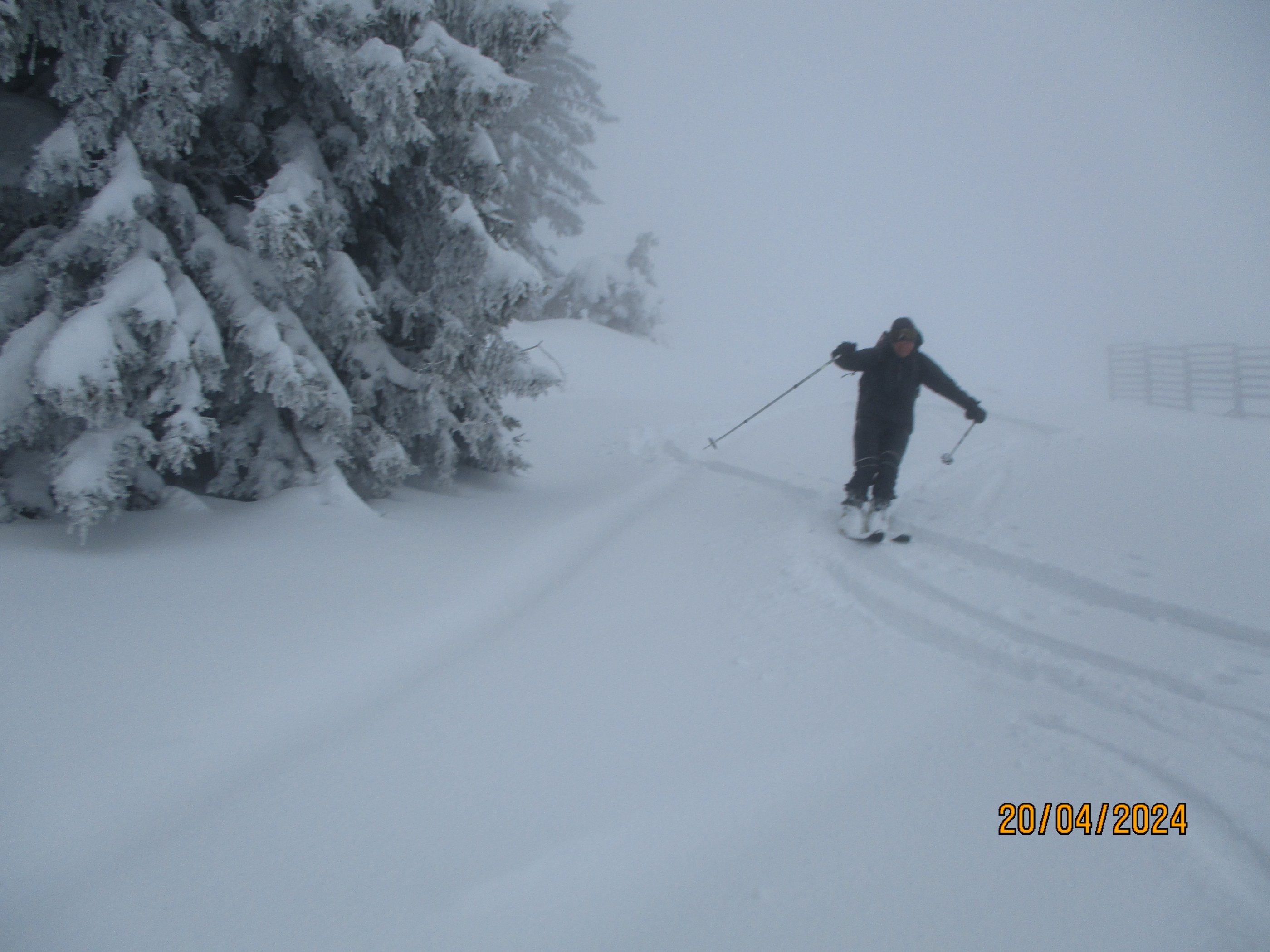 Man kann es kaum glauben , in der Ortschaft Gaissau noch grün, beim Aufstieg zum Wieserhörndl tiefwinterliche Verhältnisse. Das Wetter heute ein bunter Mix aus Graupel und leichten Schneeschauern, Nebel und kurzen Aufhellungen. Gestartet sind wir nach der Schirla Stubn. Vom Gipfel bis zu Spielbergalmen schlechte Sicht sind im Bereich der Aufstiegsspur abgefahren, bei der weiteren Abfahrt bessere Sicht dafür ist der Schnee feuchter( schlechter) gewurden Die Tour wird nur kurze Zeit möglich sein, sobald die Sonne reinkommt werden die unteren Wiesen schnell ausapern bzw braucht man dann für den nassen, schweren Schnee sehr kräftige Oberschenkel.