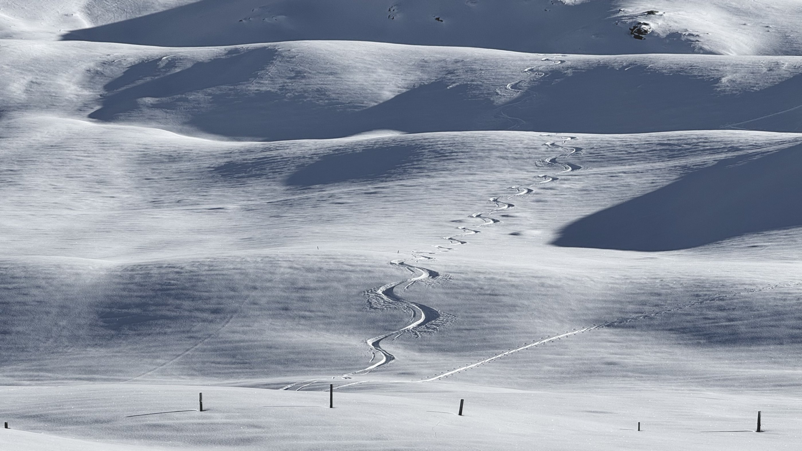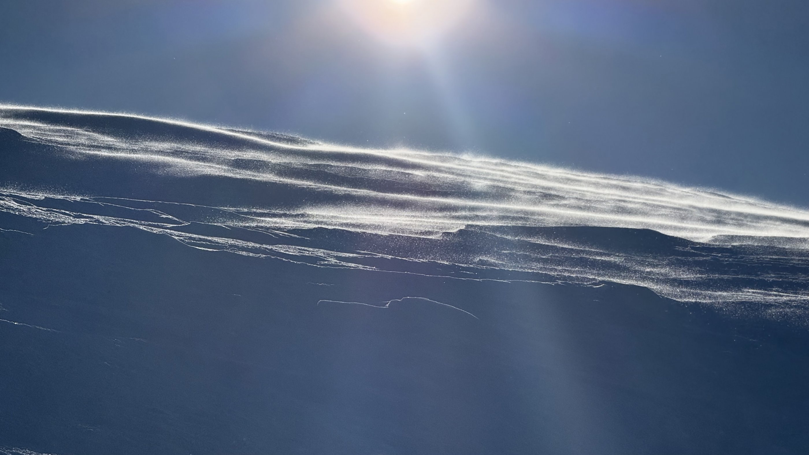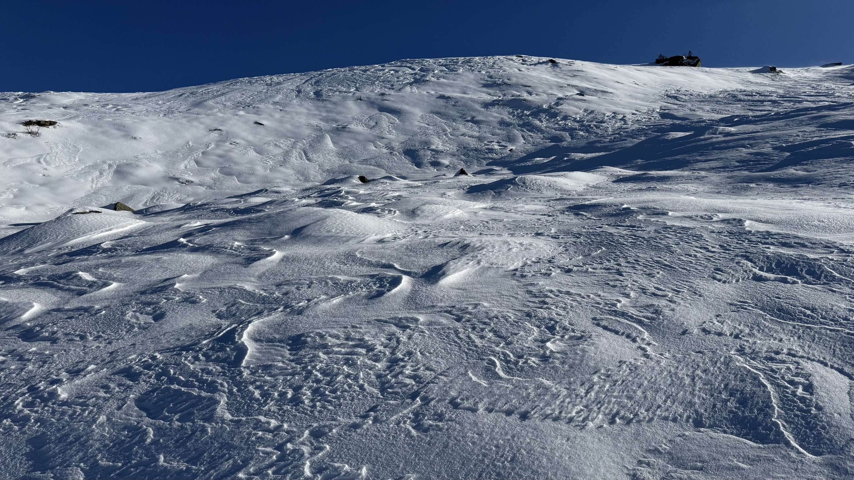 Oberhalb der Waldgrenze ist der Schnee vom Wind komplett "hin". Jeder Schwung findet auf mindestens 5 Schneearten statt und muss genauestens berechnet werden.