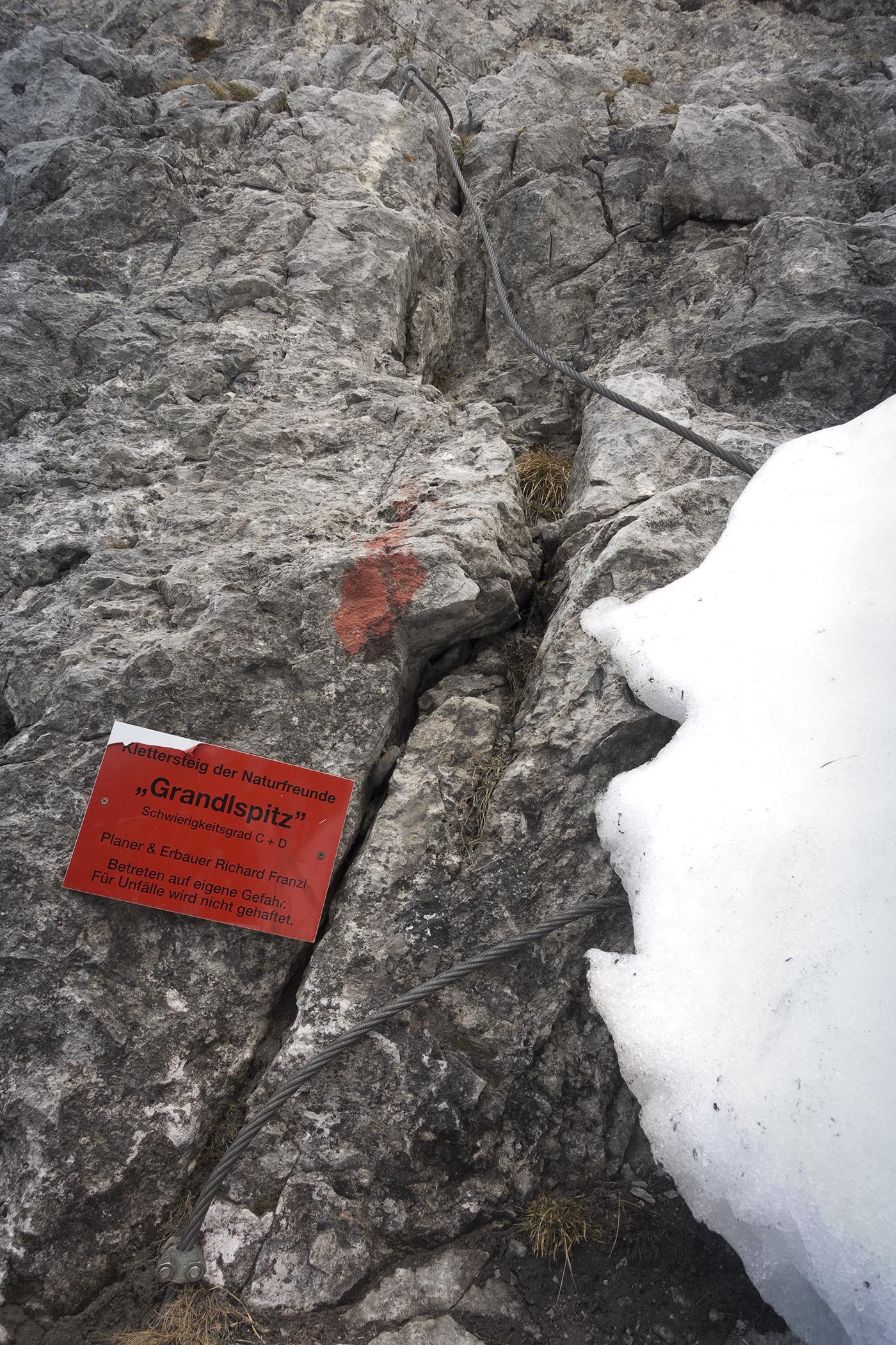 Der Klettersteig hat den Winter gut überstanden, Seil und Verankerungen sind solide.