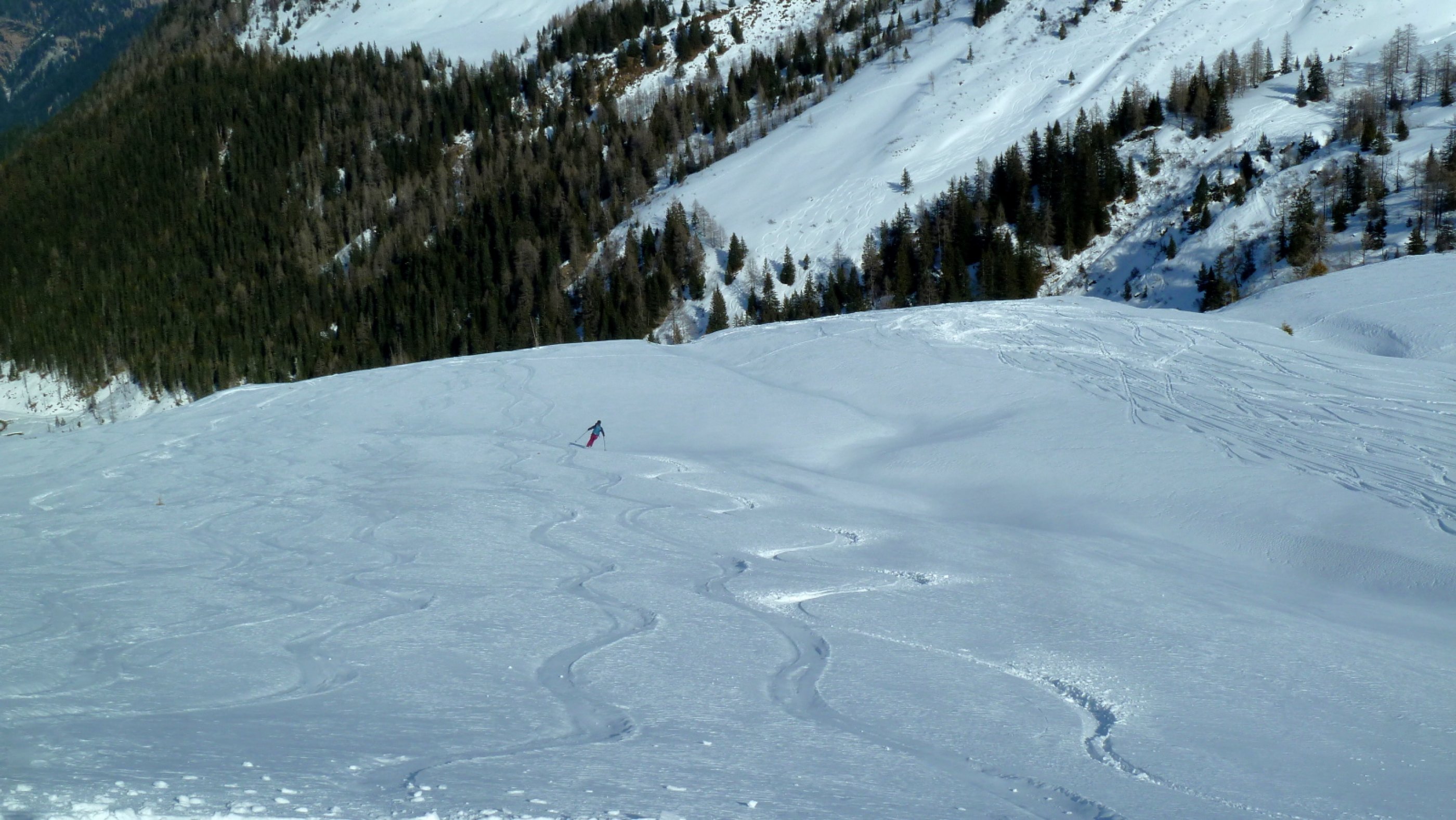 Überraschend unverspurtes Abfahrtsgelände