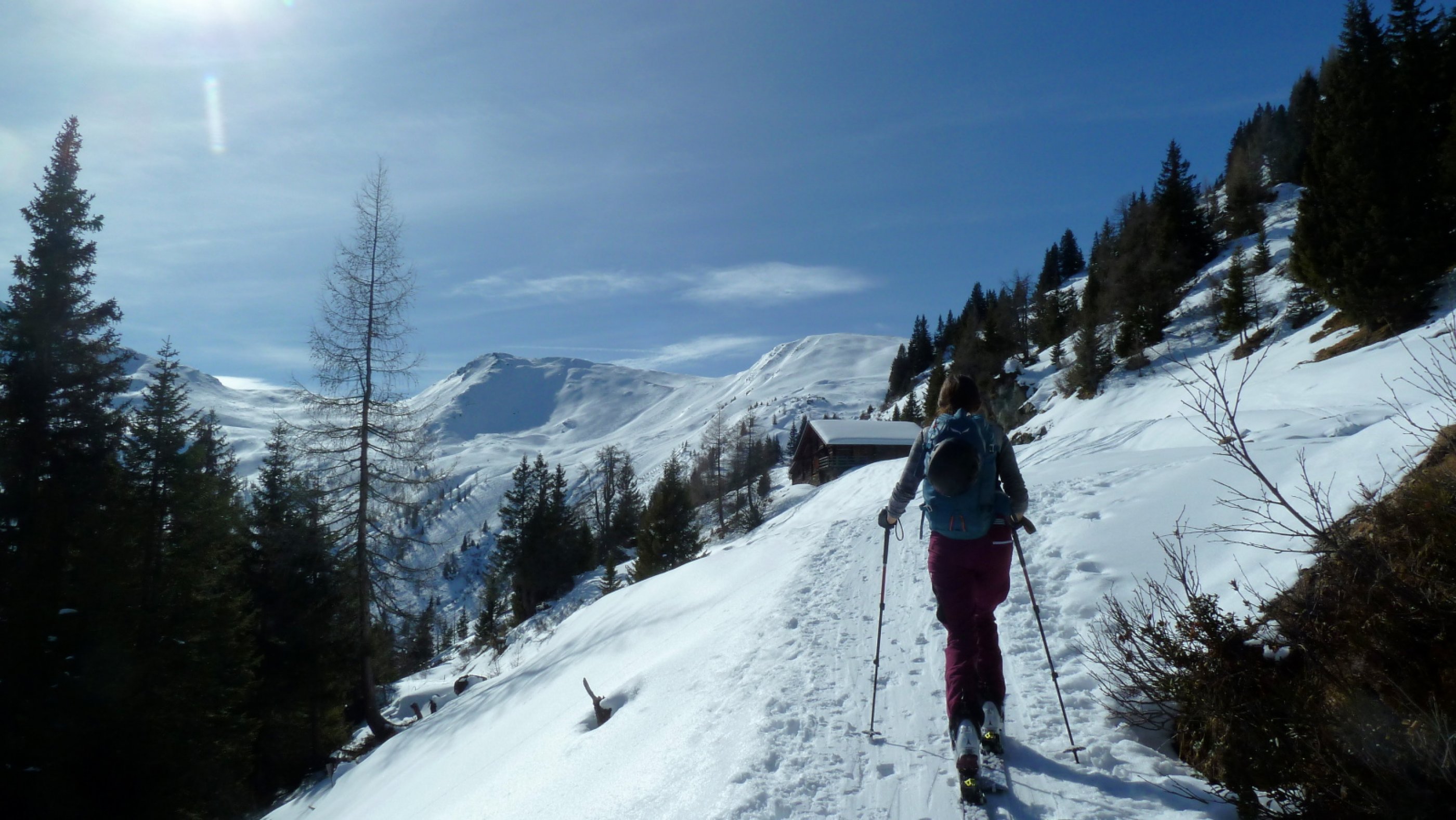 Die Forststraße am Tofernbach ist noch recht gut fahrbar, wird in den kommenden Frühlingstagen aber leiden. Ab der Harbachalm ist die Schneelage im Aufstieg ebenfalls gut, im Wald warten einige sehr kurze apere Stellen, wo Abschnallen nicht lohnt.