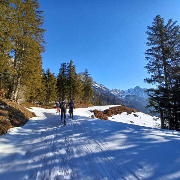 08:05 Uhr: Nach einer kurzen Tragepassage von 5 Minuten konnten wir die Ski anschnallen.