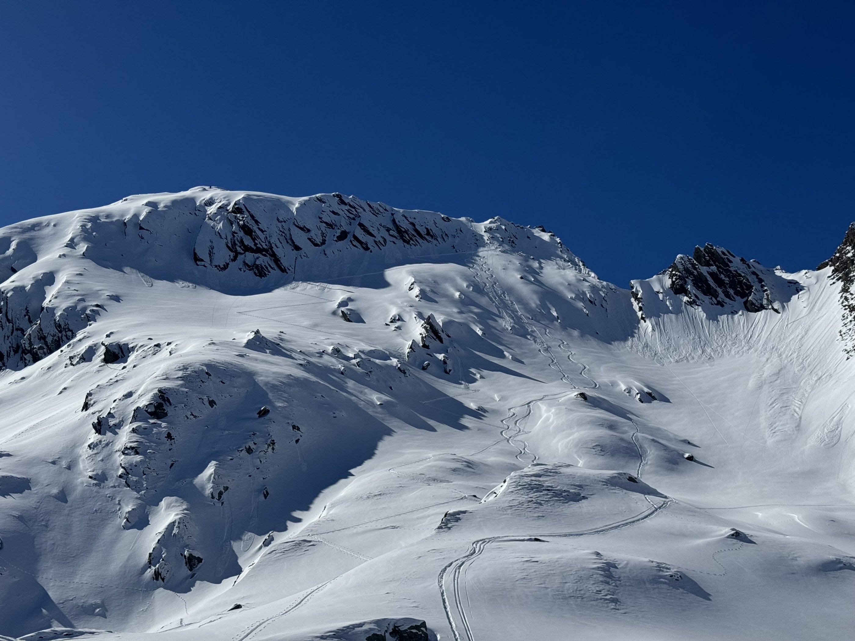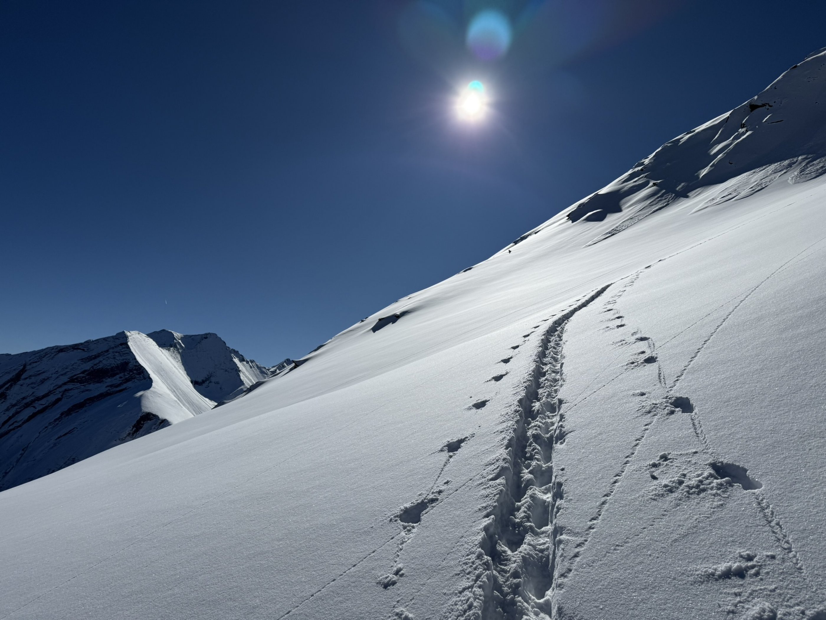 ca. 30 cm Pulver im Nordsektor. Schneerutsche aus extremen Steilgelände. Teilweise eingeschneiter Triebschnee welcher schwer zu erkennen ist.