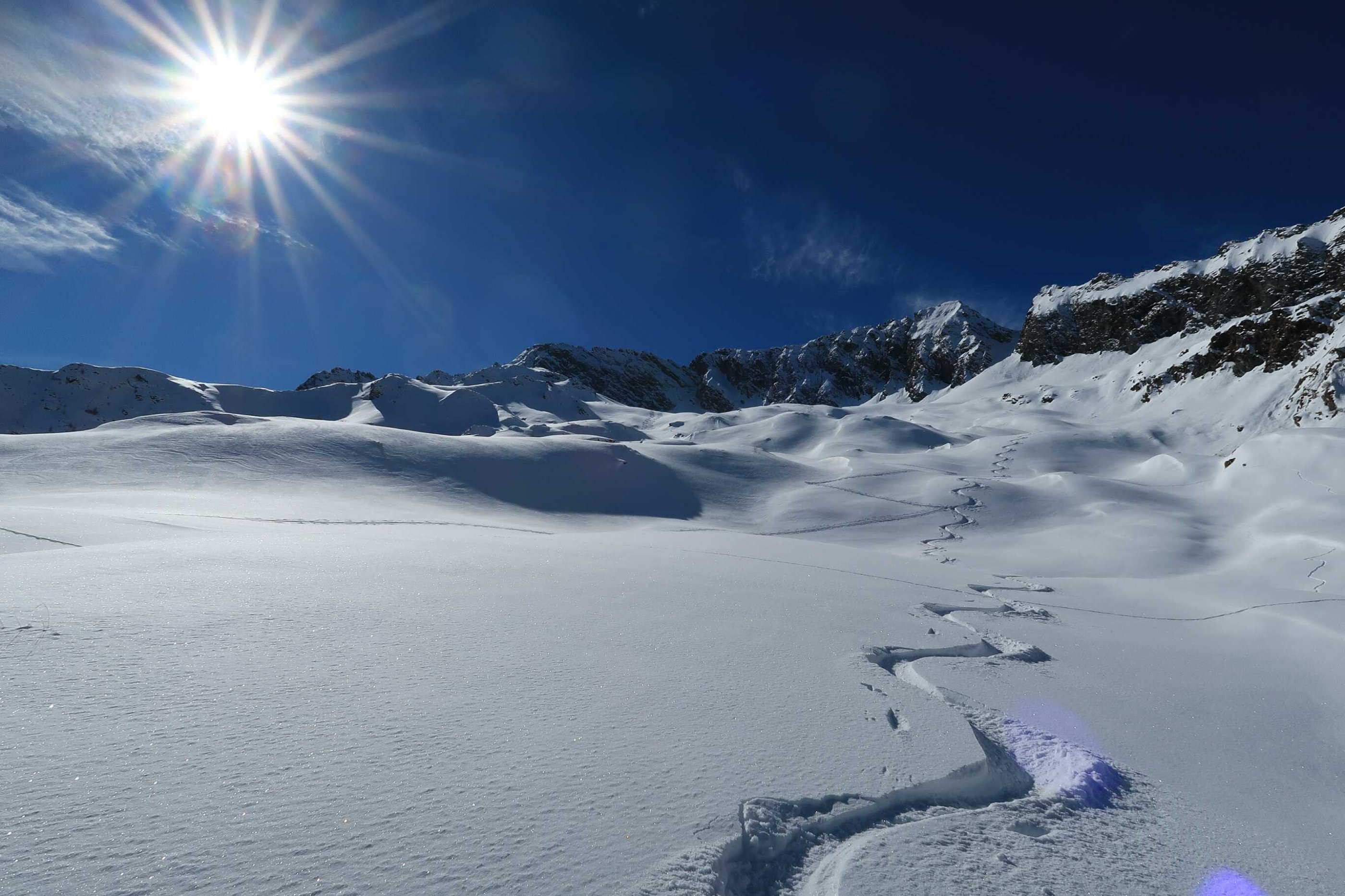 Lawinenbeobachtungen: Die gestrige Aufstiegsspur war im oberen Teil stellenweise zugeweht, der Triebschnee rutscht leicht ab. Kl. oberflächliches Schneebrett an einer steilen Geländekante unterhalb des Schiederhörndls (ostseitig). Ansonsten keine aktuellen Beobachtungen.