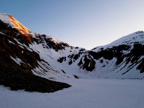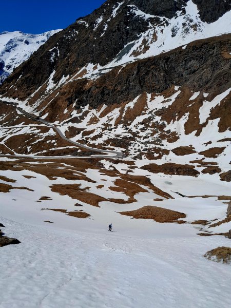 Wir starten von der Glocknerstrasse übers Nassfeld zum Kapuziner. Zuerst probieren wir den Süd-Ostgrat. Zu steil, zu aper, zu bröselig. Direkter Anstieg über die Südflanke geht dann gut zu stapfen. Nach kurzer Abfahrt Wiederanstieg zum Schartenkopf. Neuerliche Abfahrt in den Kessel zum Pfandlschartensee. Nochmals anfellen für den Anstieg in die südliche Pfandlscharte. Von hier im Super Firn zurück zum Auto