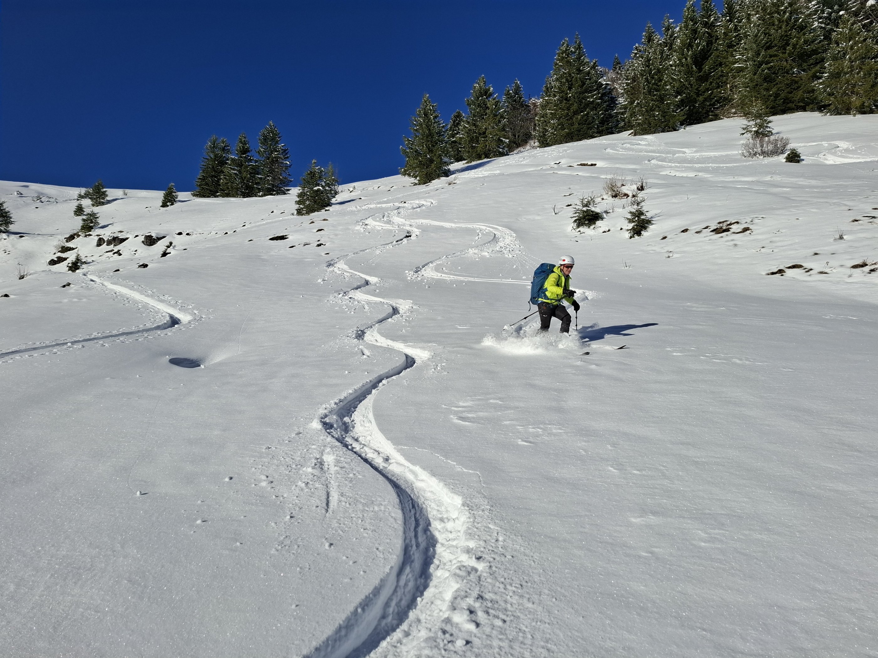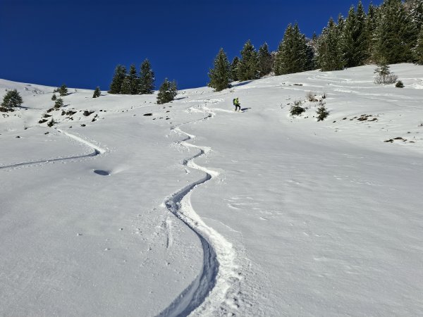 Schattseitig Pulver, sonnseitig zur Braunauer Hütte schon etwas feucht morgen vermutlich Bruchharsch. Gleitschneeaktivität am Faistenauer Schafberg und am Gartenberg. Alle Forststraßen gut zur Fahren ohne Steinkontakt. Im Gelände liegt der lockere Pulver ohne Unterlage am Boden. Bei der heutigen guten Sicht und vorrauschauender Fahrweise kein Problem.