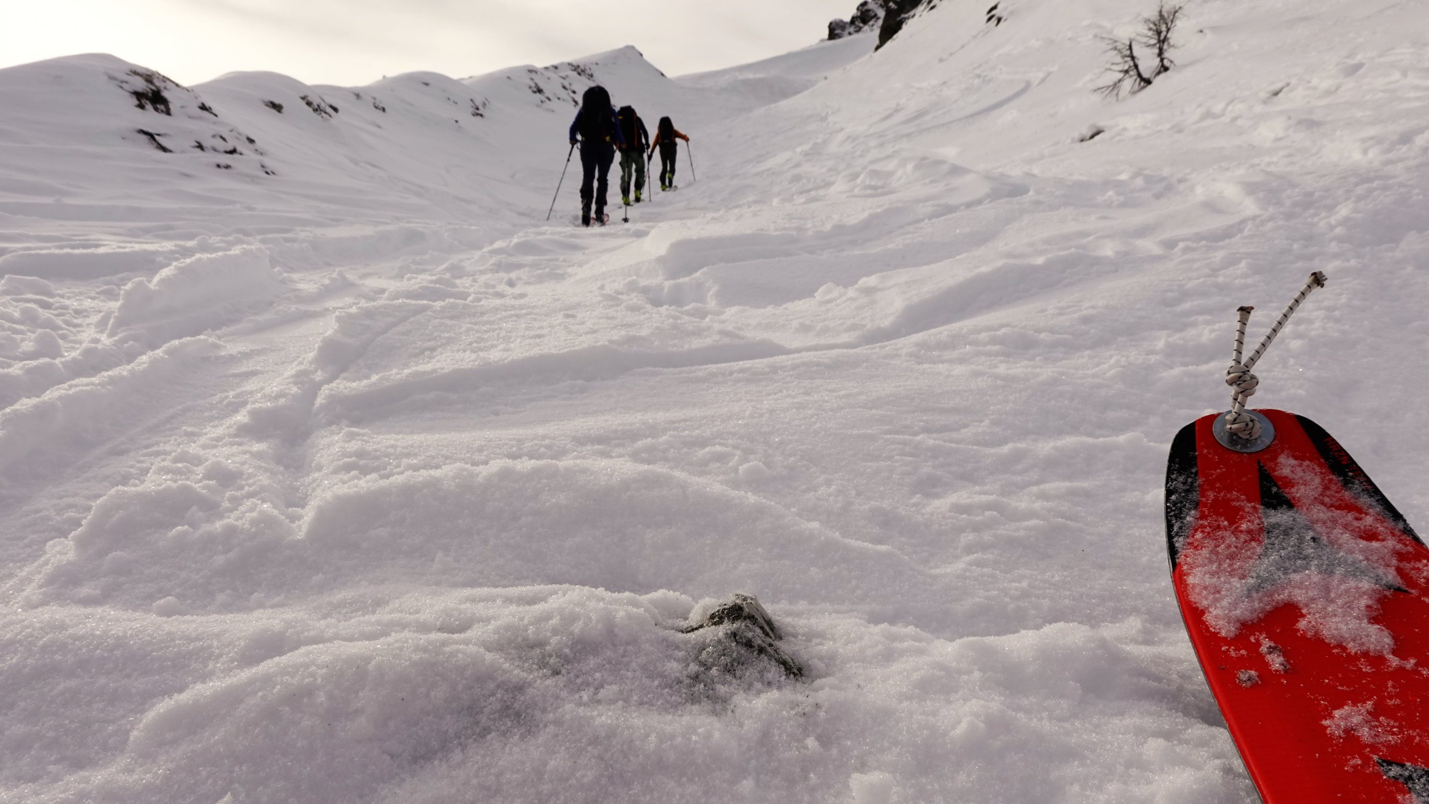 Beim Weggehen ca. 40cm Schnee, der aber mit der Höhe nicht ansteigt.
