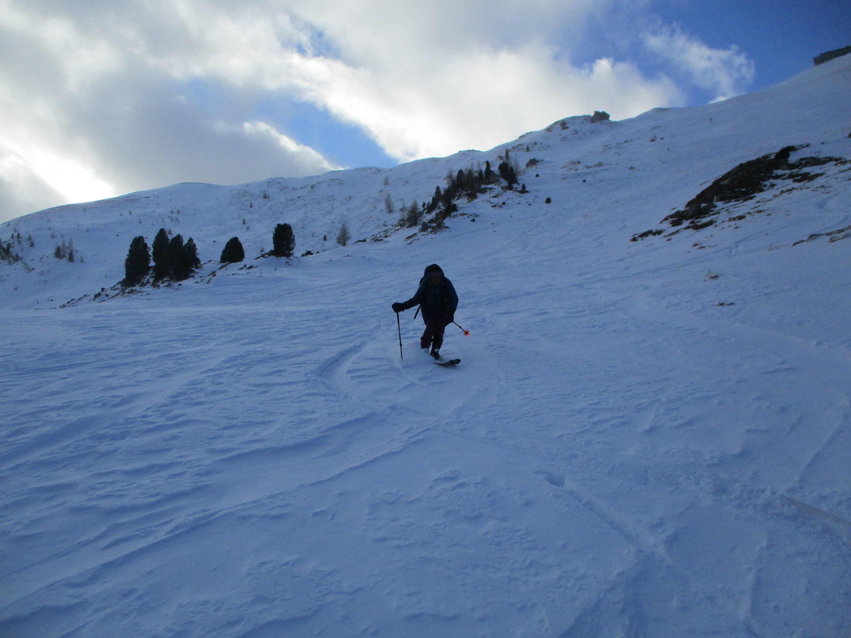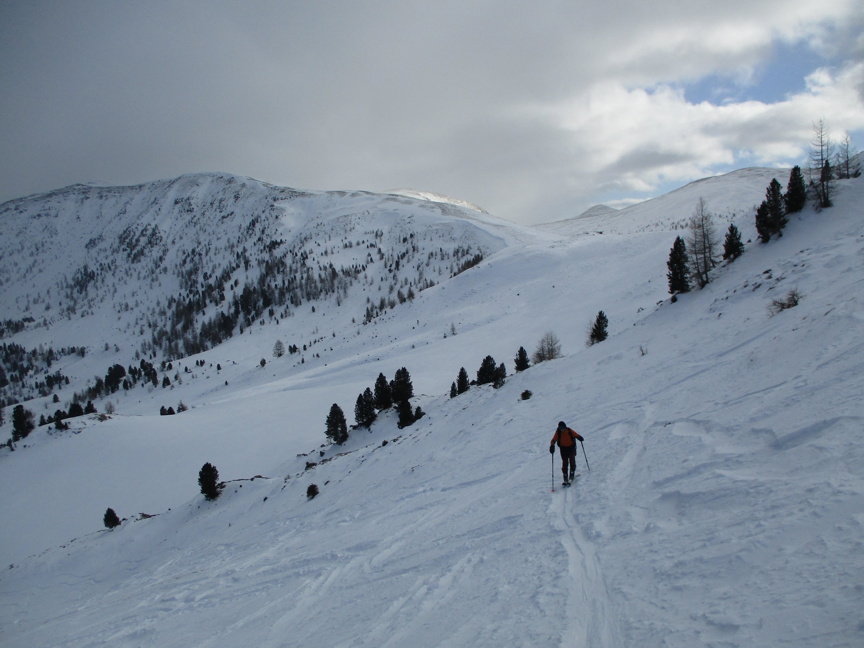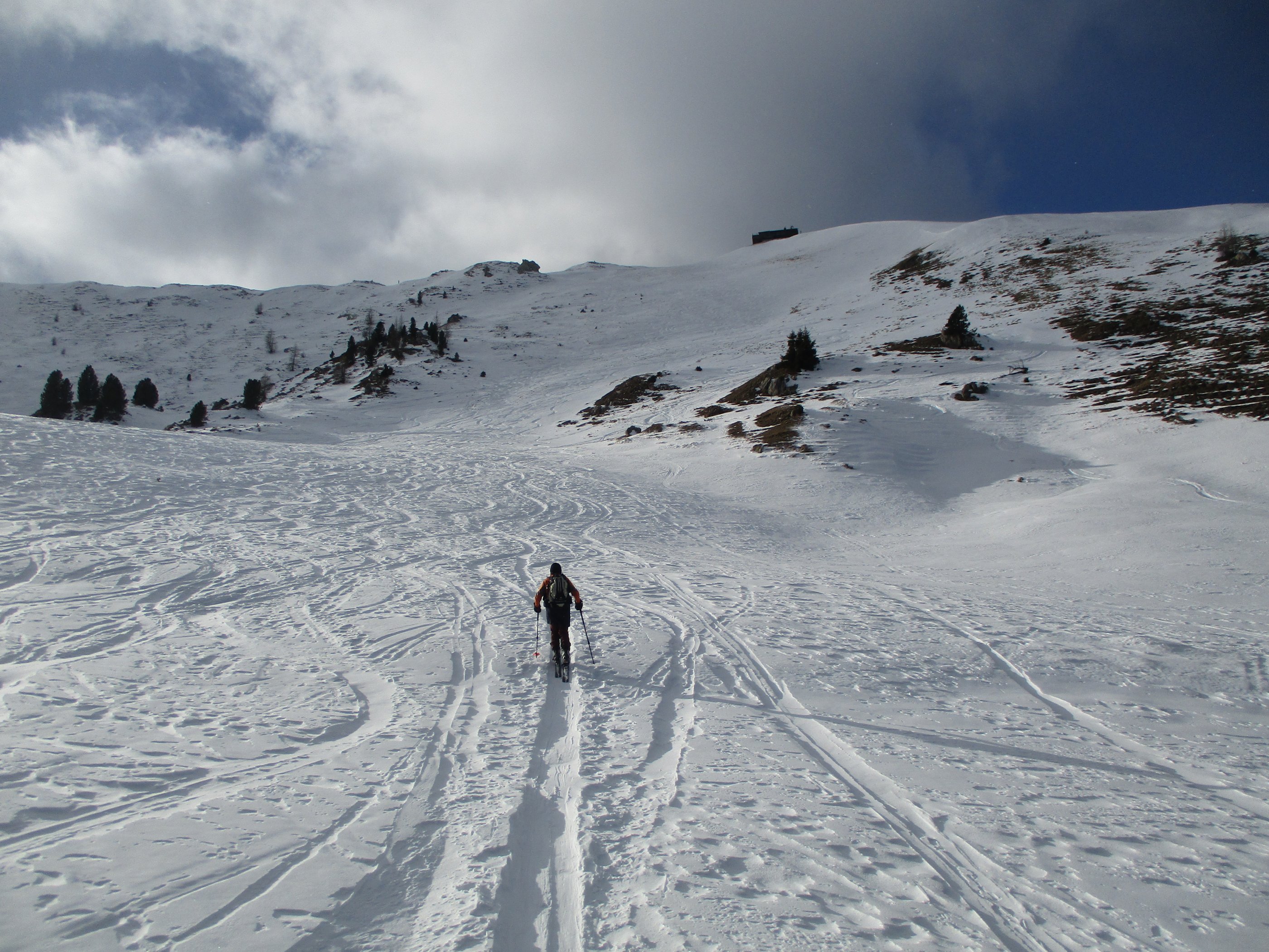 Aufstieg und Abfahrt über die Sauereggalm. Im oberen Aufstiegsbereich war der Wind zeitweise stürmisch, dafür gab es auch immer wieder kurze Sonnenfenster. . Für die derzeitige Schneelage eine kurze Materialschonende Tour.