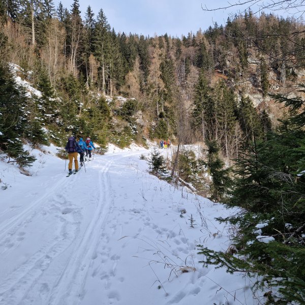 Sehr wenig Schnee derzeit im westlichen Hochschwab. Von der Jassing in den Anger sind die Ski etwa 15 min zu tragen. Vom Lungabrunn auf die Kulmalm im Wald ist auch eine kurze Tragepassage. Ab der Kulmalm ist immer genug Schnee. Die Abfahrt von der Sonnschien auf der Russenstrasse geht recht gut bis kurz vor dem Sonnschienbach. Vom Bach runter sind die Ski zum tragen. Bei der geringen Schneelage besteht bei der Tour keine Lawinengefahr.